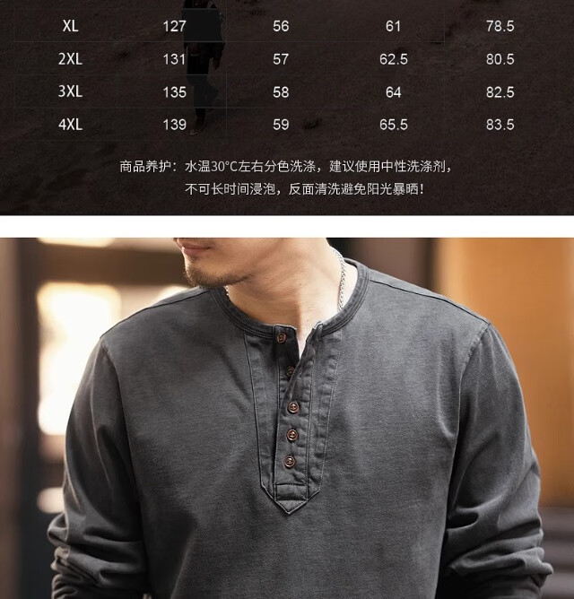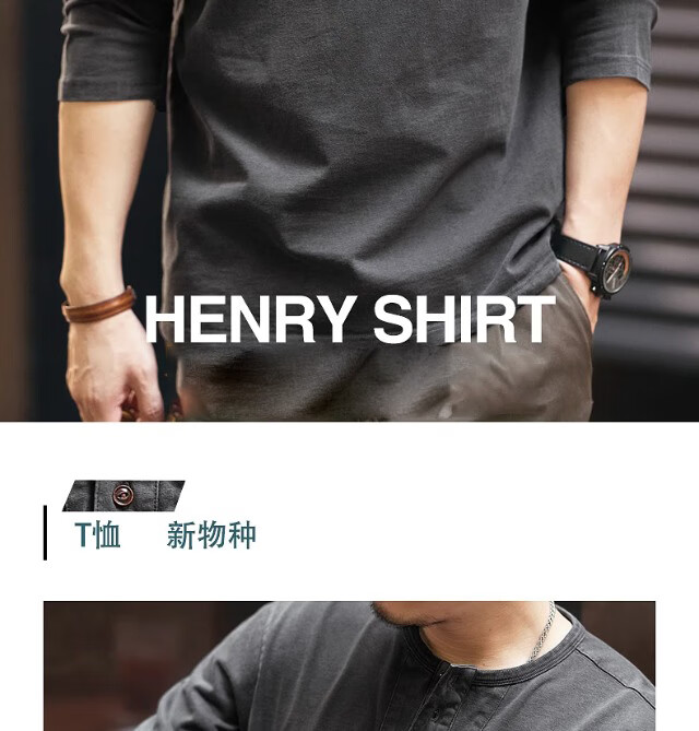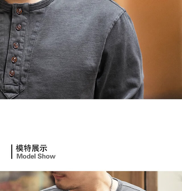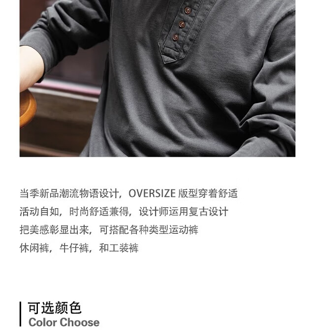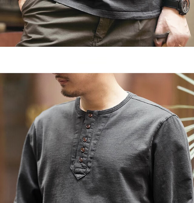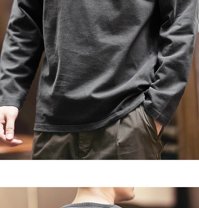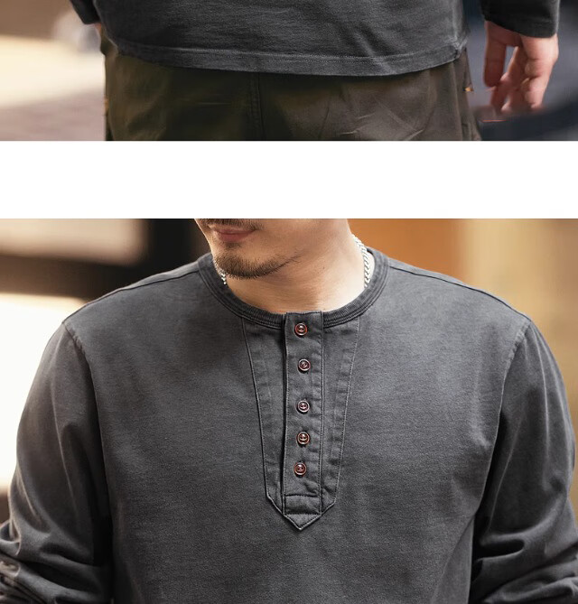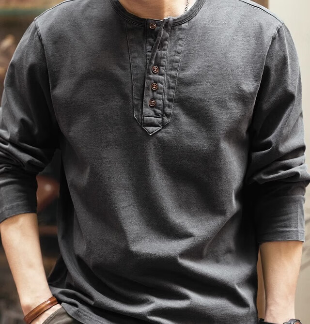 ROMON high-end long-sleeved T-shirt for men 2025 autumn and winter new pure cotton loose and versatile tough guy Henry collar bottoming shirt top for men 2315 glacier gray T-shirt L size suitable for 140-160Jin Jin equals 0.5 kg