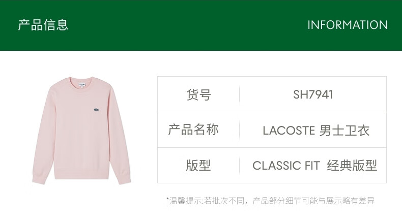 LACOSTE French crocodile men's 25 autumn and winter new simple round neck sweatshirt | SH7941 YZP/dark pine green M 4