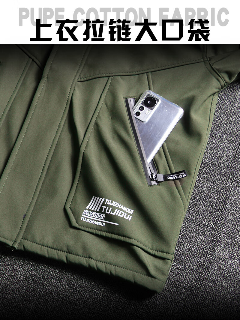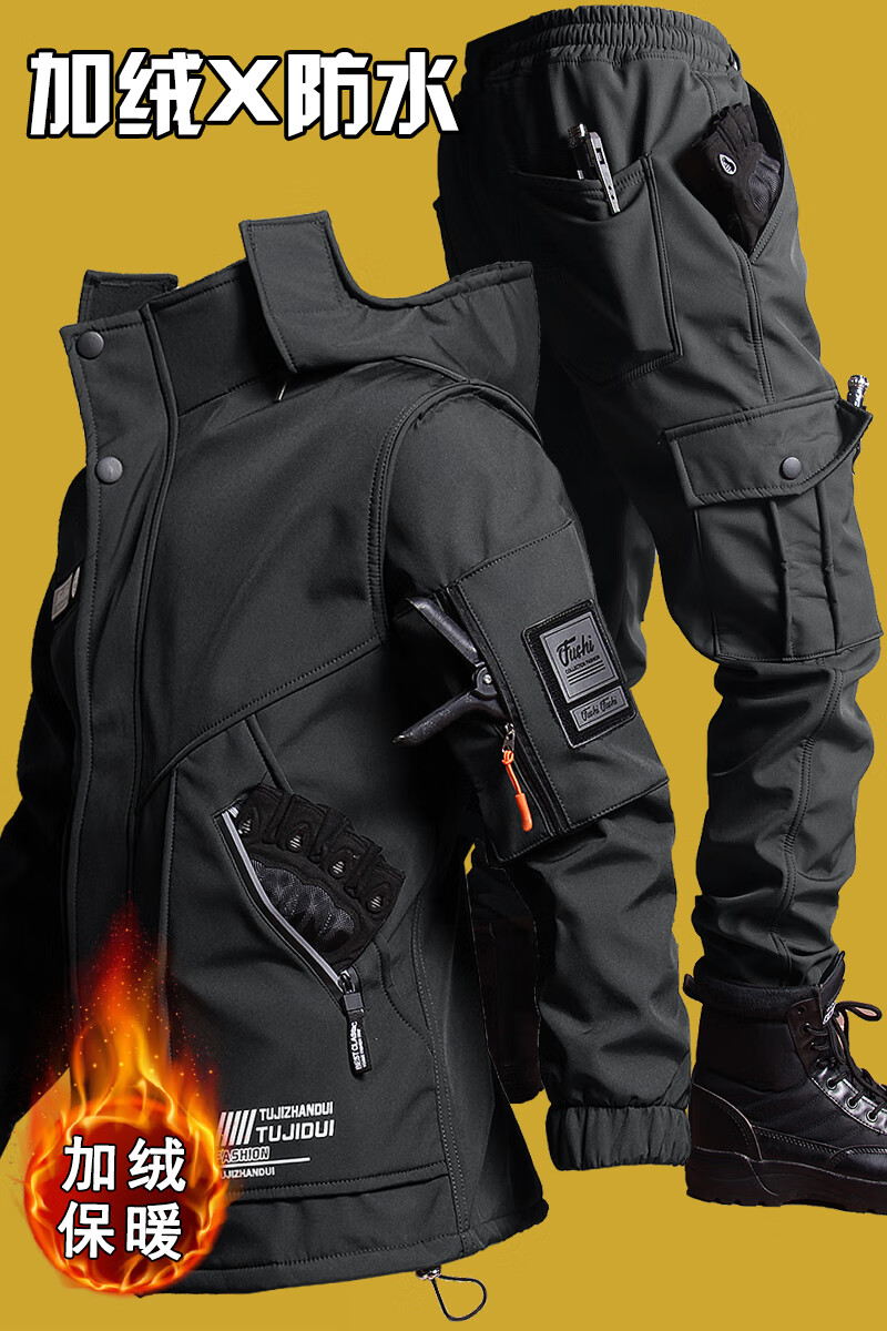 WODEPUS KISS Winter Outdoor Motorcycle Riding Suit Plus Velvet Thickened Waterproof Windproof Soft Shell Jacket Suit Men's Fishing Warm Black 175 (135-150Jin Jin equals 0.5kg)