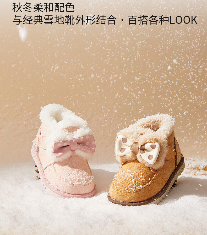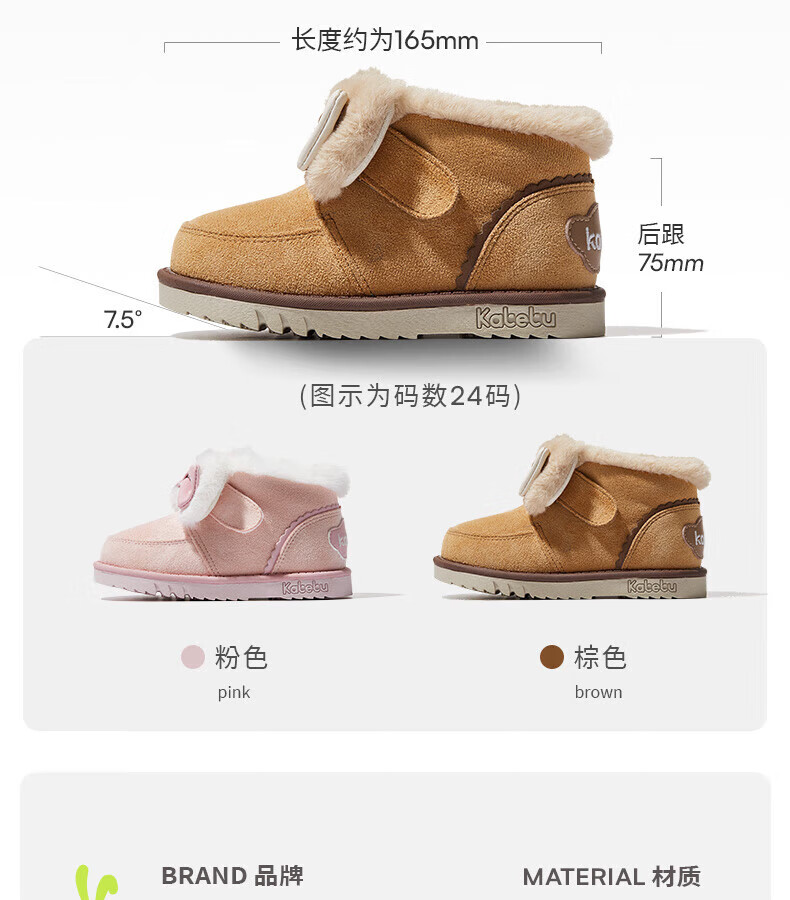 Carter Rabbit children's snow boots for boys and girls 2023 winter new furry shoes baby plus velvet warm shoes non-slip toddler shoes brown 26 inner length 16.0cm (suitable for feet 15cm long)