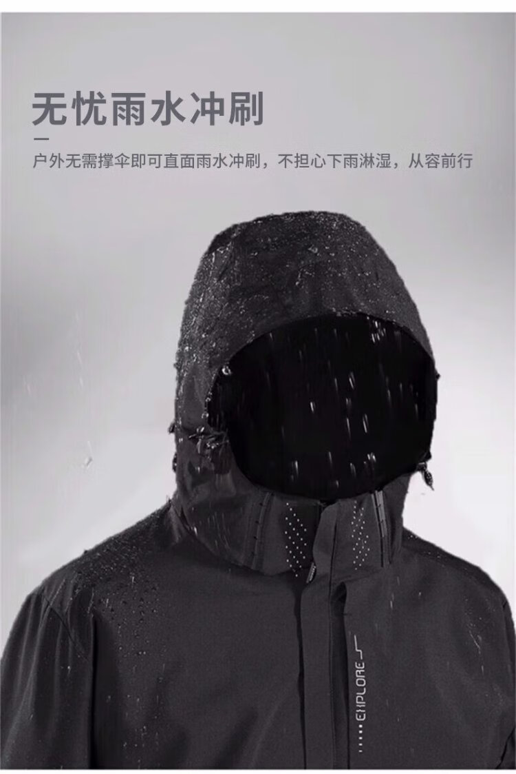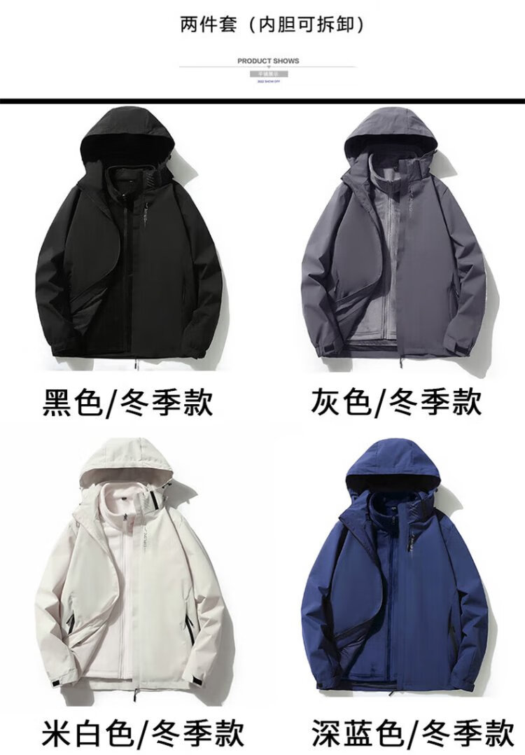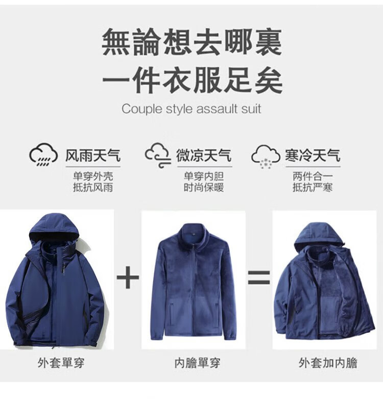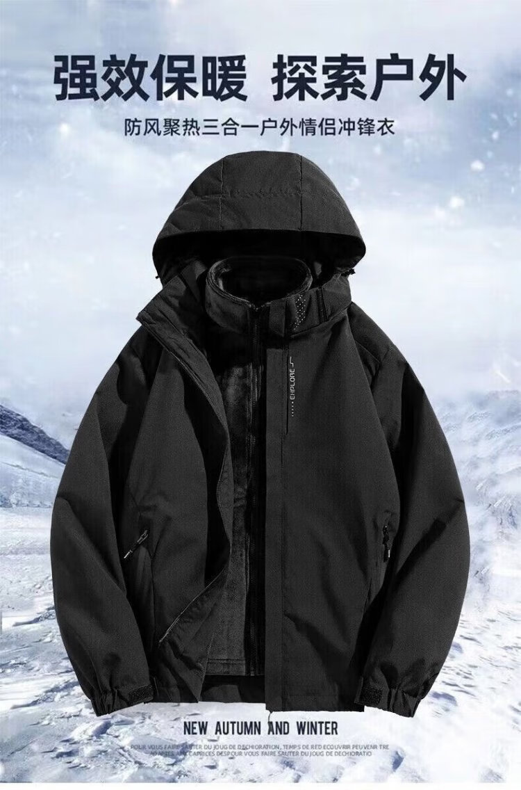 Men's and women's three-in-one removable liner jacket for autumn and winter outdoor windproof and waterproof thickened fleece jacket, black, three-in-one, men's model