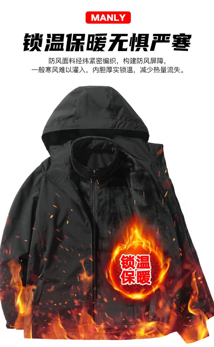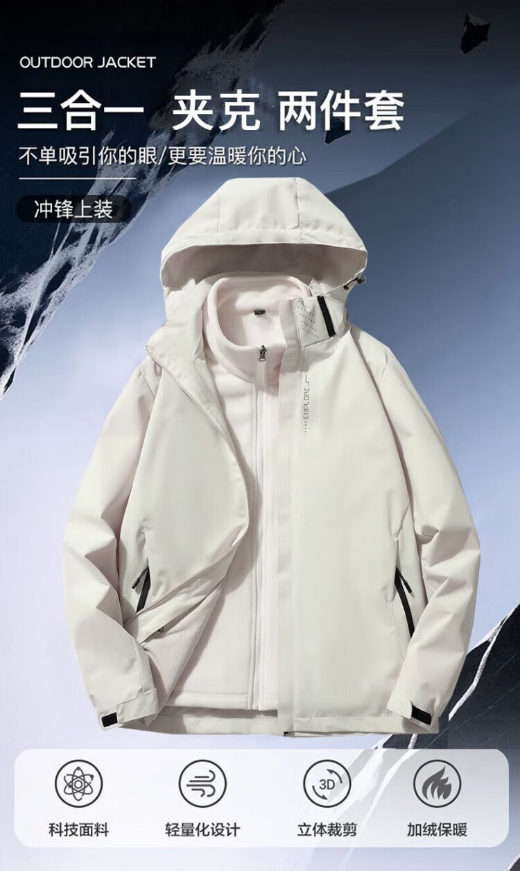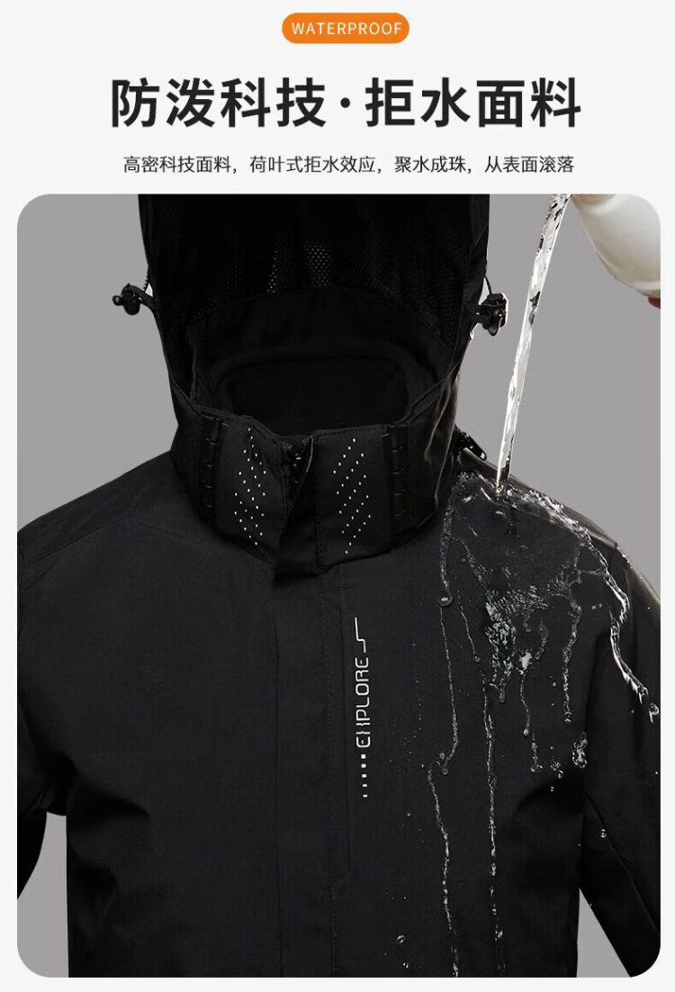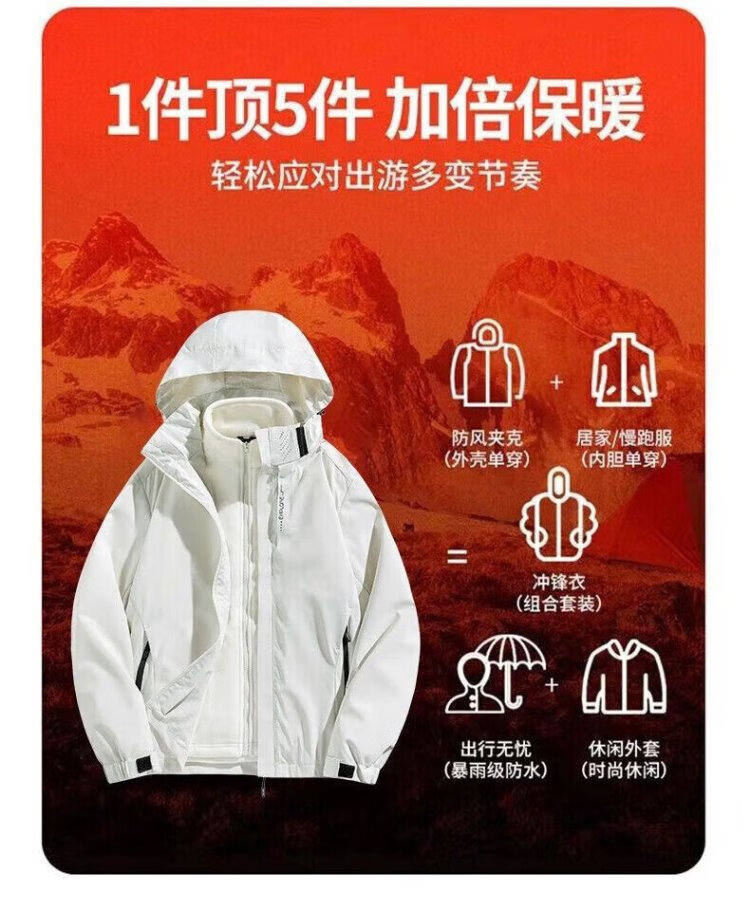 Men's and women's three-in-one removable liner jacket for autumn and winter outdoor windproof and waterproof thickened fleece jacket, black, three-in-one, men's model