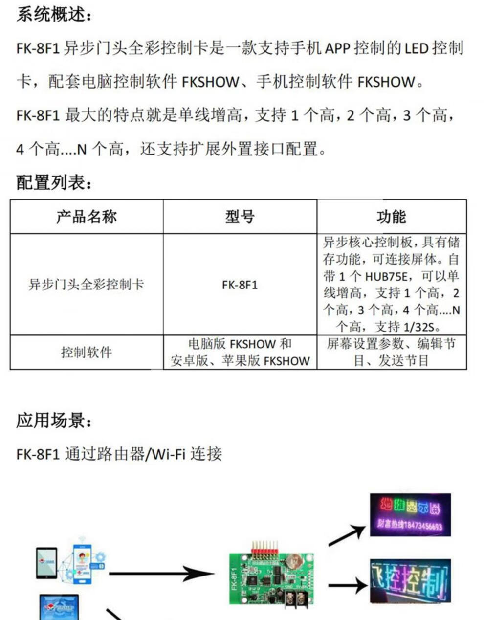 Flight control FK8F1 full color LED door screen control card Android Apple WIFI modified FK-8F2