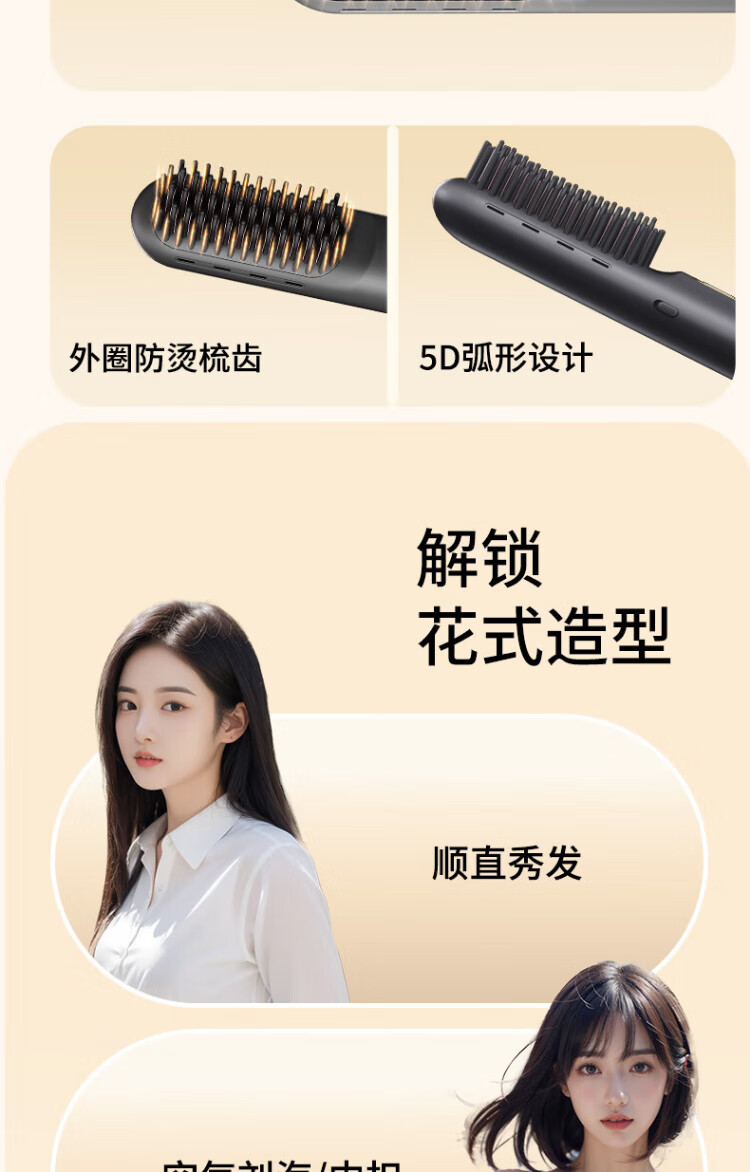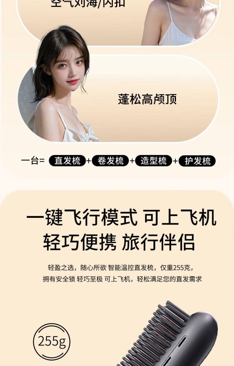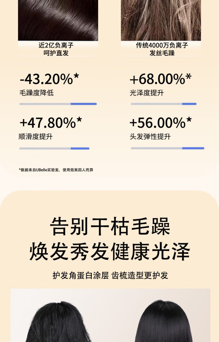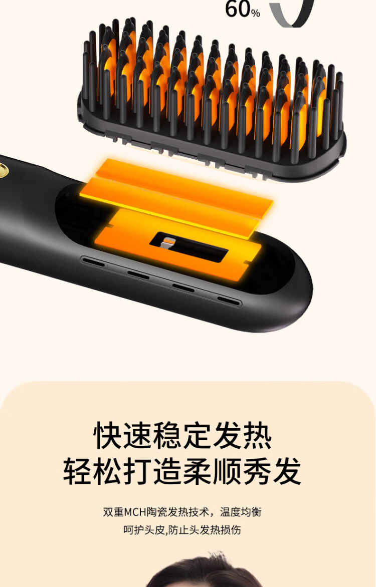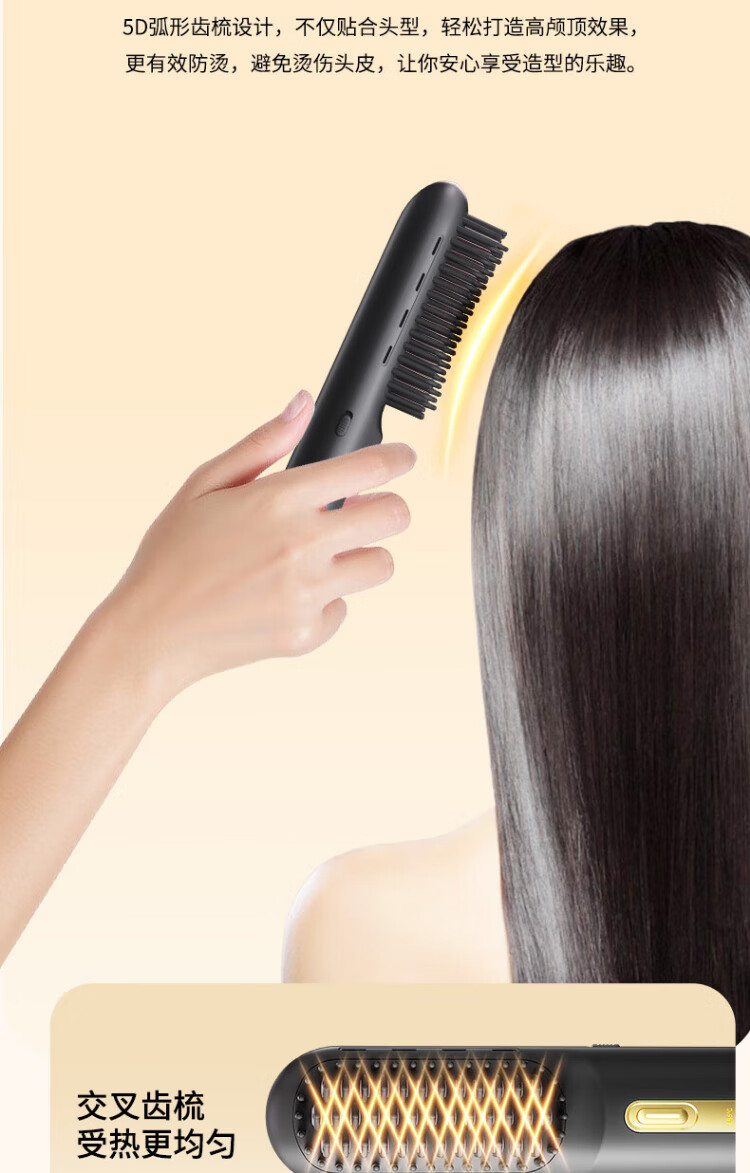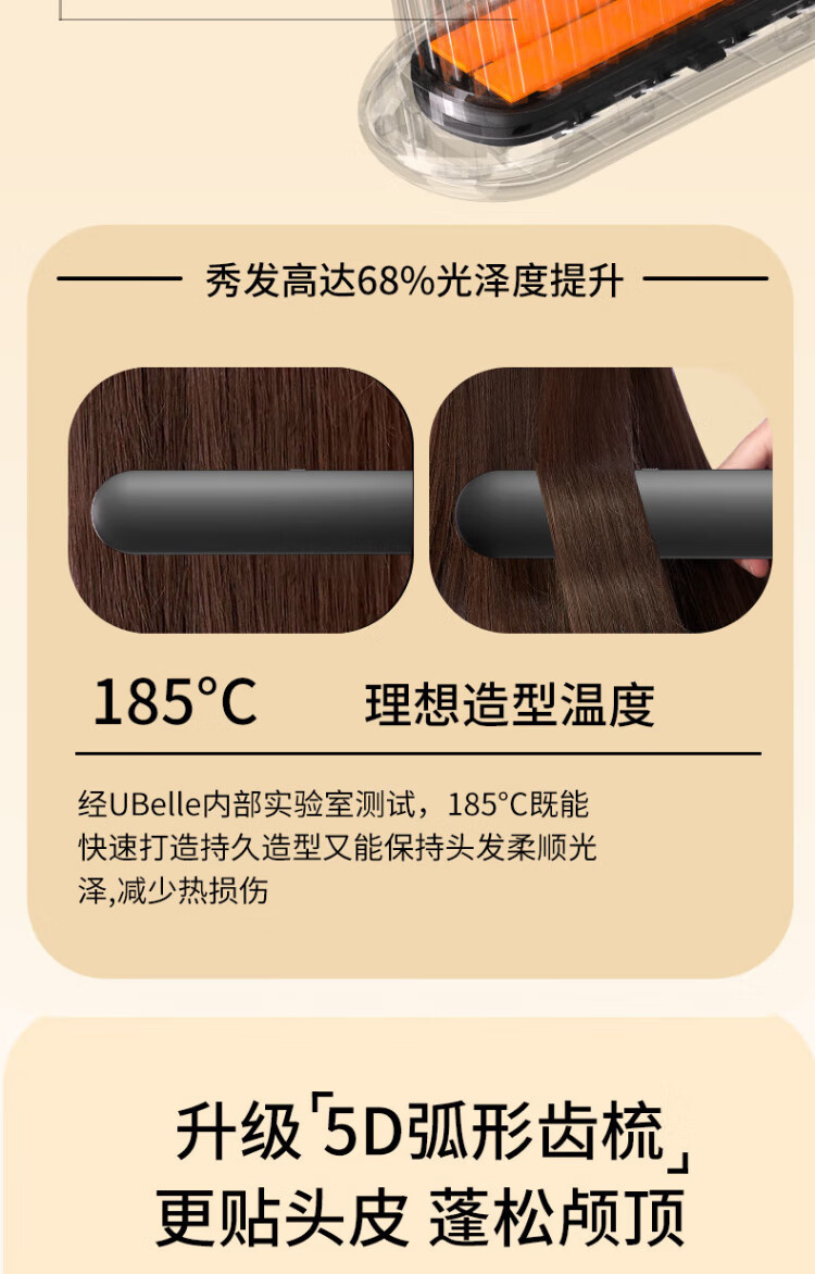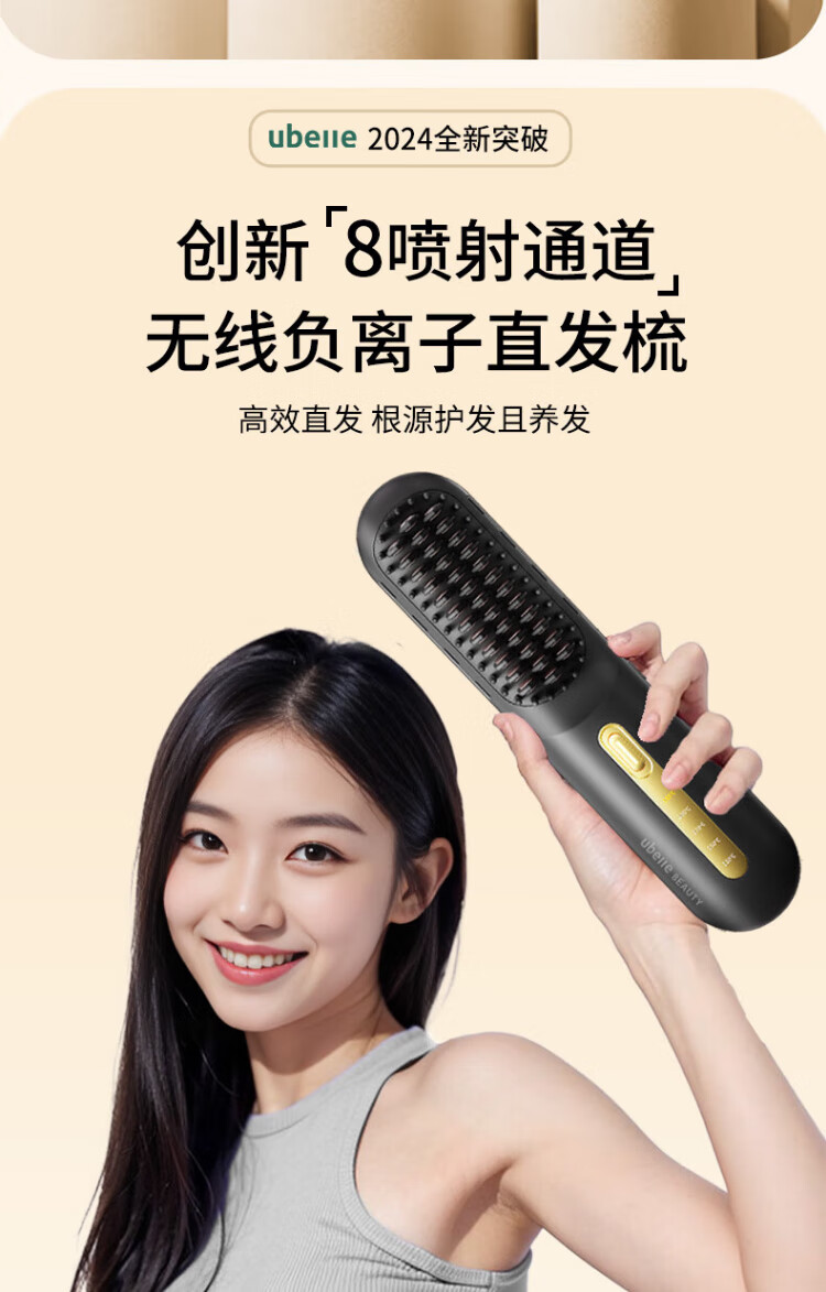 UBelle wireless hair straightening comb, negative ion straight clip, curling iron, bangs clip, fluffy high skull artifact, a gift for the goddess, Xingyao Black, 200 million high-concentration negative ions for hair straightening and hair care