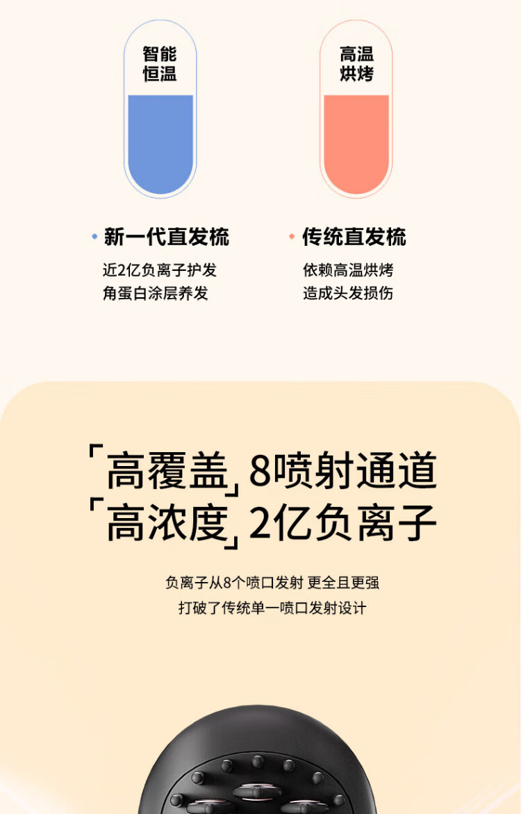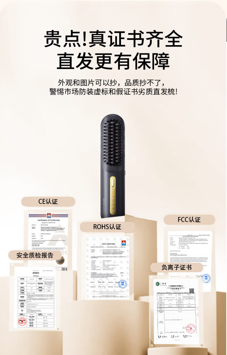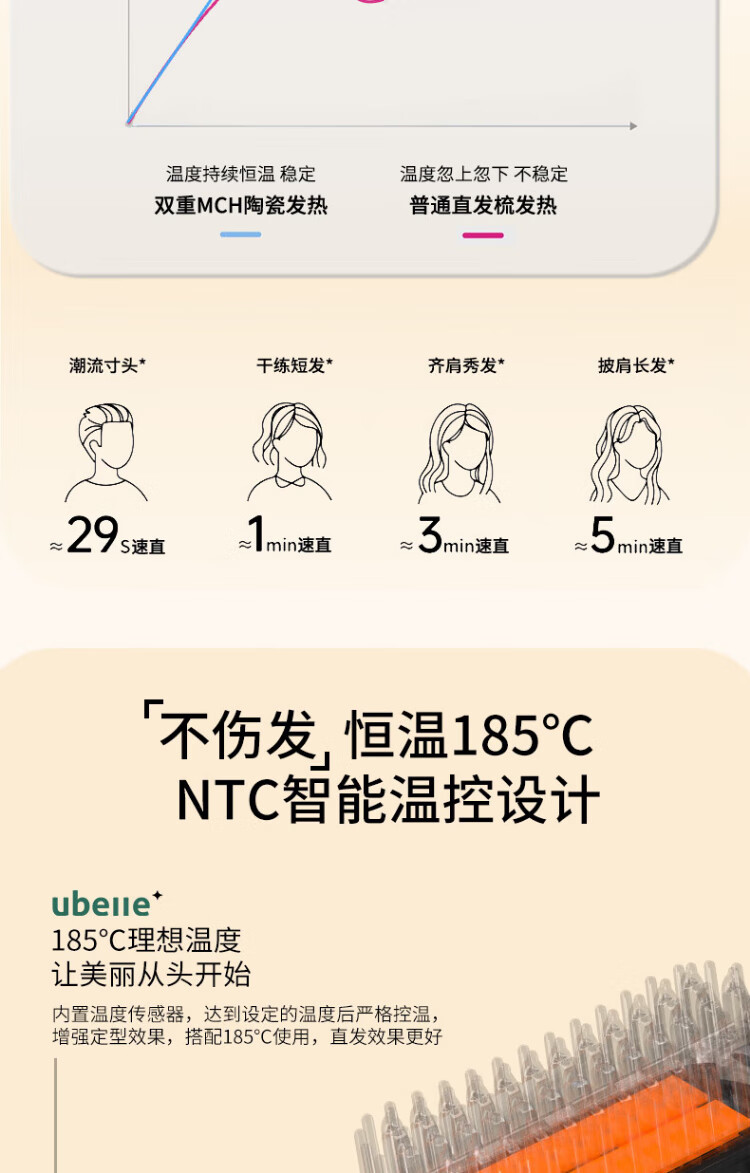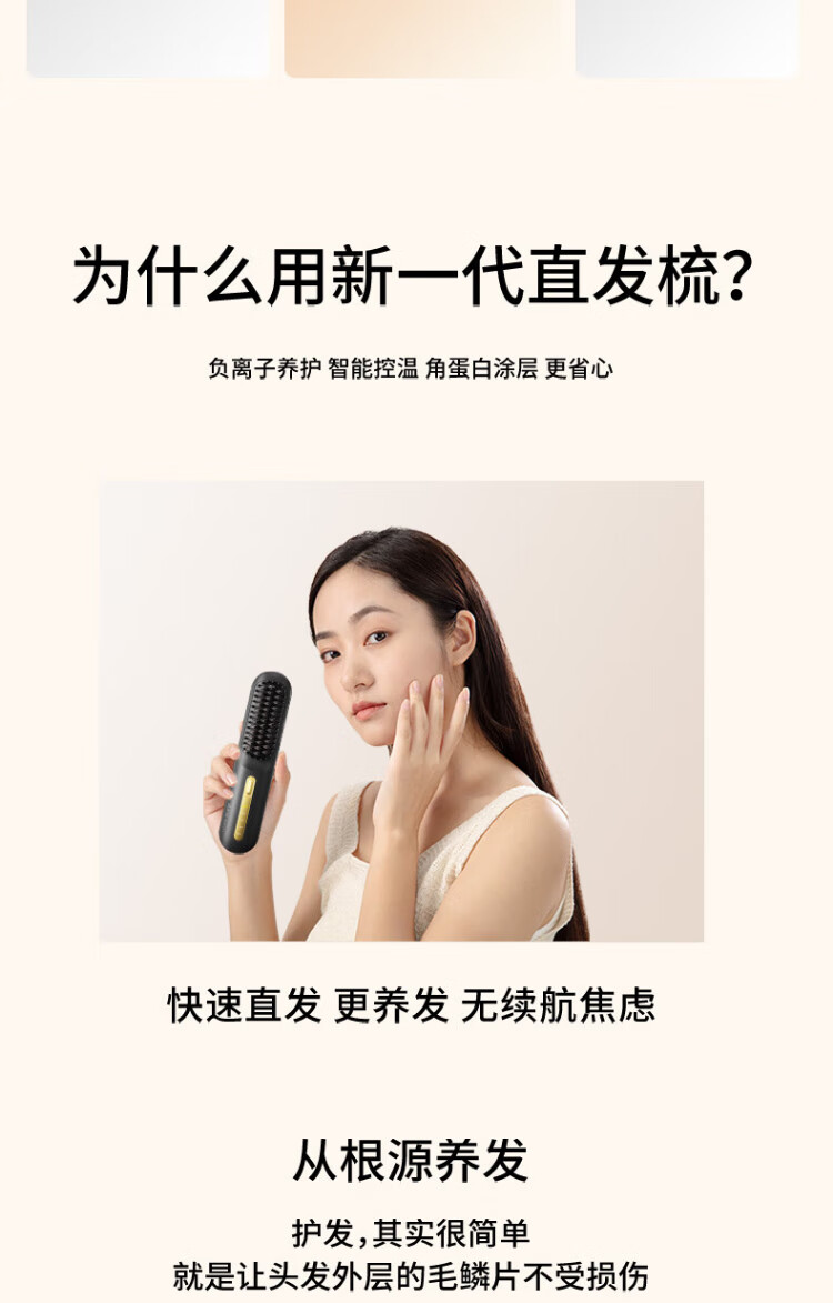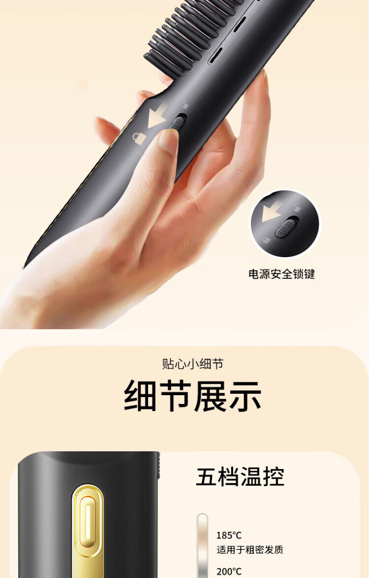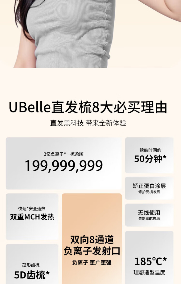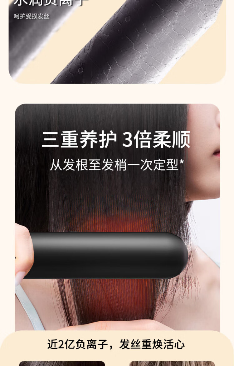 UBelle wireless hair straightening comb, negative ion straight clip, curling iron, bangs clip, fluffy high skull artifact, a gift for the goddess, Xingyao Black, 200 million high-concentration negative ions for hair straightening and hair care