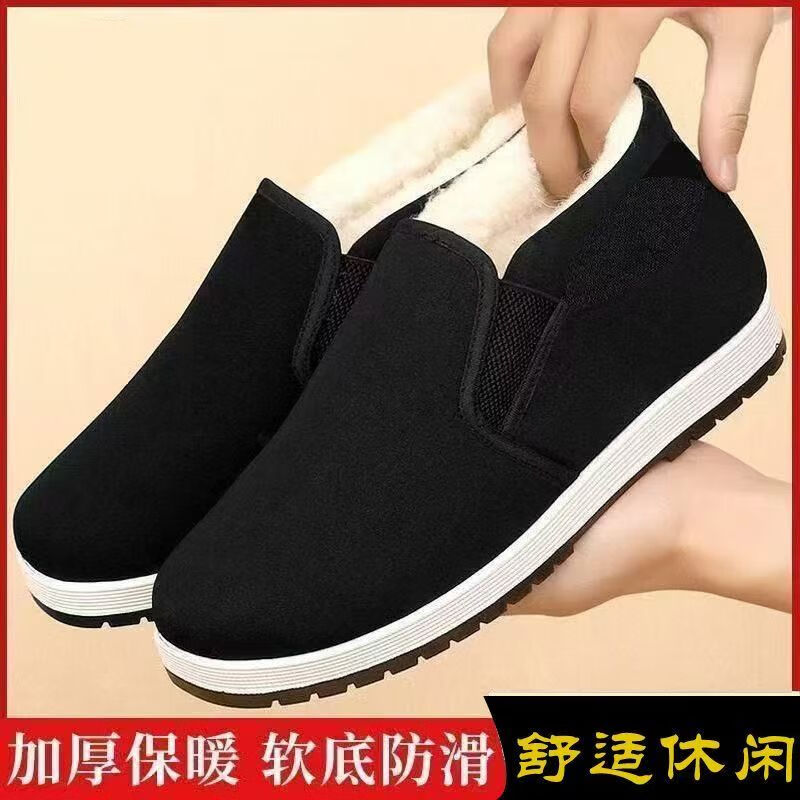 Winter new old Beijing high-top large cotton shoes for men, warm, non-slip, wear-resistant, plus velvet and thickened old cloth shoes, work cotton shoes, black 42