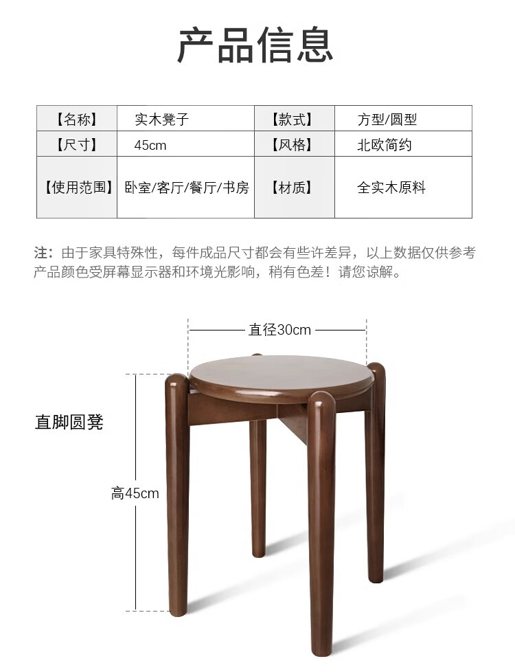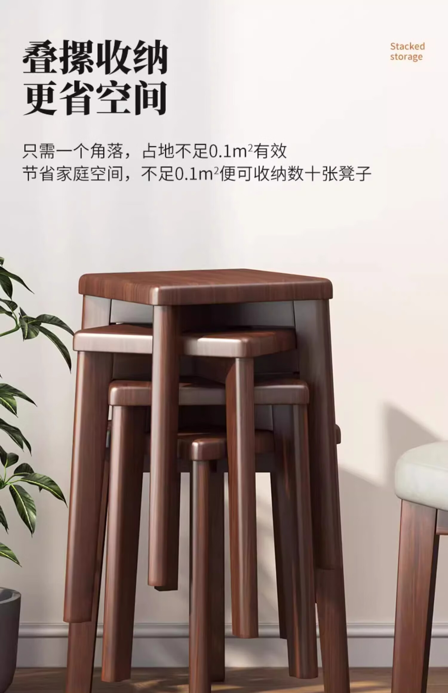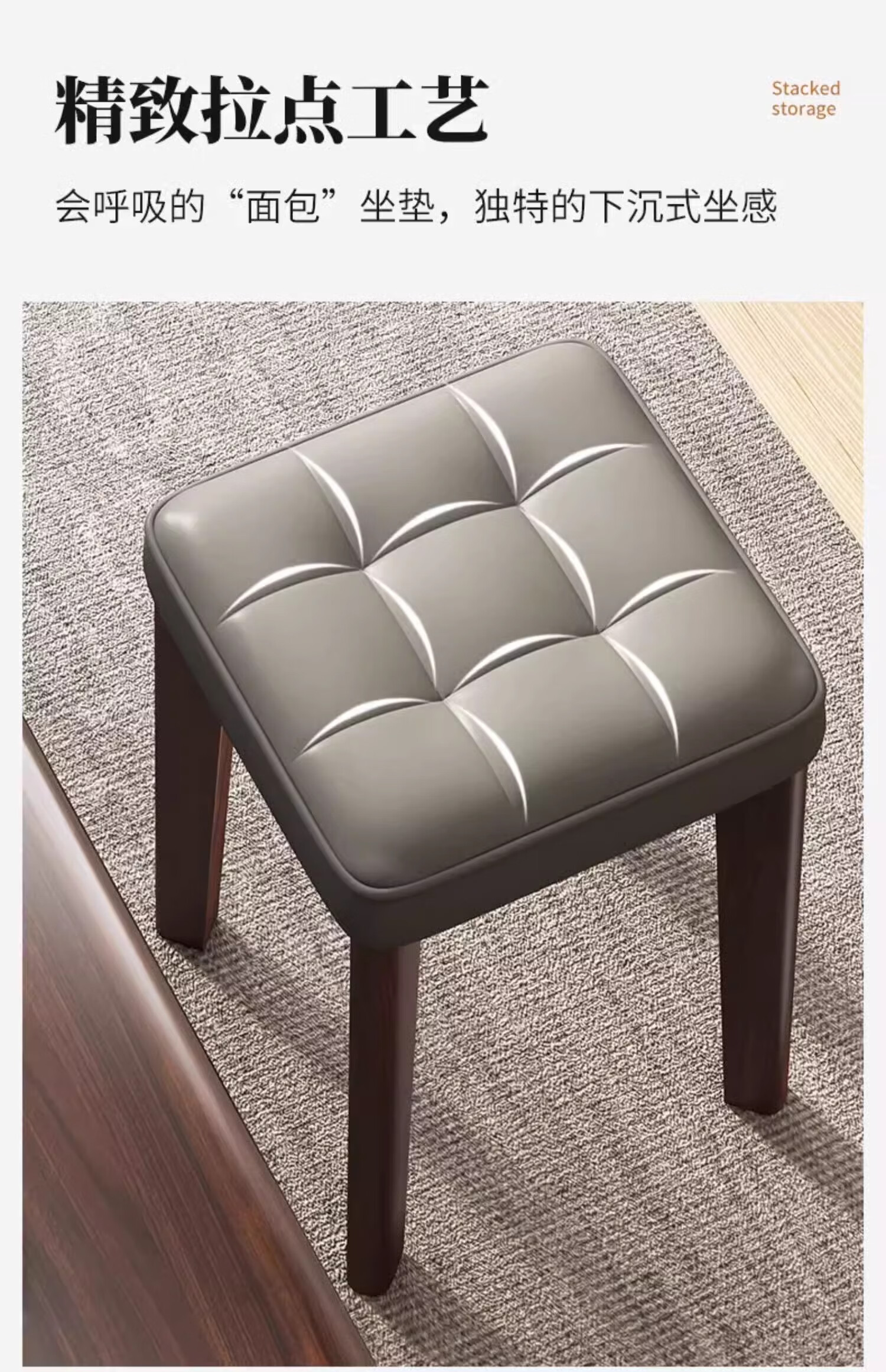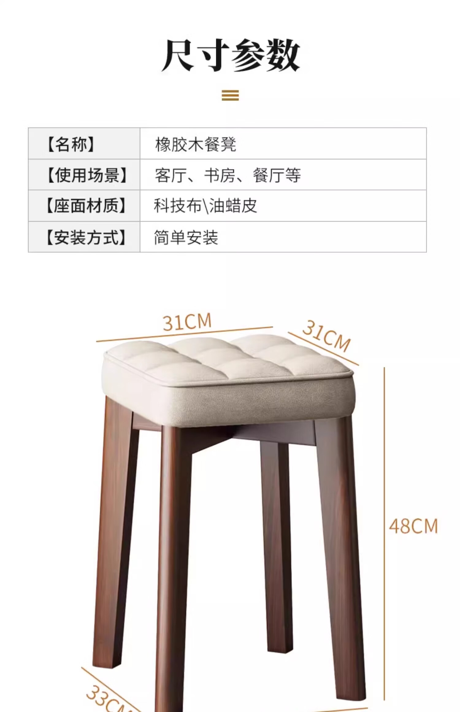 Household solid wood dining table bench living room soft bag stool dressing table low stool stackable simple stool simple wood solid wood color - side rubber wood type *4