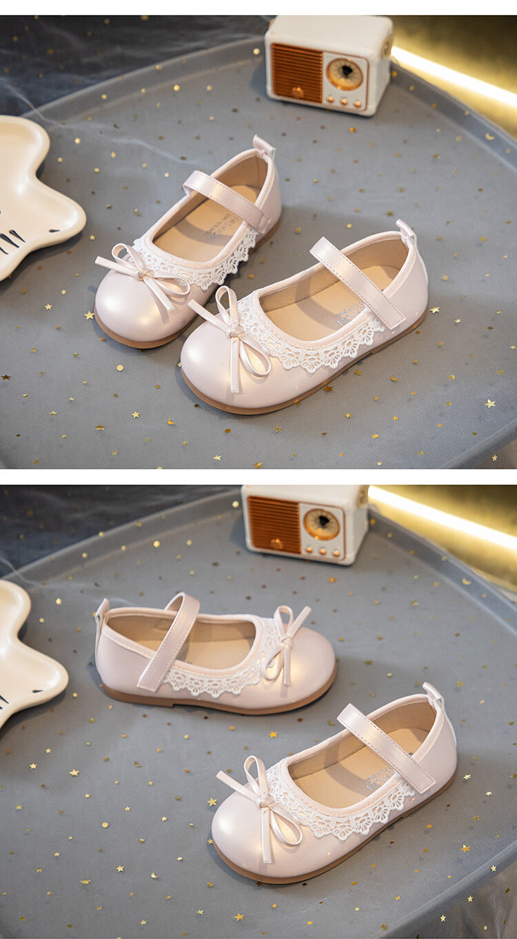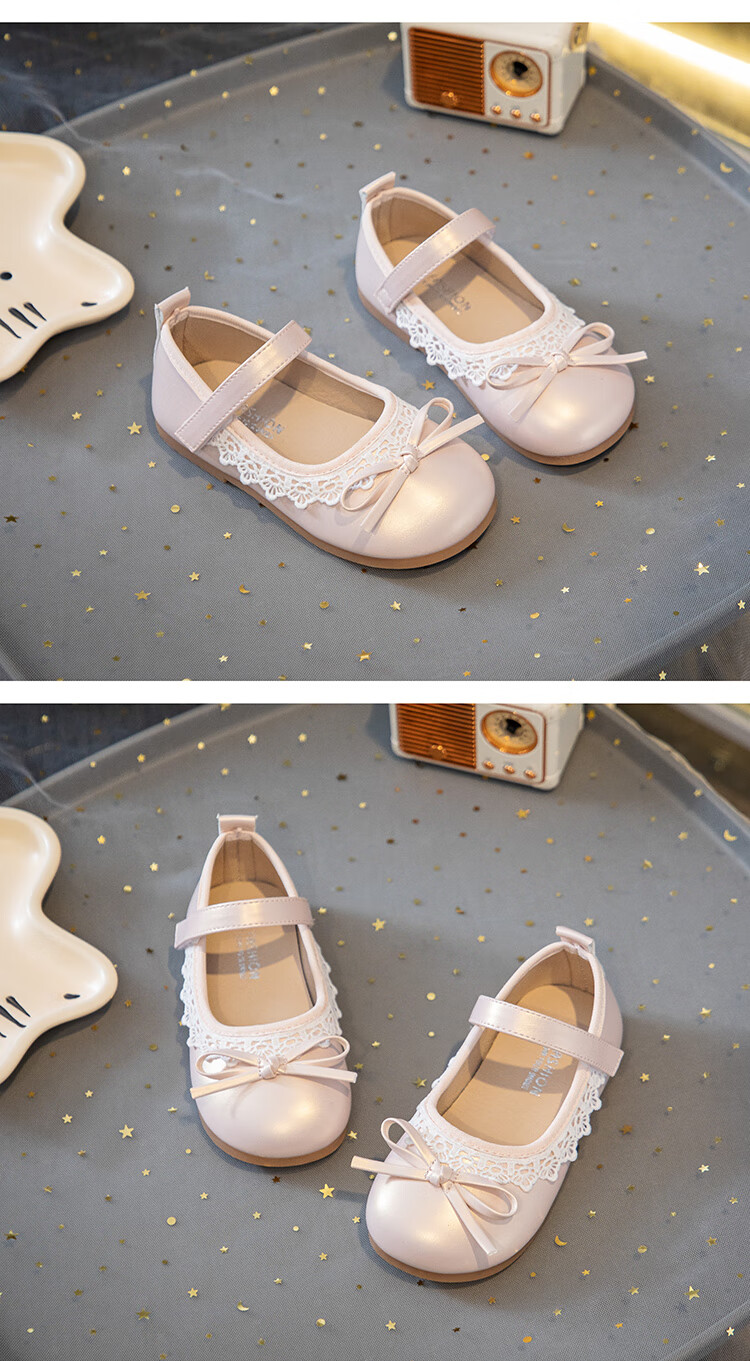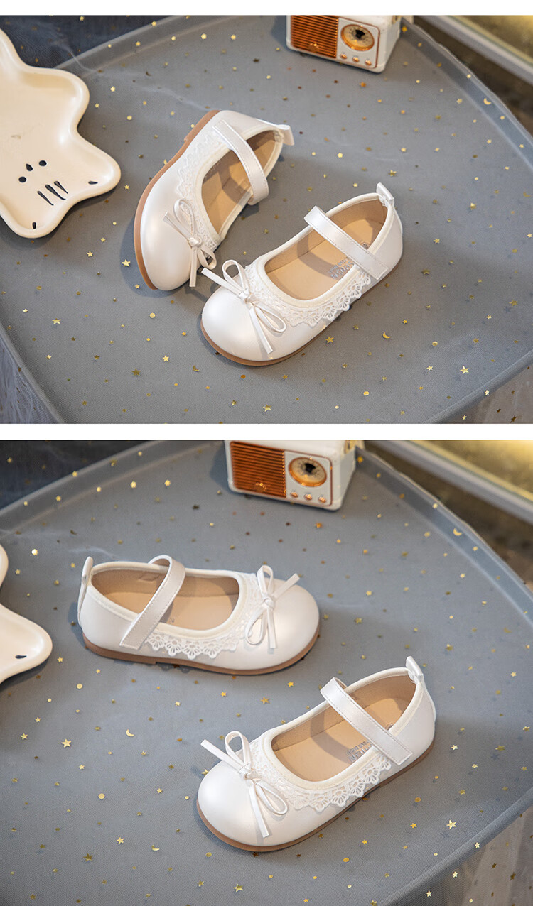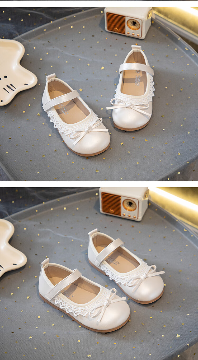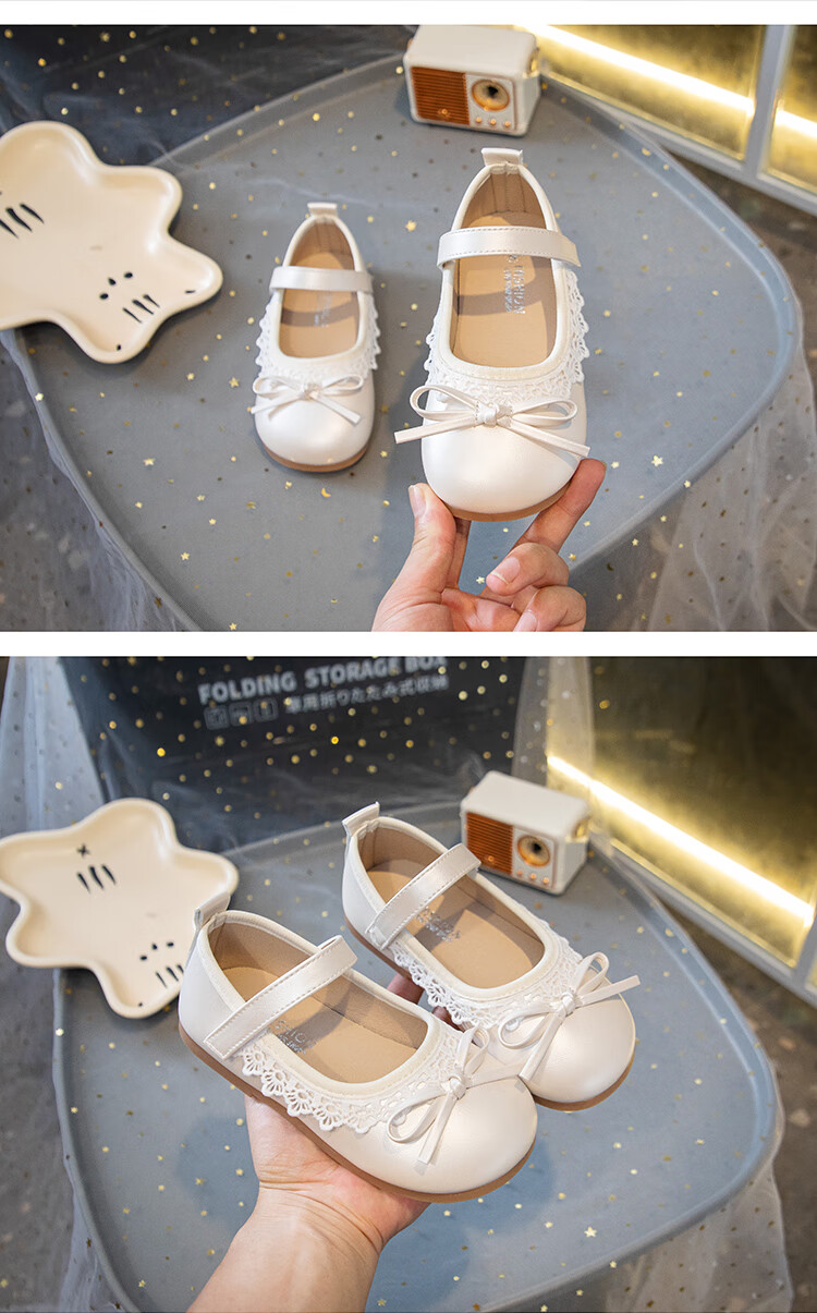 Girls' Small Leather Shoes 2025 Autumn New Children's Shoes Little Girls Baby Soft Soled Lace Leather Shoes Single Shoes Off-White (Photographed by Inner Length) 22 Inner Length Approximately 14.6cm/Suitable for Foot Length 13.6cm