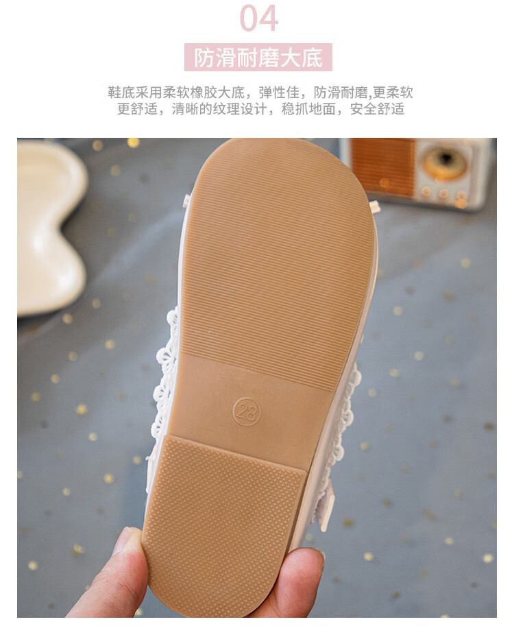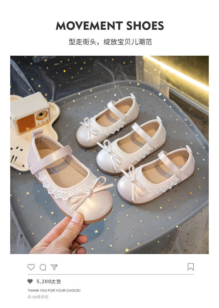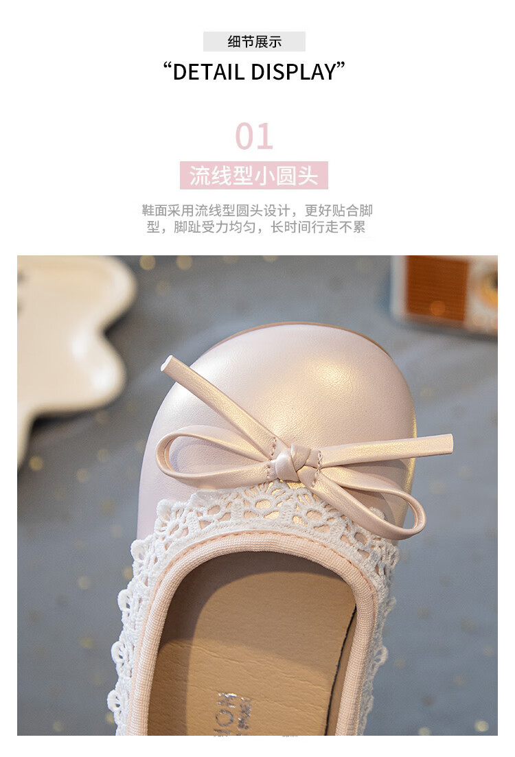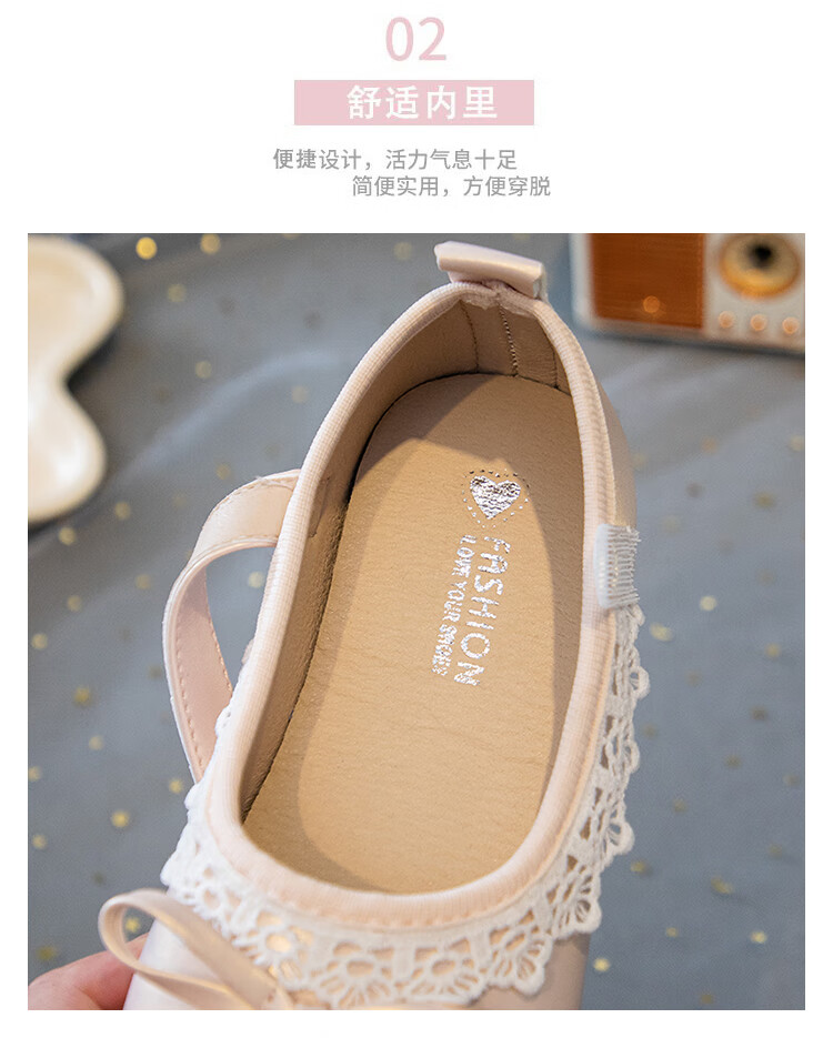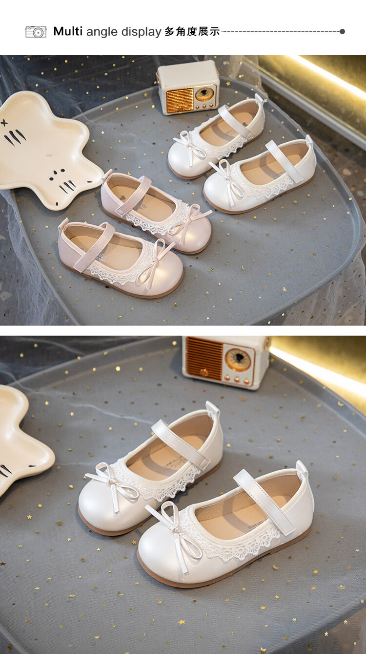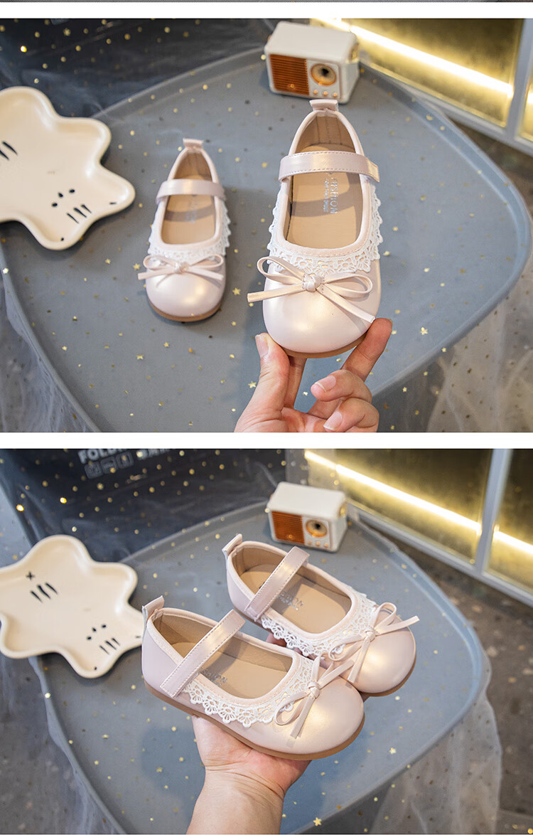 Girls' Small Leather Shoes 2025 Autumn New Children's Shoes Little Girls Baby Soft Soled Lace Leather Shoes Single Shoes Off-White (Photographed by Inner Length) 22 Inner Length Approximately 14.6cm/Suitable for Foot Length 13.6cm
