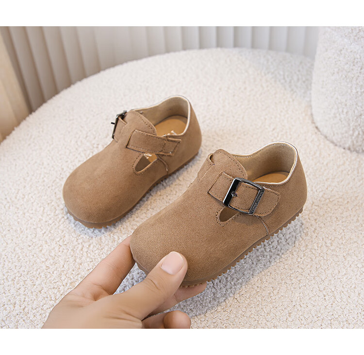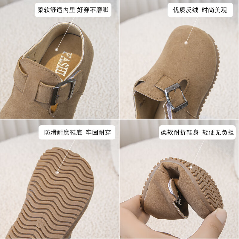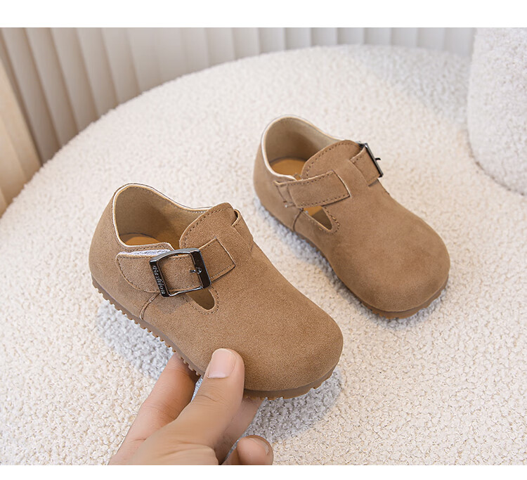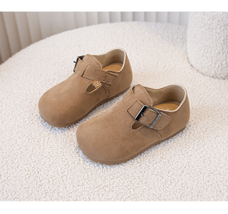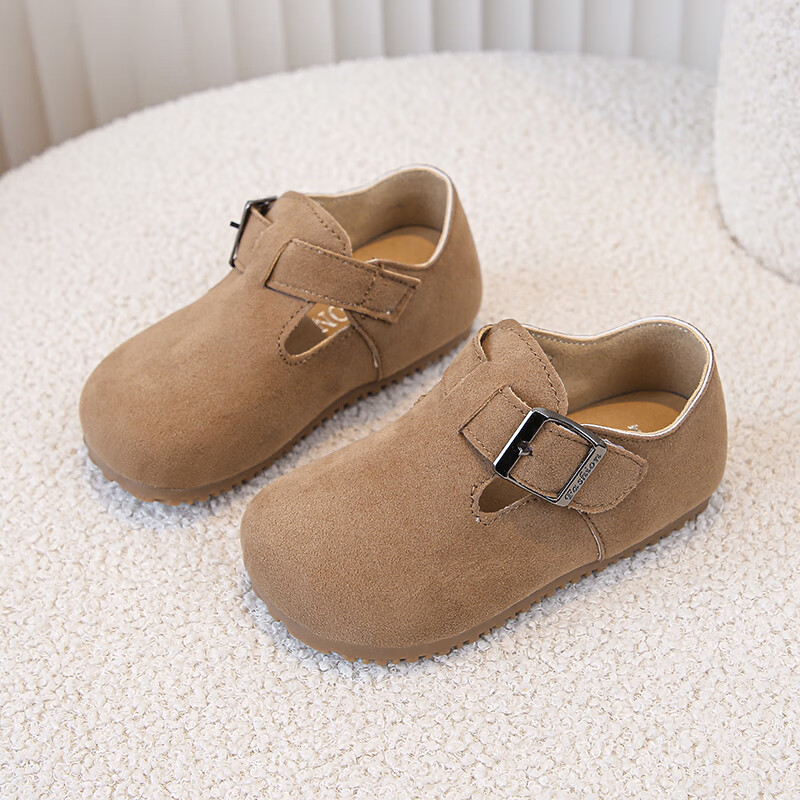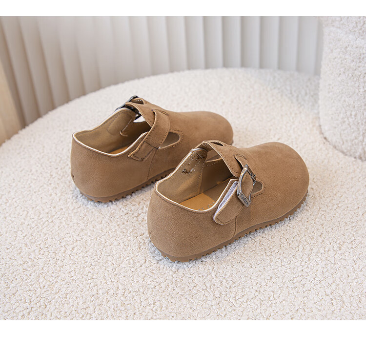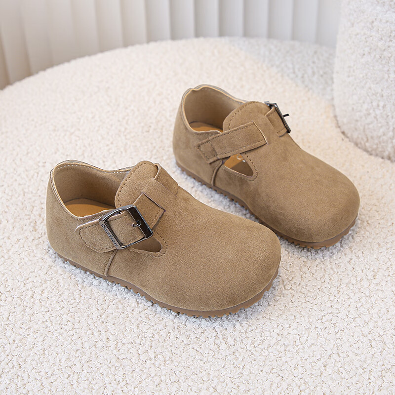 Children's Birkenstock Shoes 2025 Spring and Autumn New Girls' Shoes Boys Soft Soled Retro Small Leather Shoes Baby Shoes Khaki Color Size 26 Inner Length 16.0cm