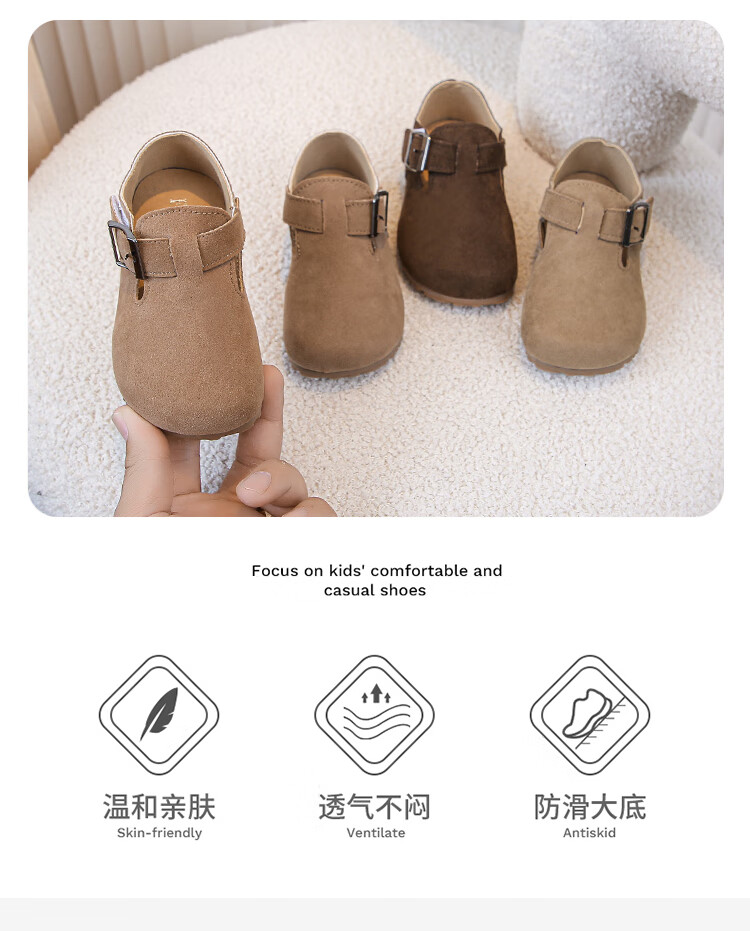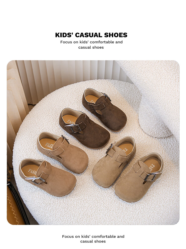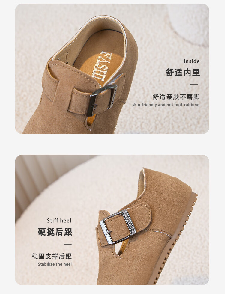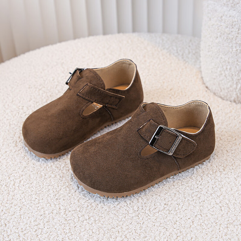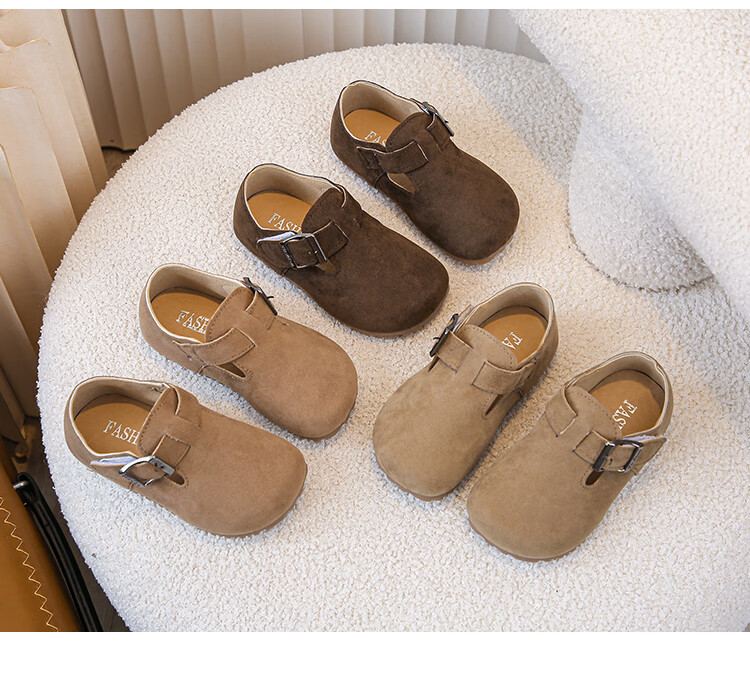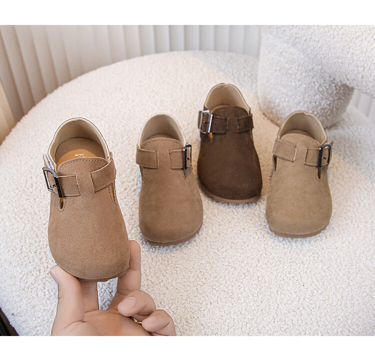 Children's Birkenstock Shoes 2025 Spring and Autumn New Girls' Shoes Boys Soft Soled Retro Small Leather Shoes Baby Shoes Khaki Color Size 26 Inner Length 16.0cm