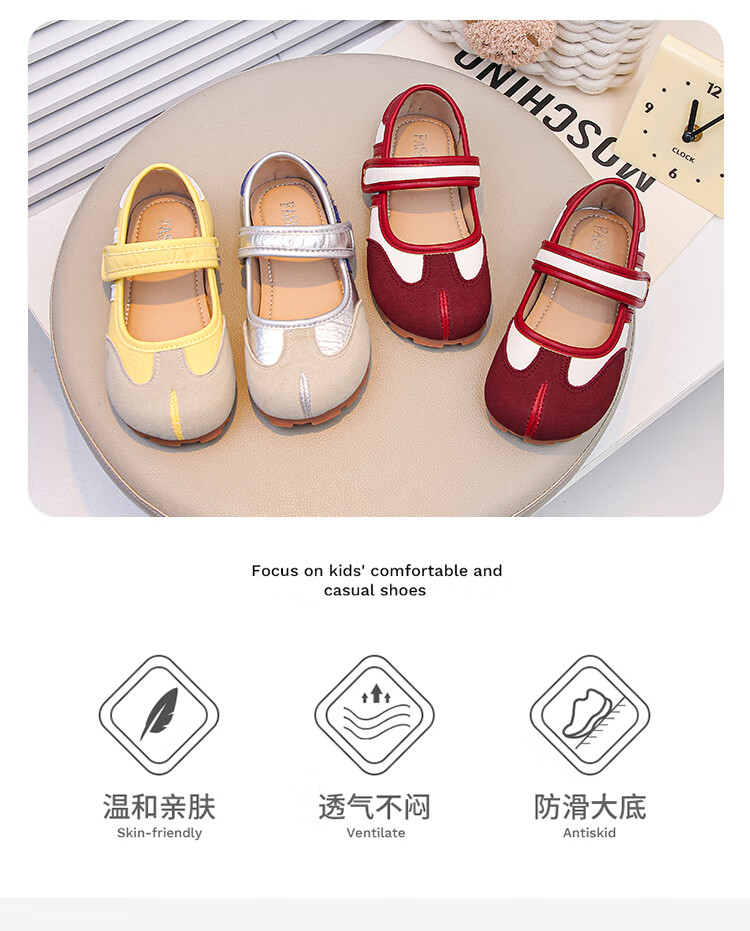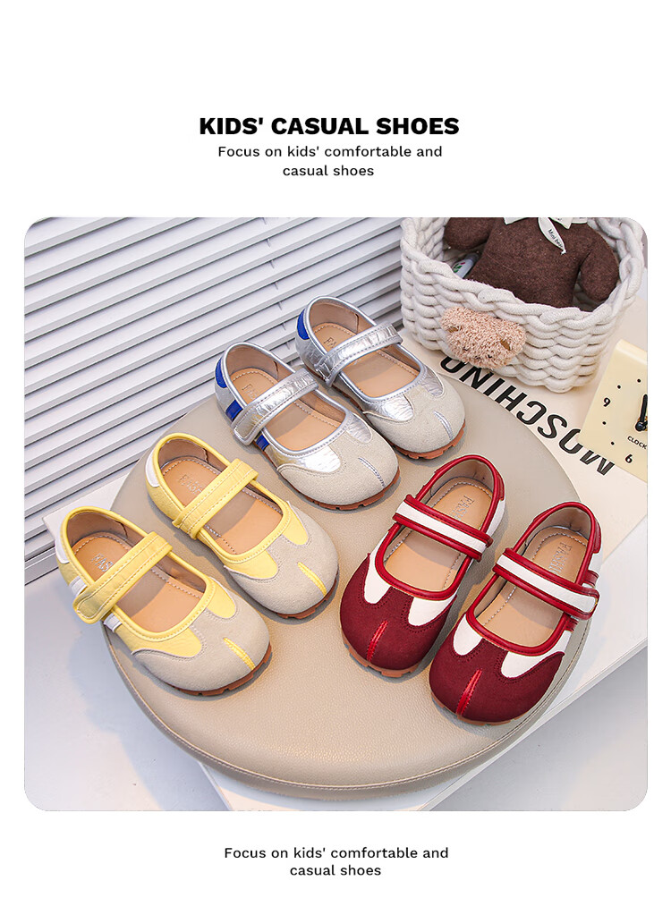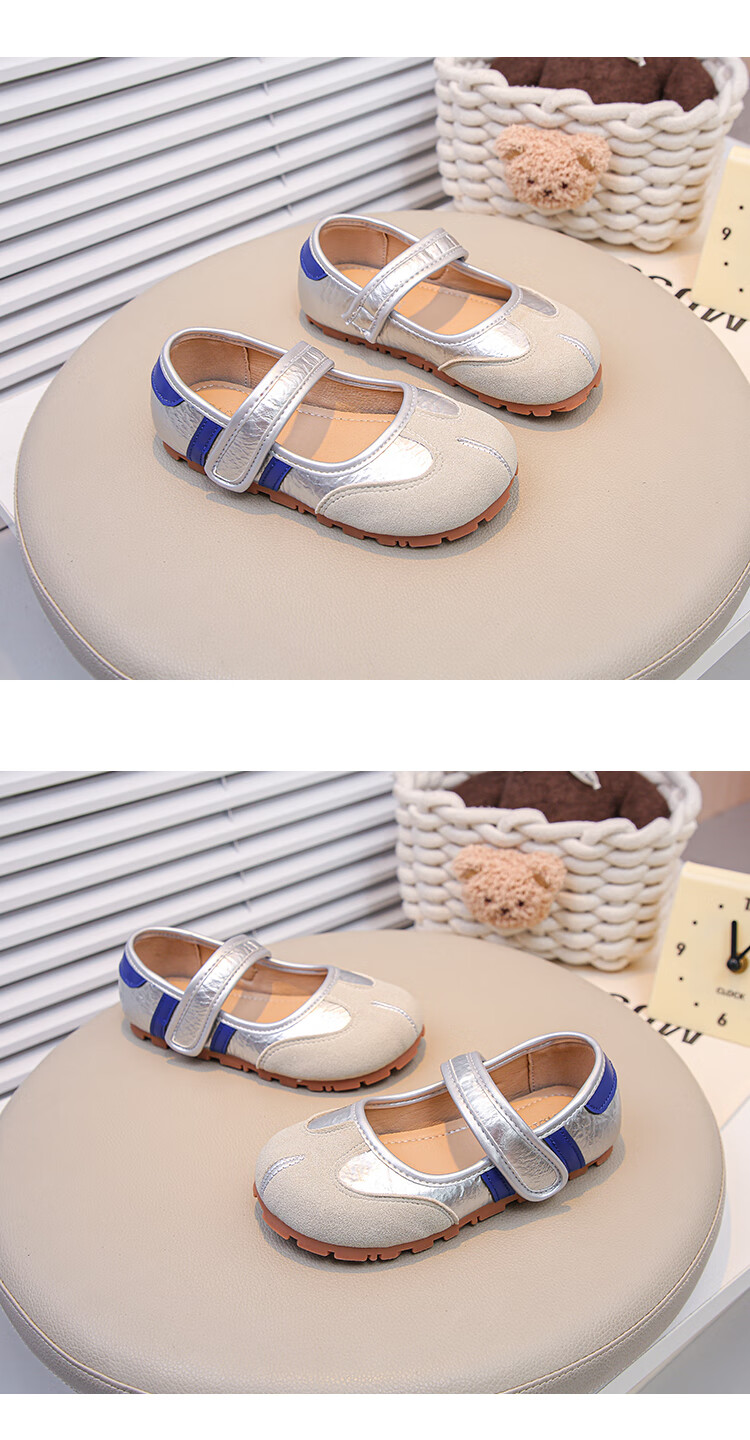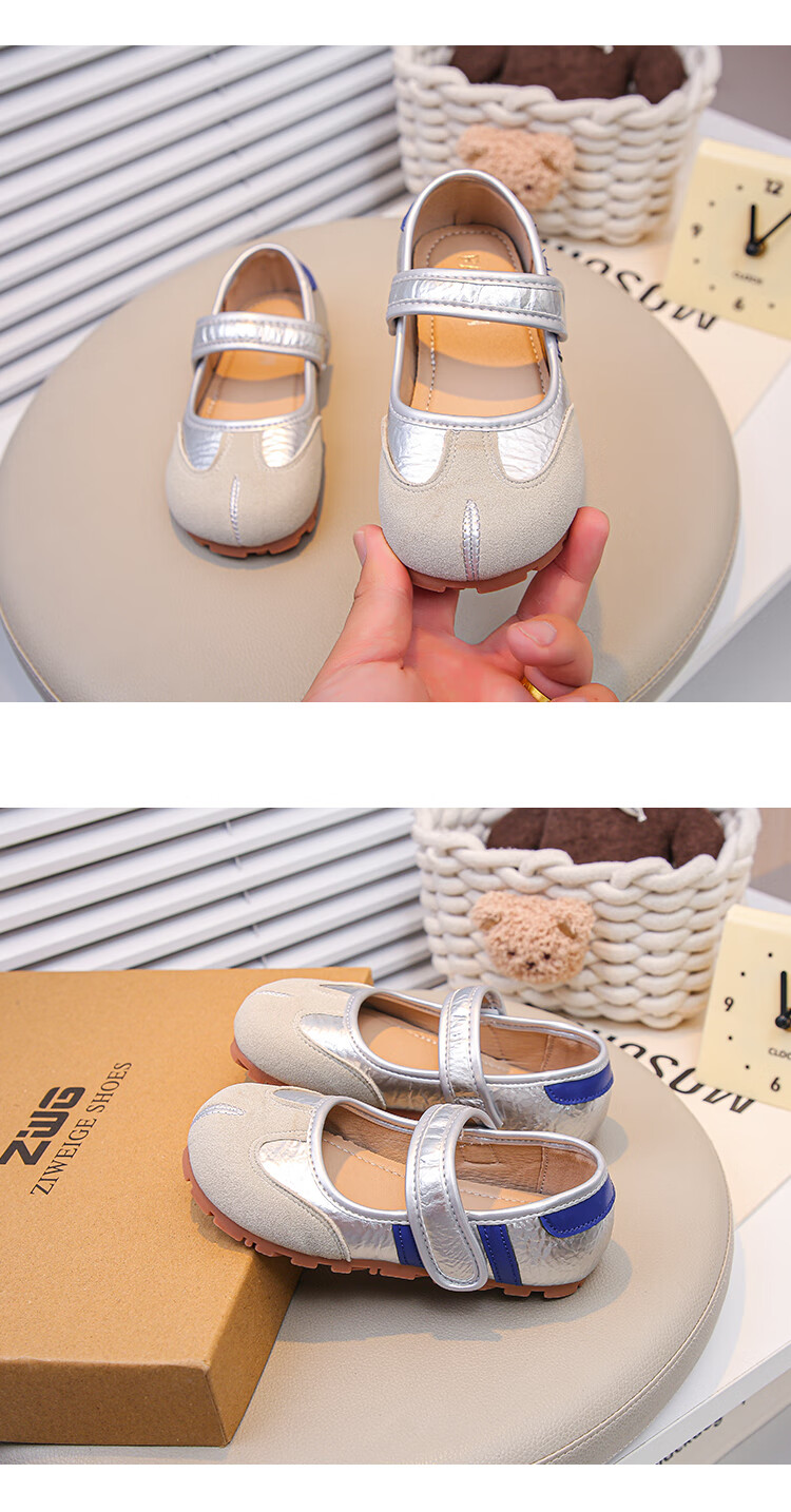 Children's Shoes Girls' Leather Shoes Birkenstock Spring and Autumn 2025 Children's New Style Shallow Mouth Soft Sole Beanie Baby Shoes Princess Mary Silver Size 36 Inner Length Approximately 22.2CM