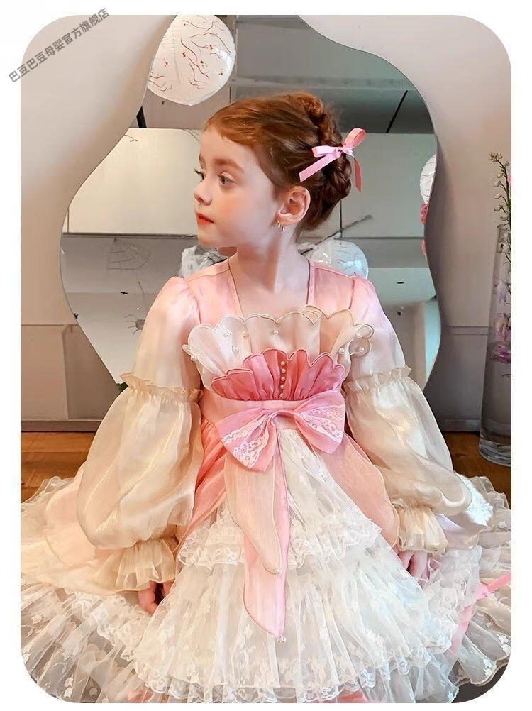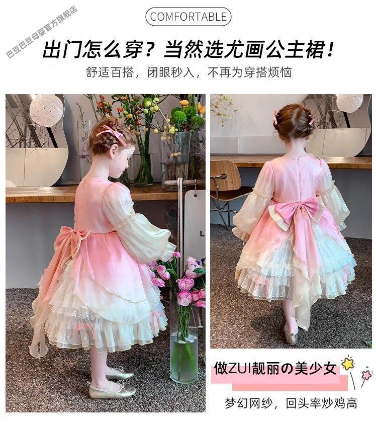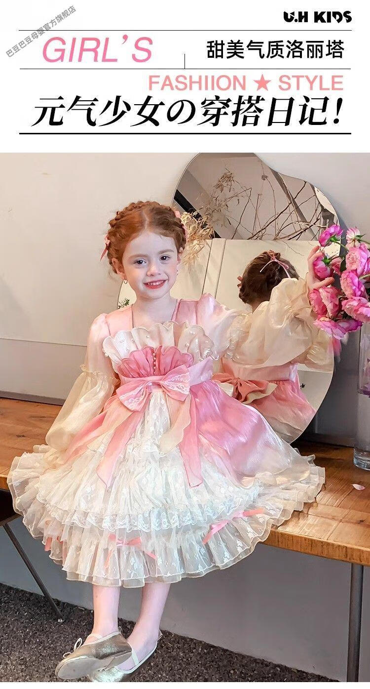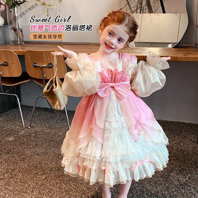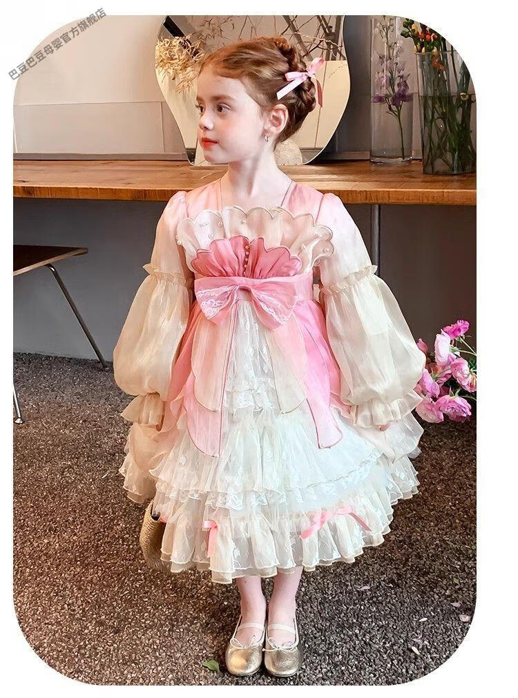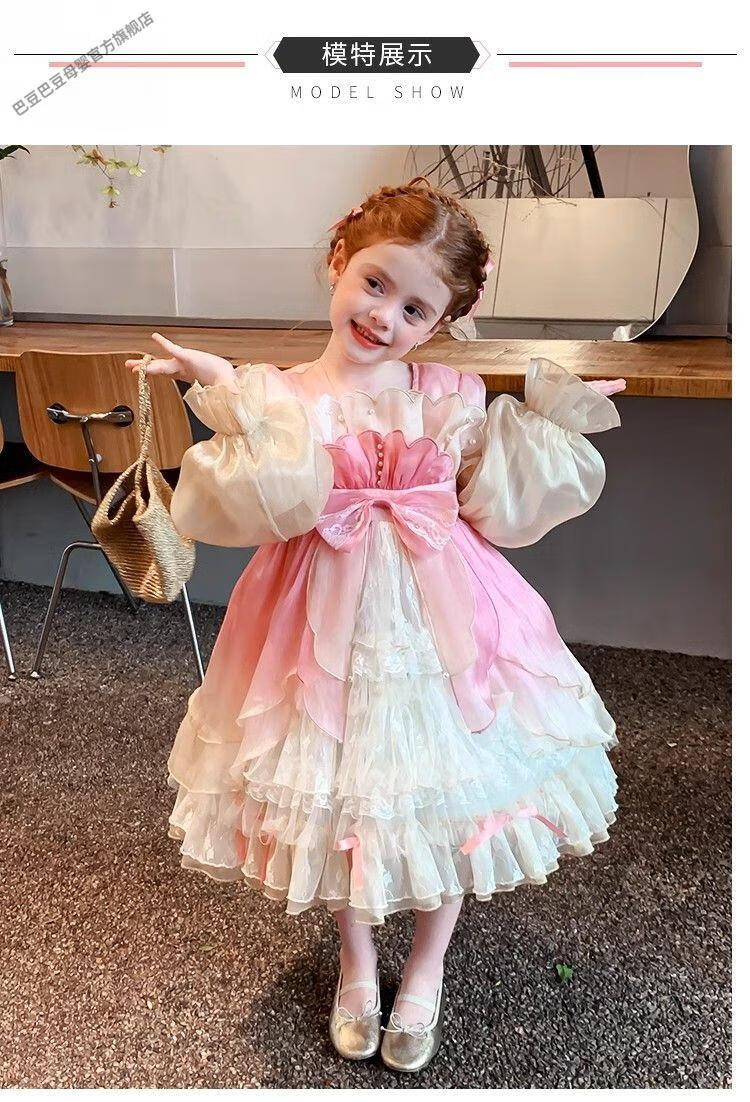 G.duck Little Yellow Duck Lolita Girls Princess Dress Spring and Autumn 2025 New Children's Birthday Party Dress for Girls Baby Pink Spring and Autumn Style 100