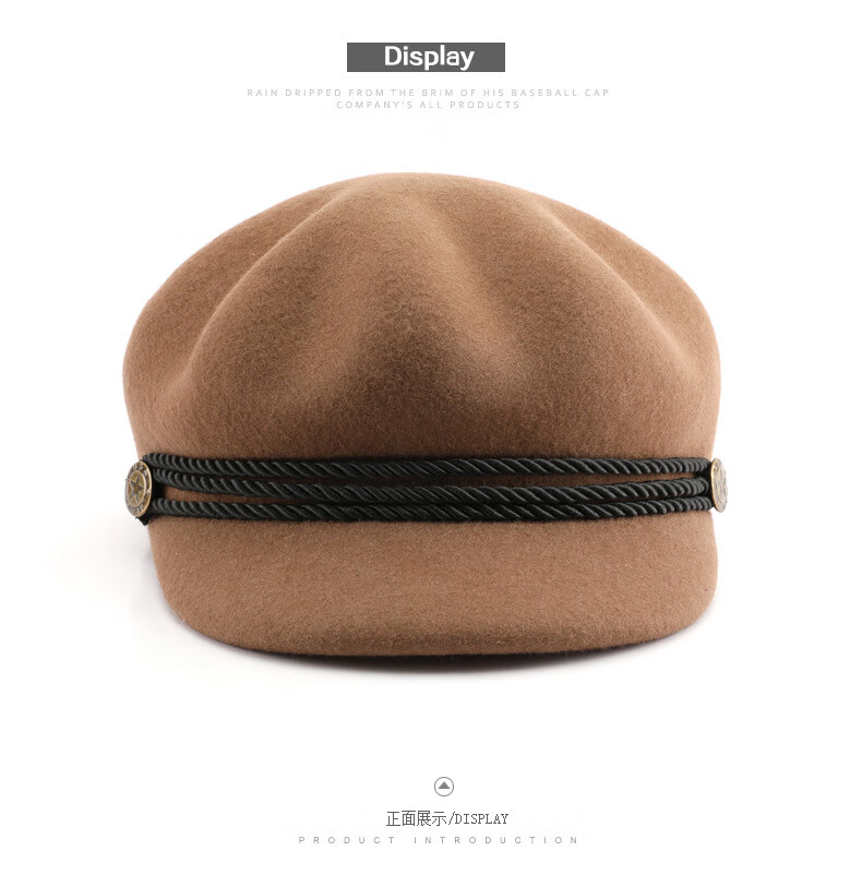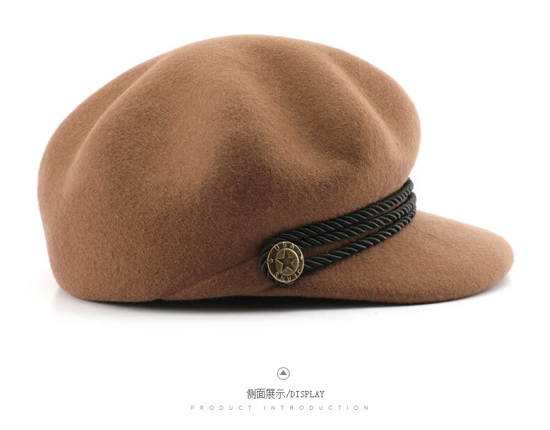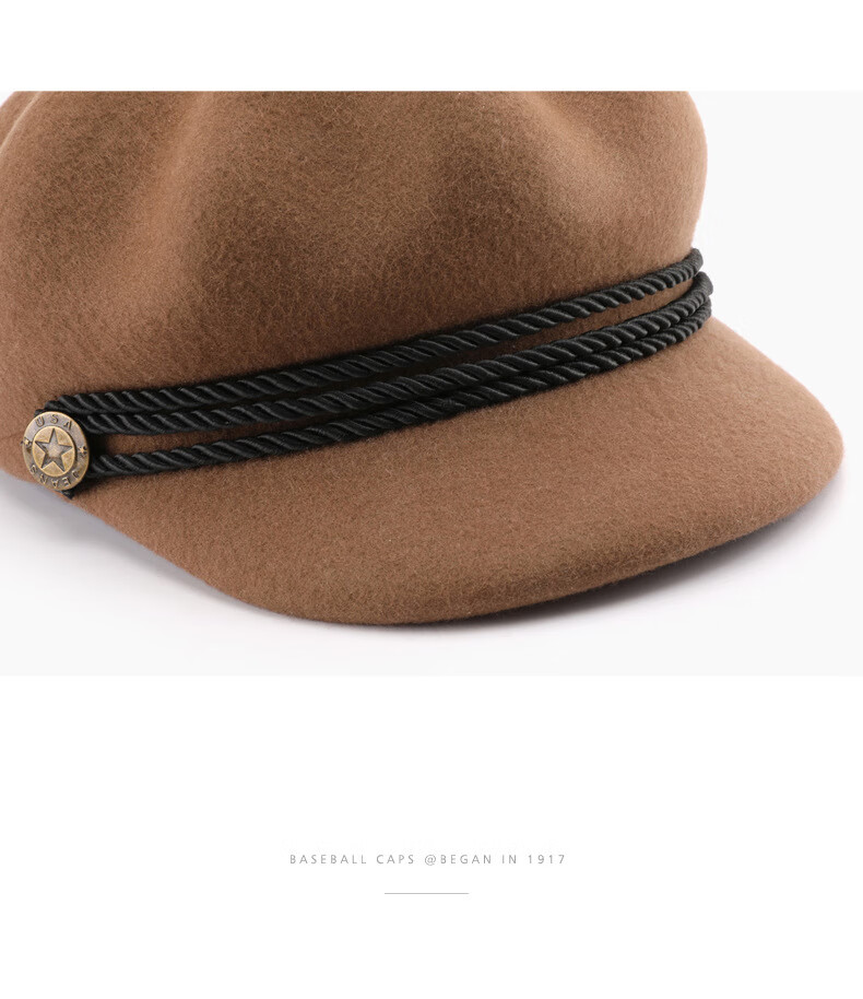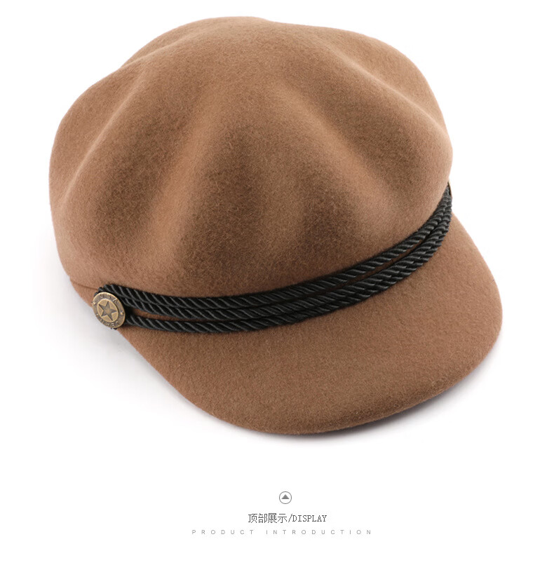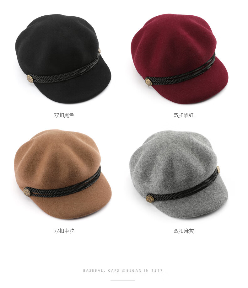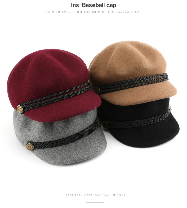 Woodpecker beret women's Korean version Japanese color retro wool octagonal hat outdoor travel sports sun protection casual hat burgundy