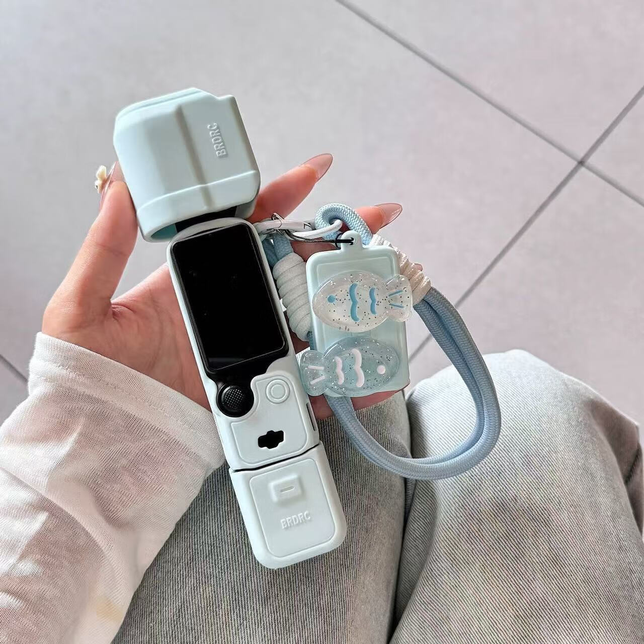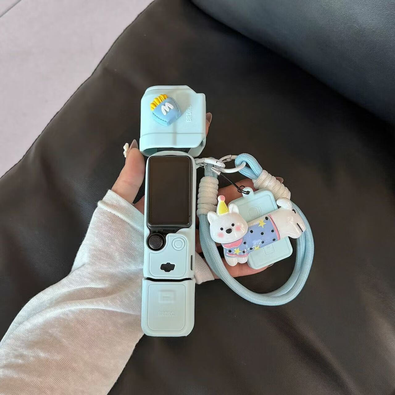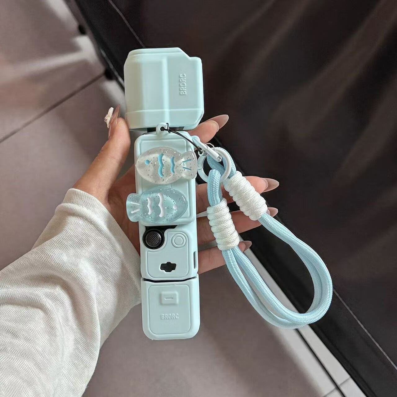 Wen Shiou DJI protective case pocket3 protective case cute pajamas puppy silicone gimbal camera body anti-scratch accessories stand-alone version blue fish protective case