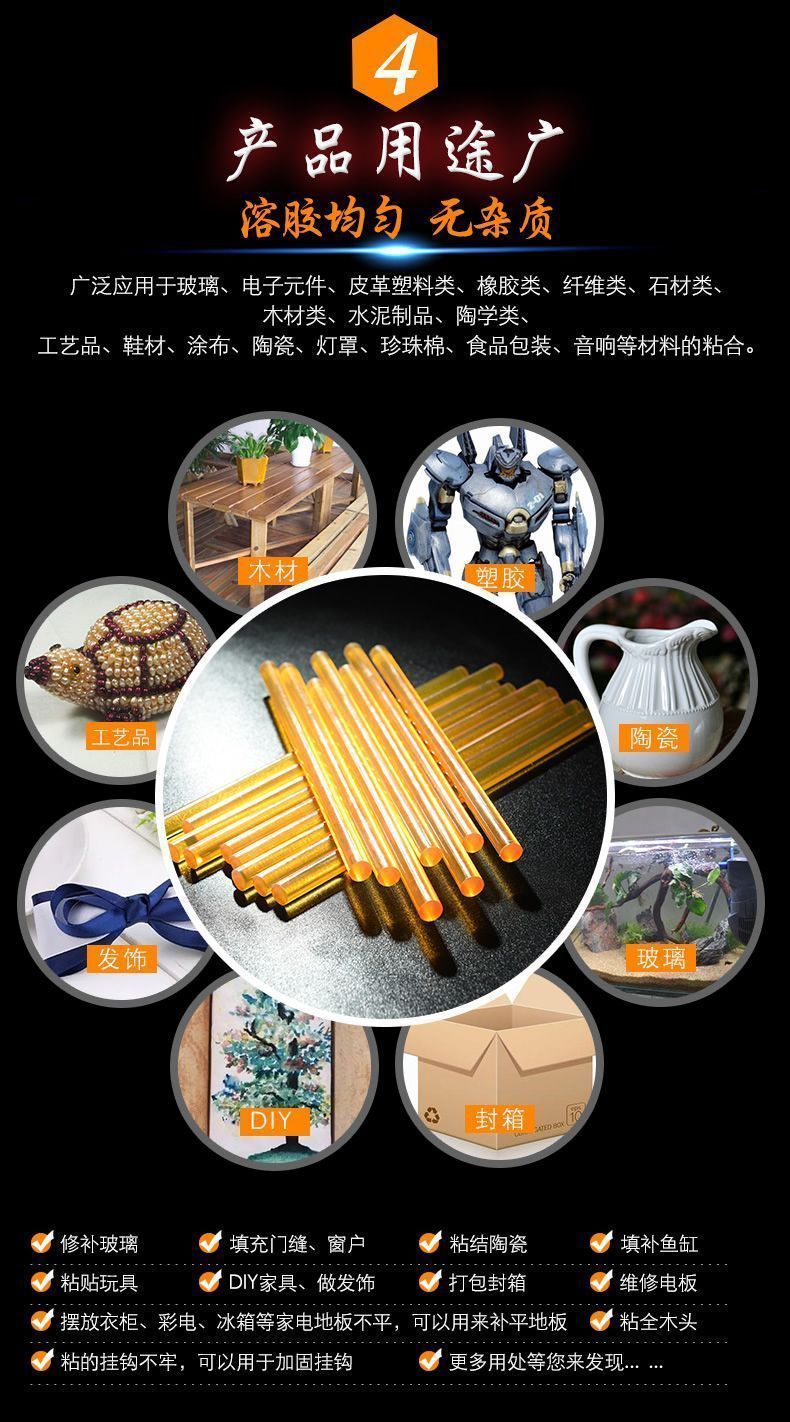 Automotive sheet metal dent repair tool, special for pulling, non-marking, high-viscosity hot-melt glue stick, glue strip to absorb dents, high-viscosity yellow, transparent, 10 sticks, 7*270mm
