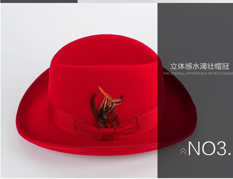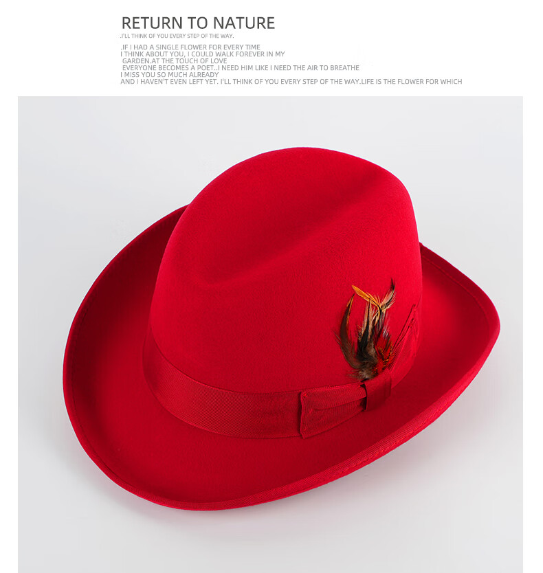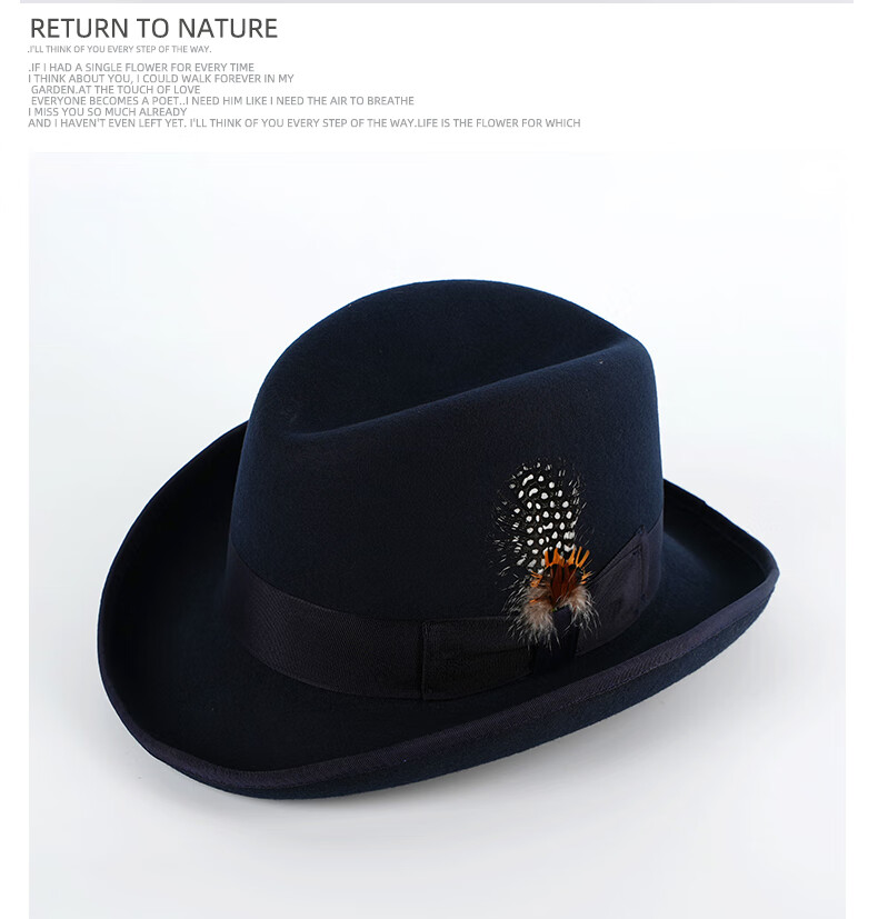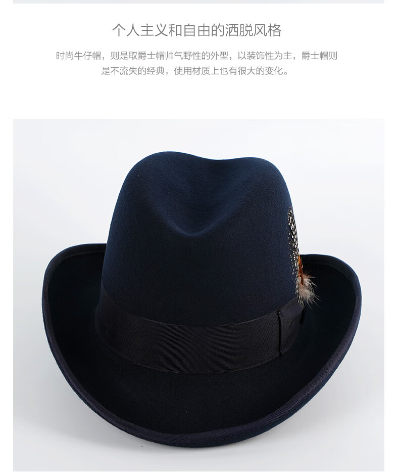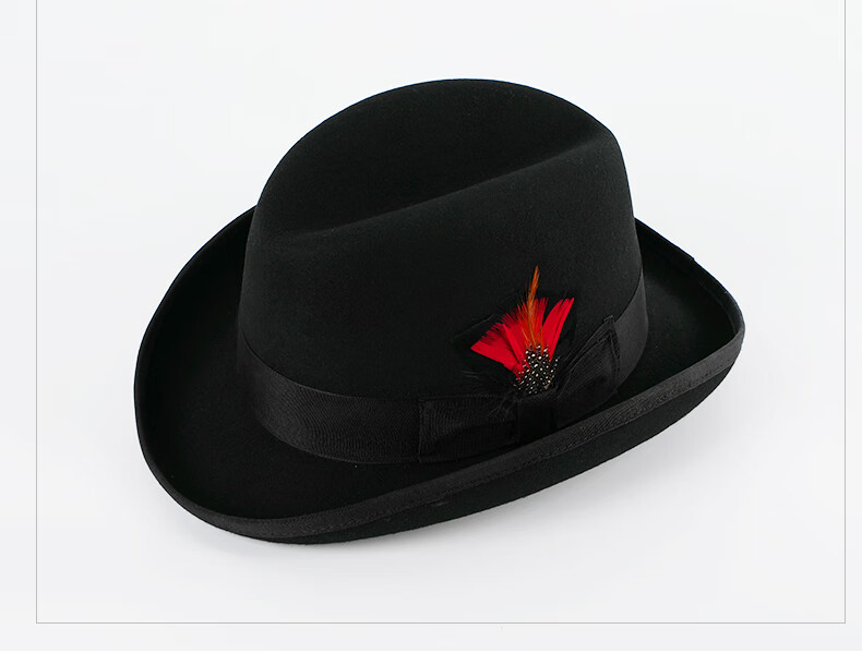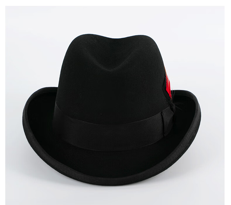 What a cool wool hat for men, Homburg hip-hop hat, British short-brimmed jazz hat, shaped felt hat, Godfather hat, black S (54-56cm)