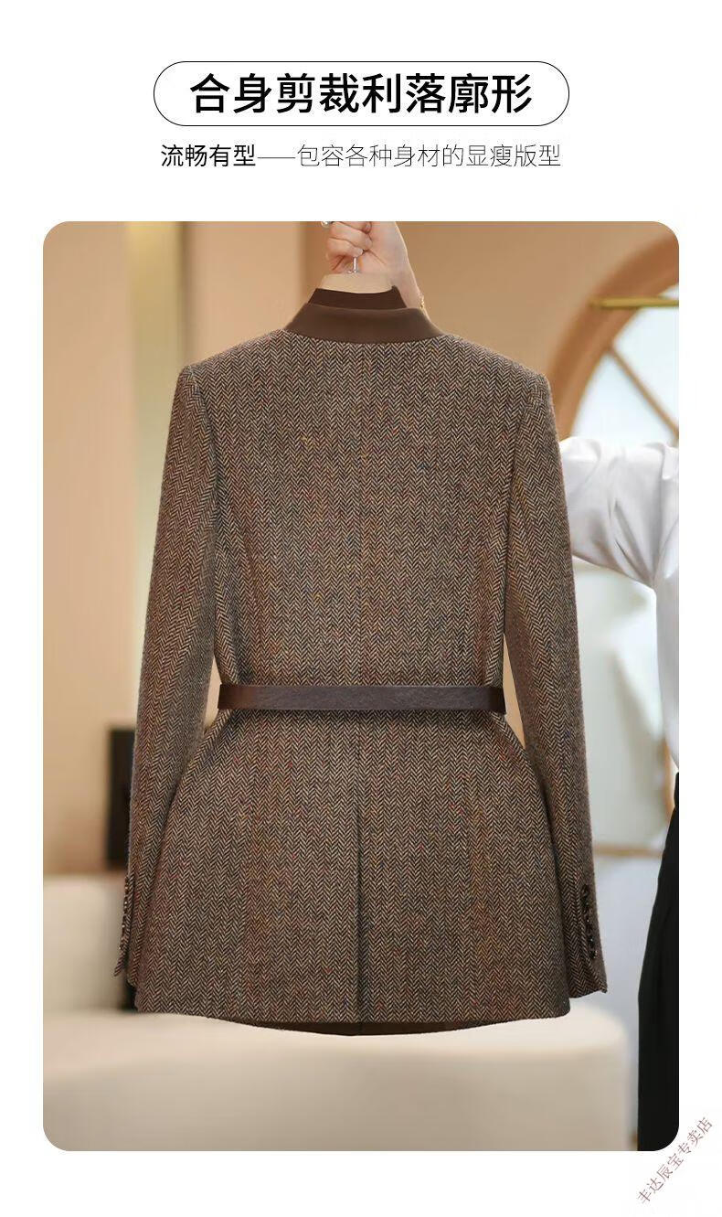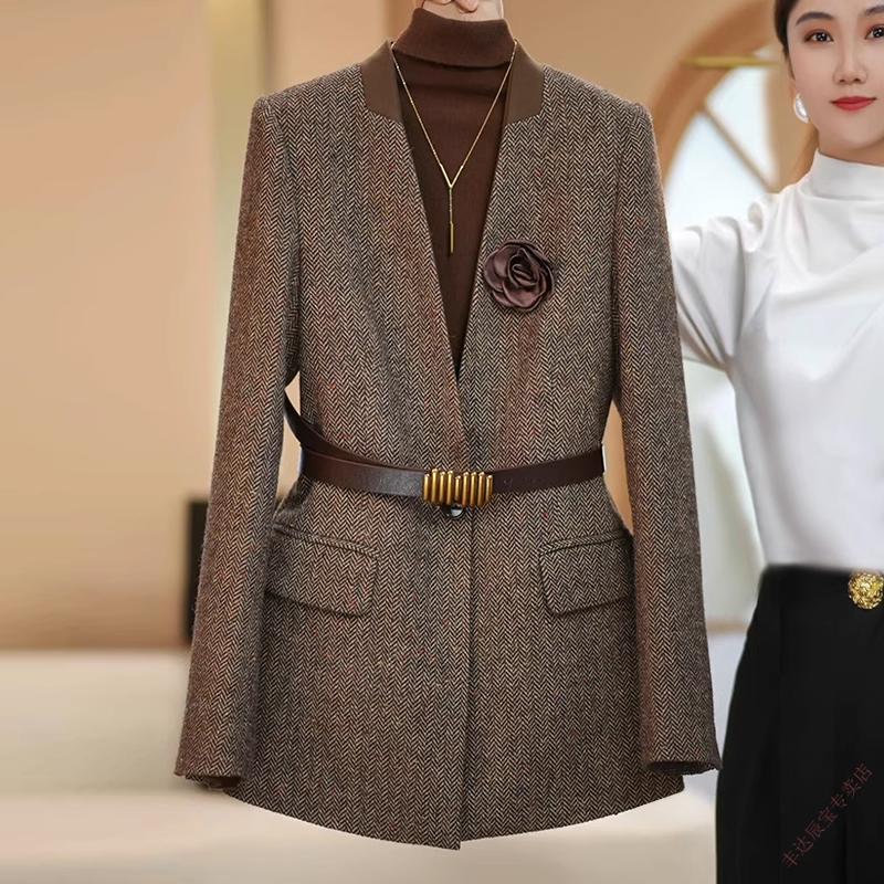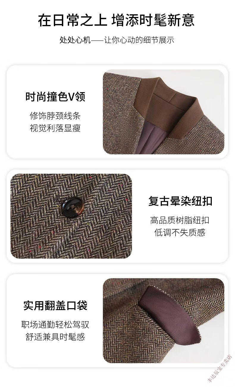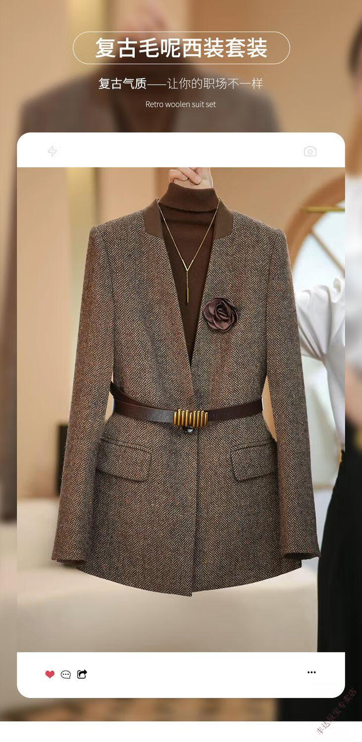Pierre Cardin coffee color versatile suit suit for women in autumn and winter, thick herringbone pattern, fashionable and simple commuter suit, coffee color jacket + coffee color sweater + coffee color pants (comes with corsage + belt) 2XL 125-145Jin Jin is equal to 0.5 kg