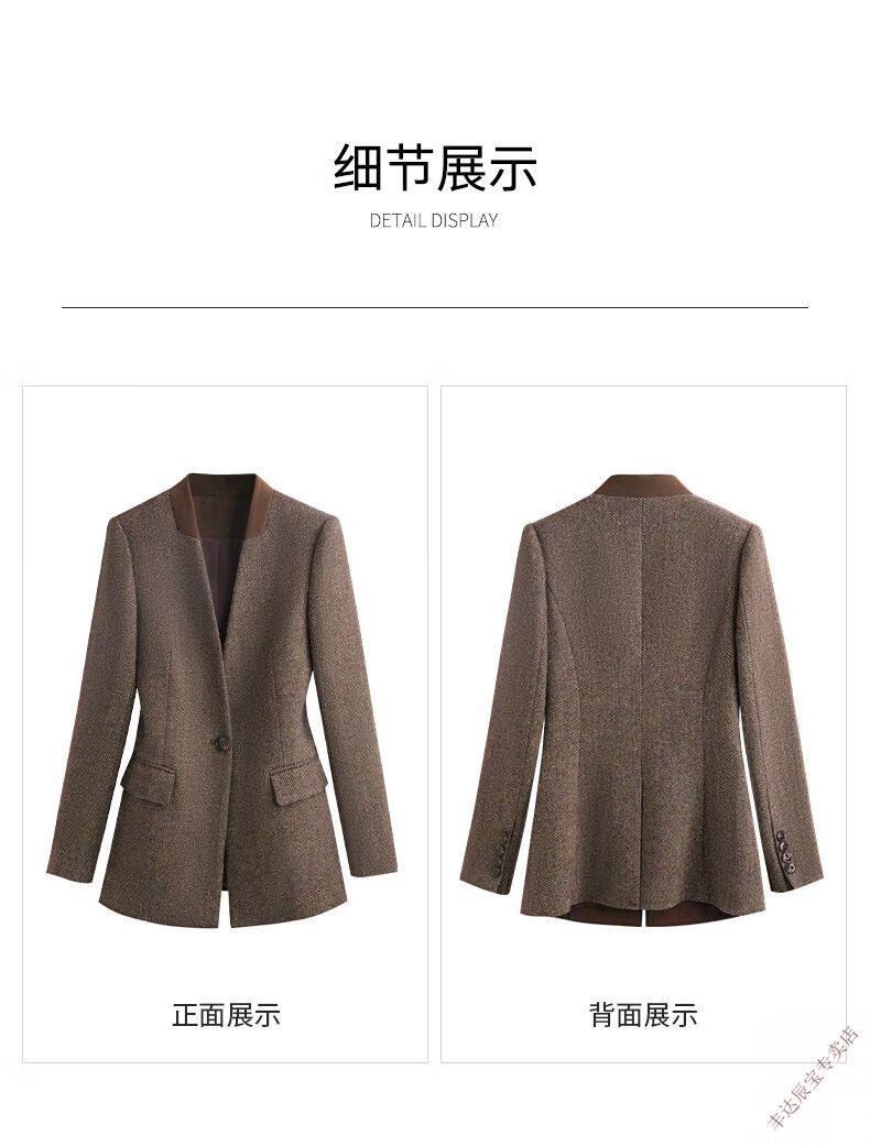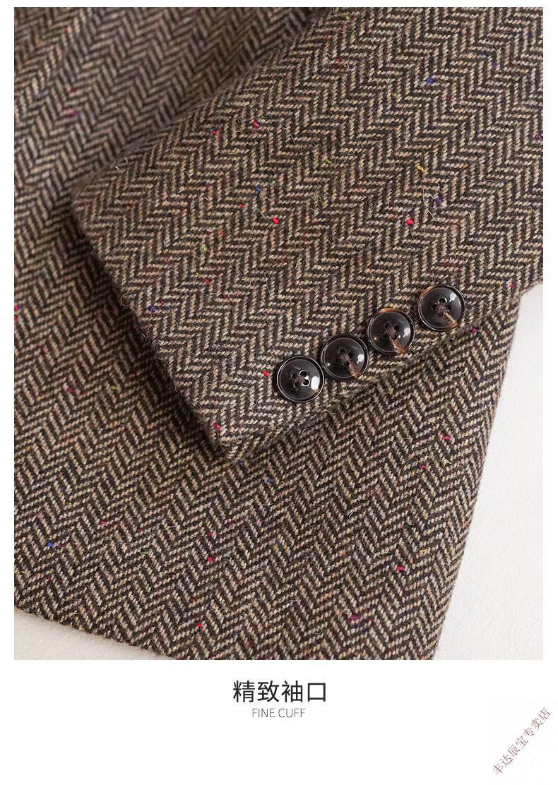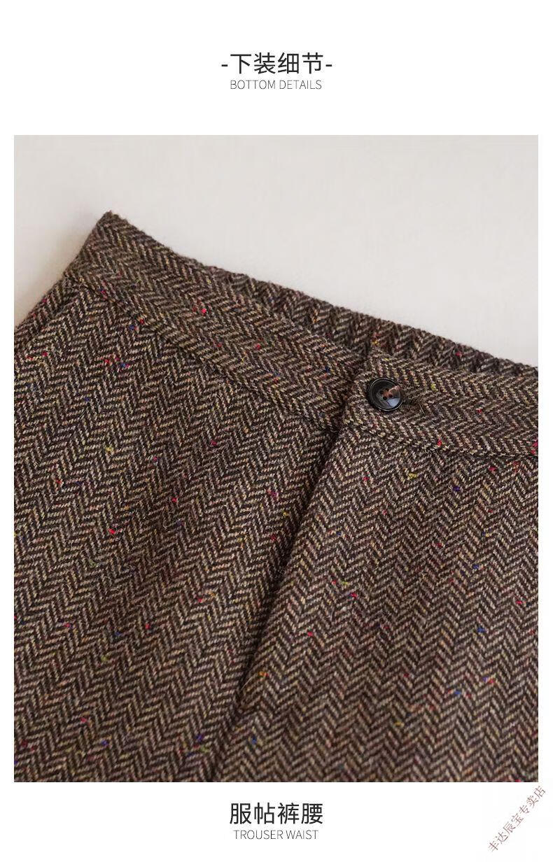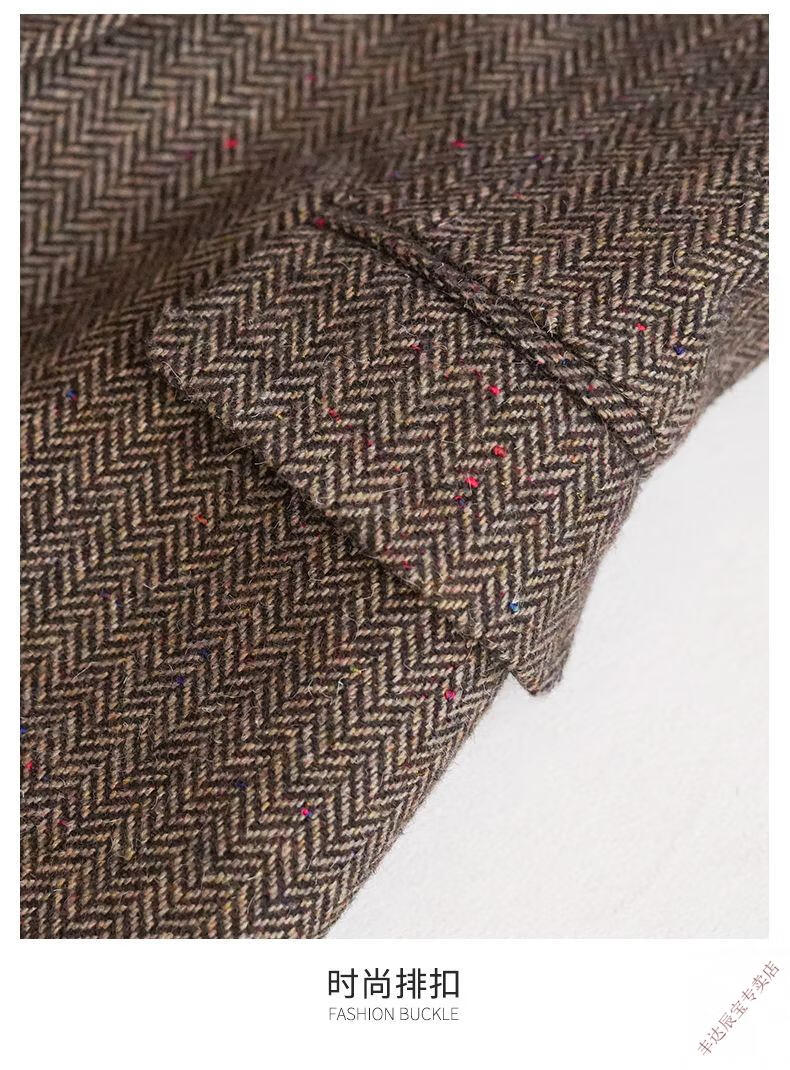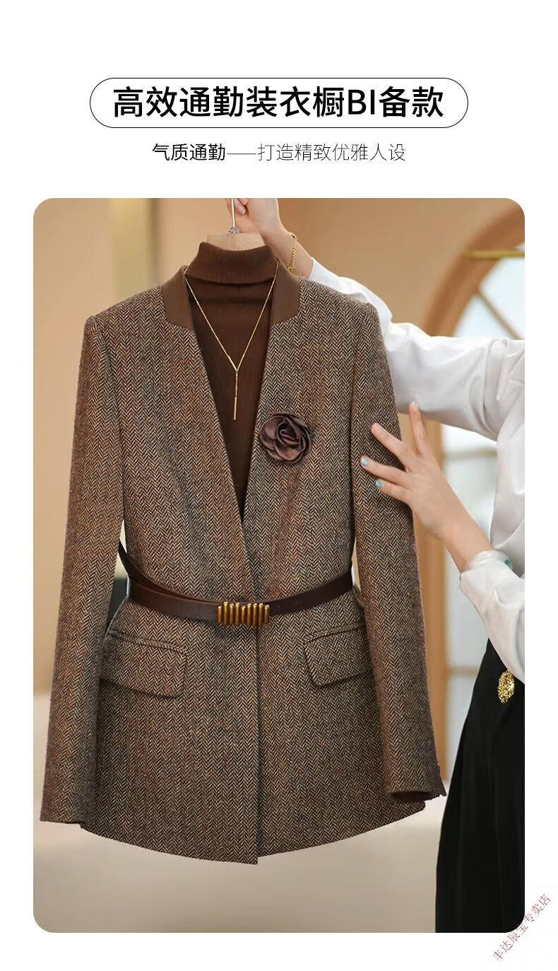 Pierre Cardin coffee color versatile suit suit for women in autumn and winter, thick herringbone pattern, fashionable and simple commuter suit, coffee color jacket + coffee color sweater + coffee color pants (comes with corsage + belt) 2XL 125-145Jin Jin is equal to 0.5 kg