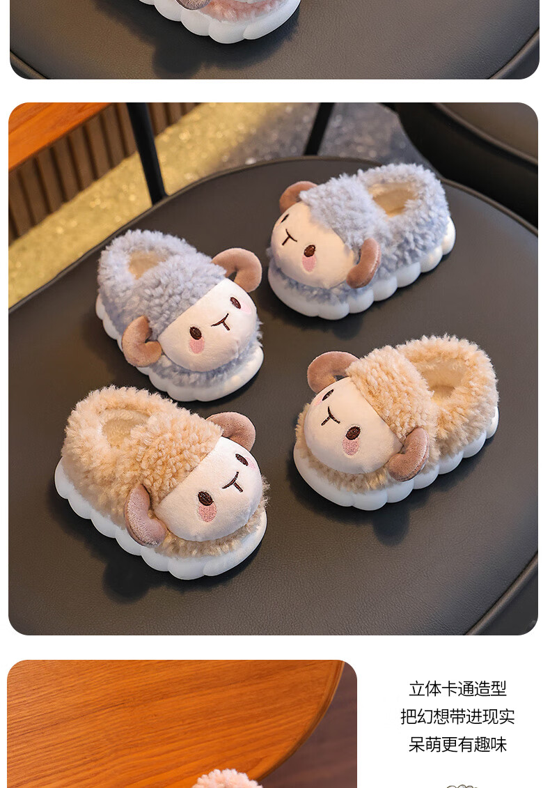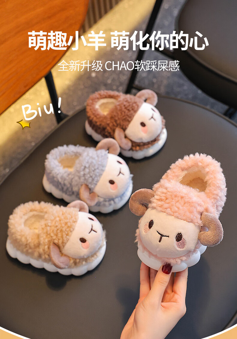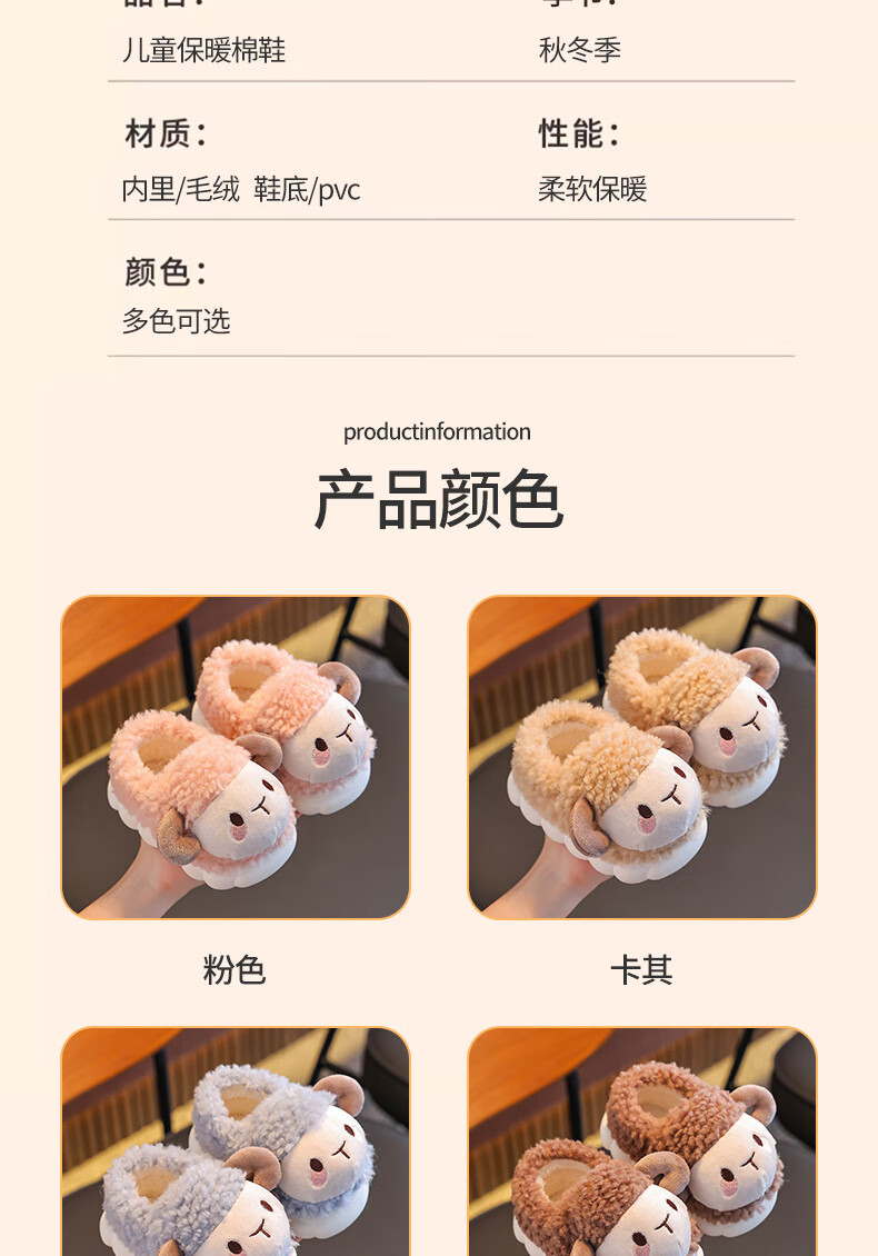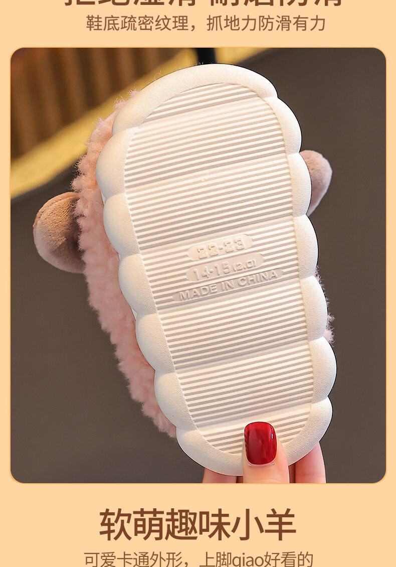 Winter children's cotton slippers with heel for girls, warm and velvet at home for boys, cute cotton shoes for small and medium-sized children at home, light coffee (heel) 12, size 26/27 (shoe inner length 16CM, suitable for feet 15