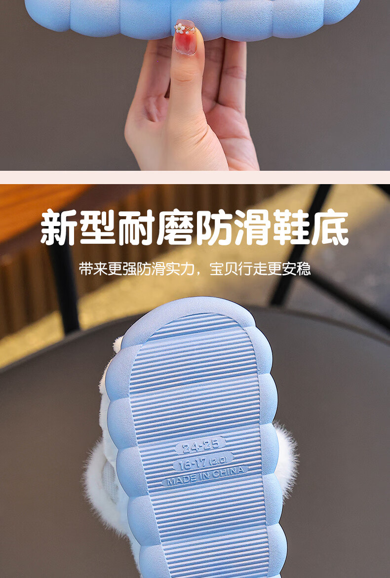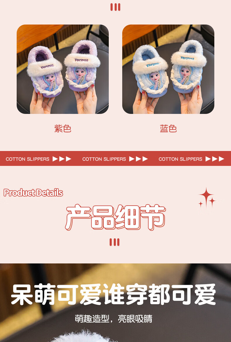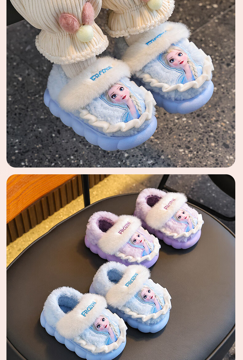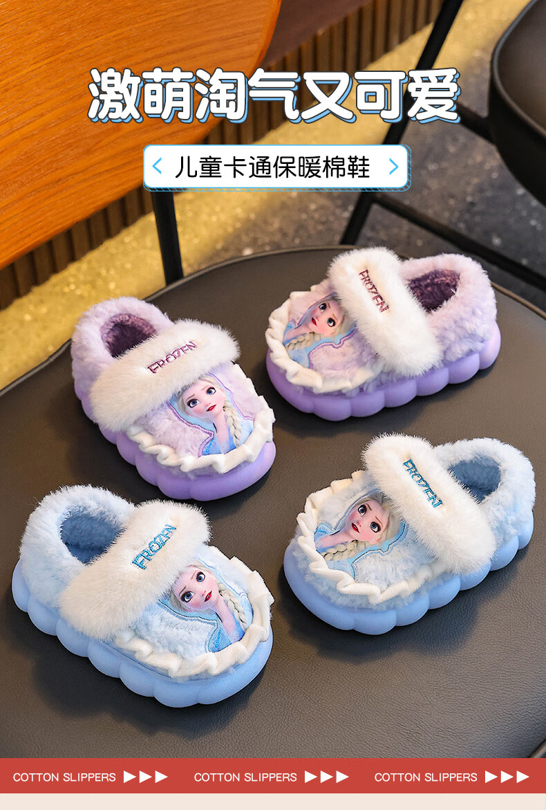 2025 winter children's cotton slippers for girls, non-slip indoor warm and velvet girls, Princess Elsa's home cotton slippers, upgraded version of environmentally friendly material sky blue (heel included) 12 28/29 size (shoe inner length 17CM, suitable for feet 16