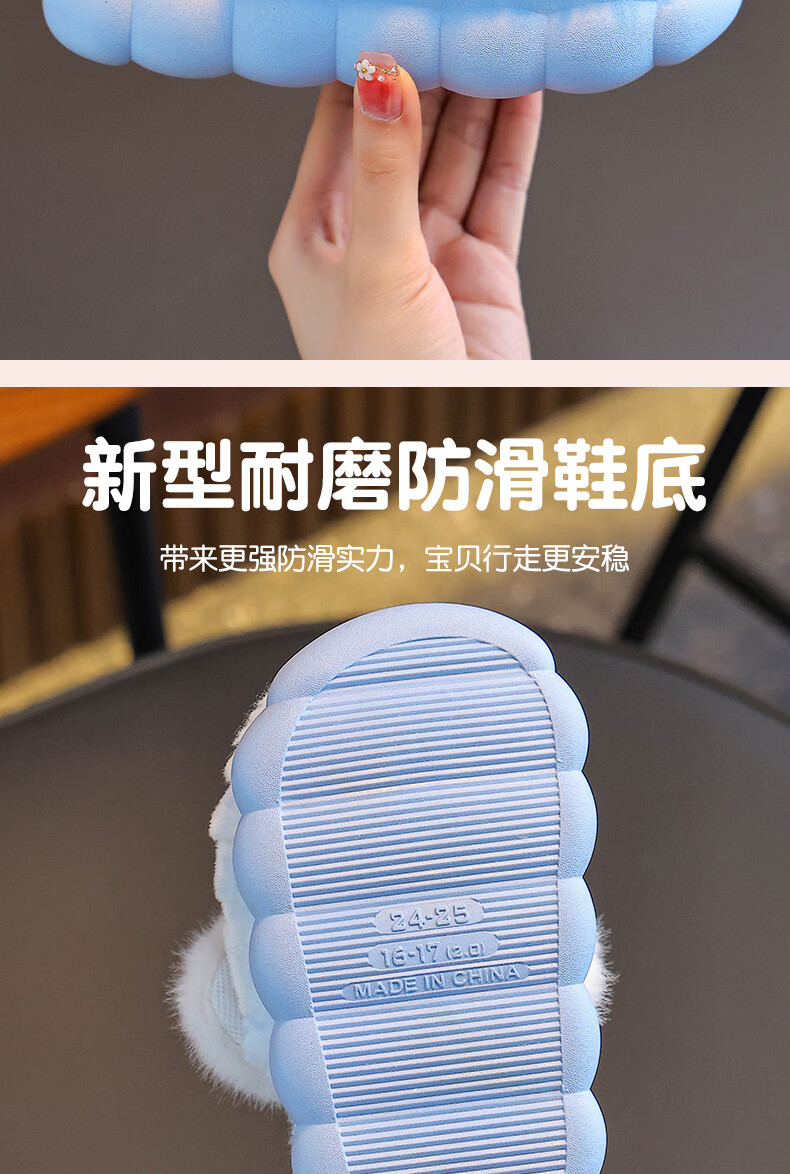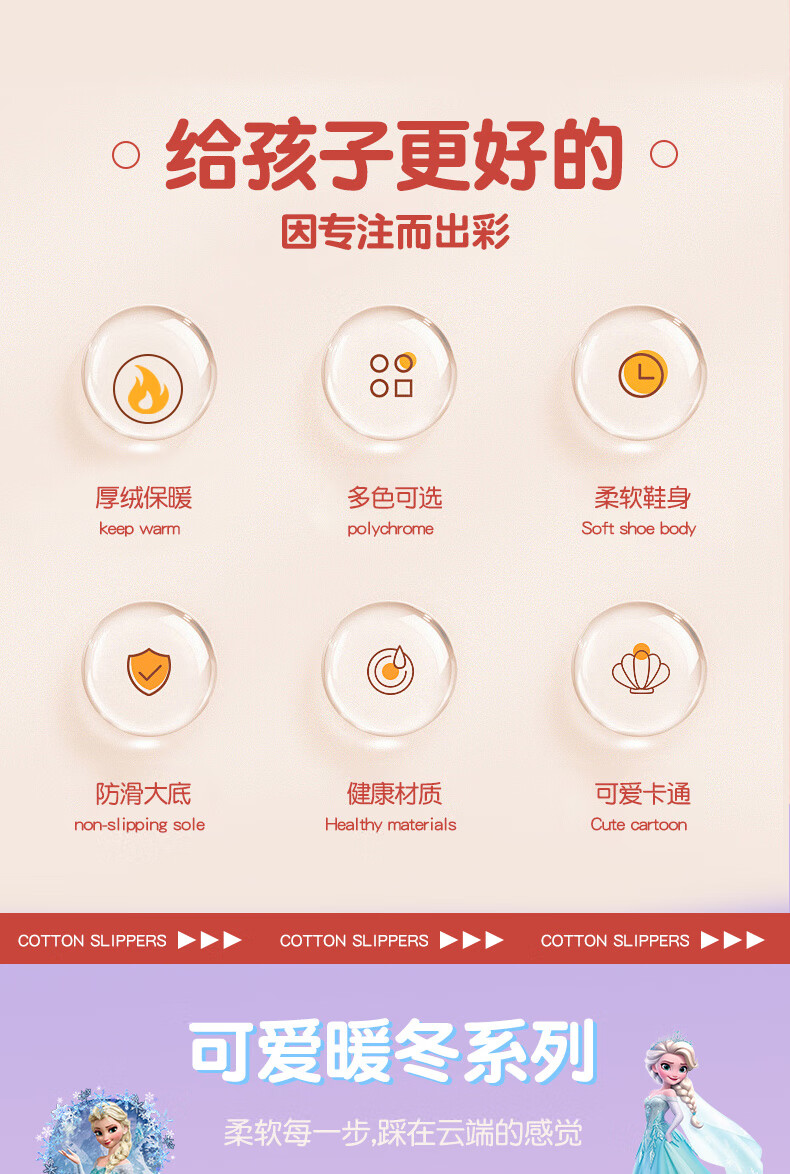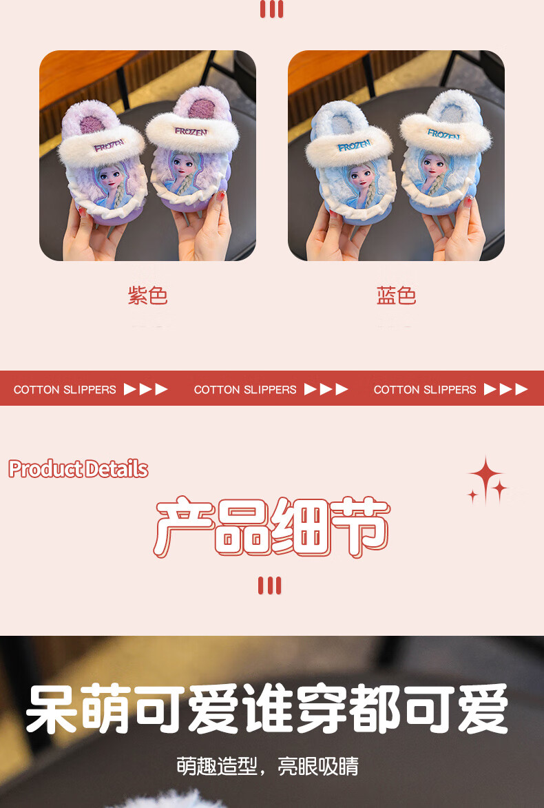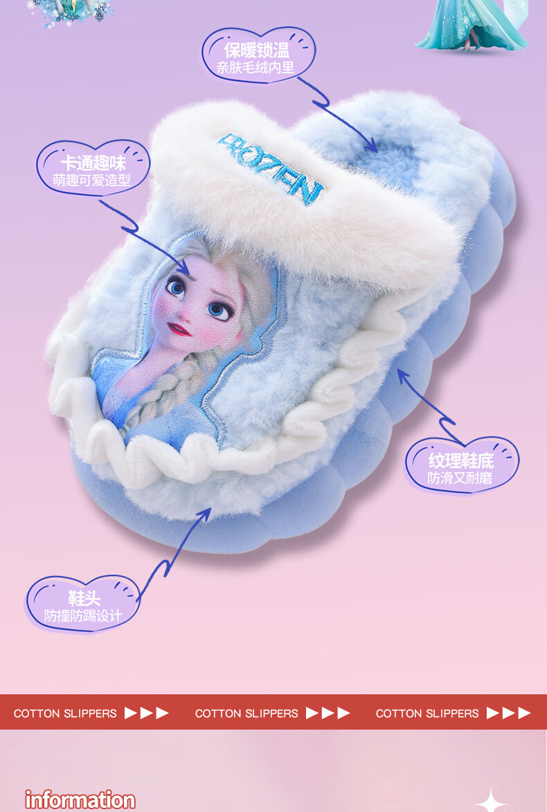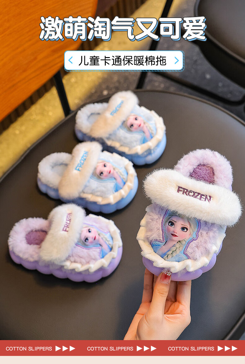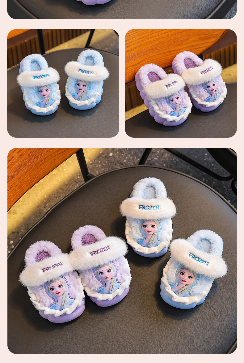 2025 winter children's cotton slippers for girls, non-slip indoor warm and velvet girls, Princess Elsa's home cotton slippers, purple slippers, size 12 30/31 (shoe inner length 18CM, suitable for feet 17