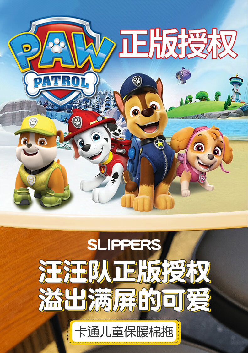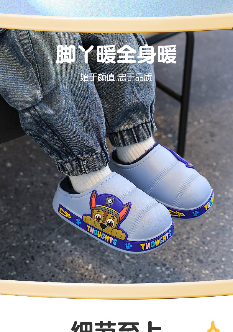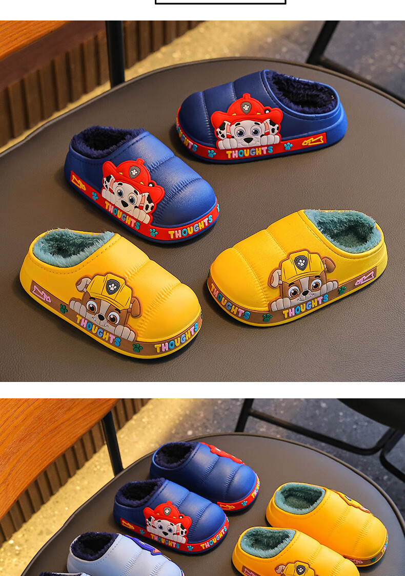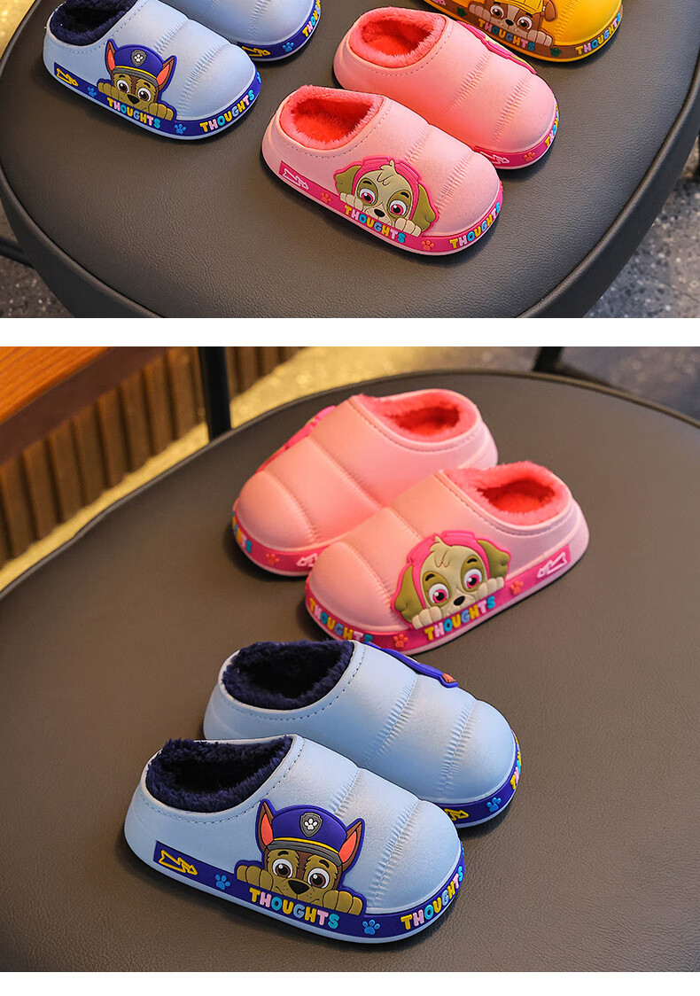 Authentic Paw Patrol winter children's cotton slippers, warm plus velvet heel, waterproof and non-slip home cotton slippers for small and medium-sized children, upgraded environmentally friendly material yellow gravel (heel included) 12 35/36 size (shoe inner length 21CM, suitable for feet 20