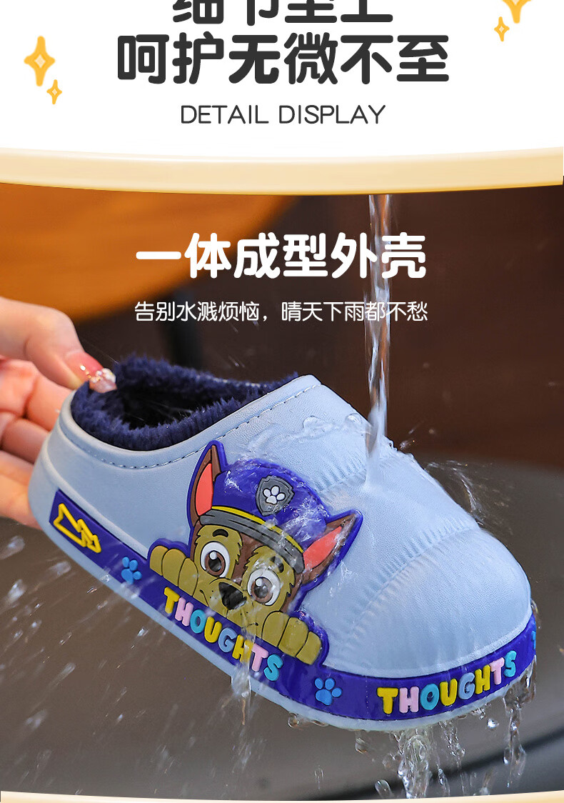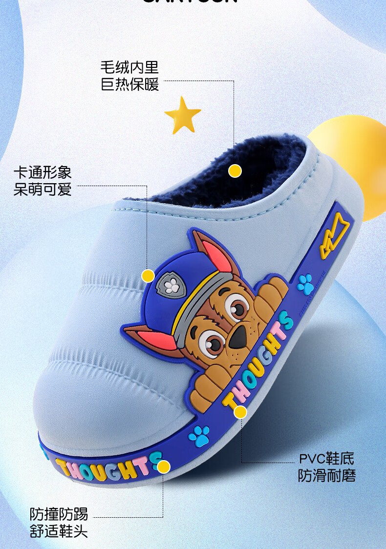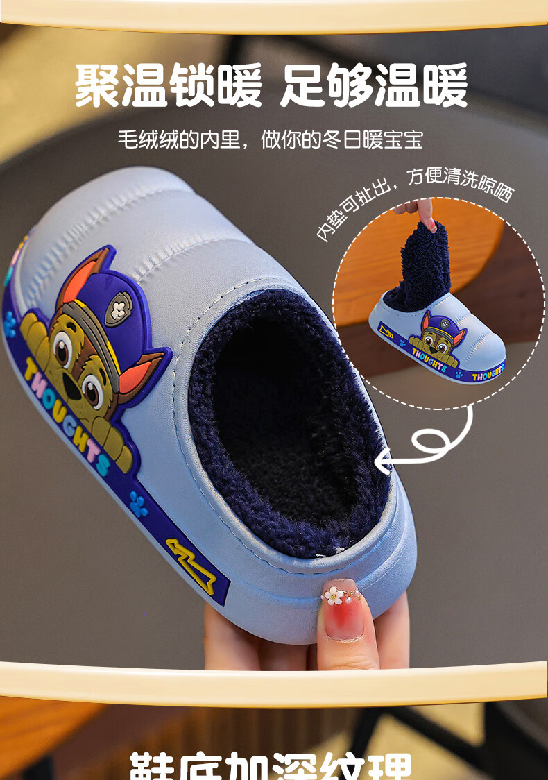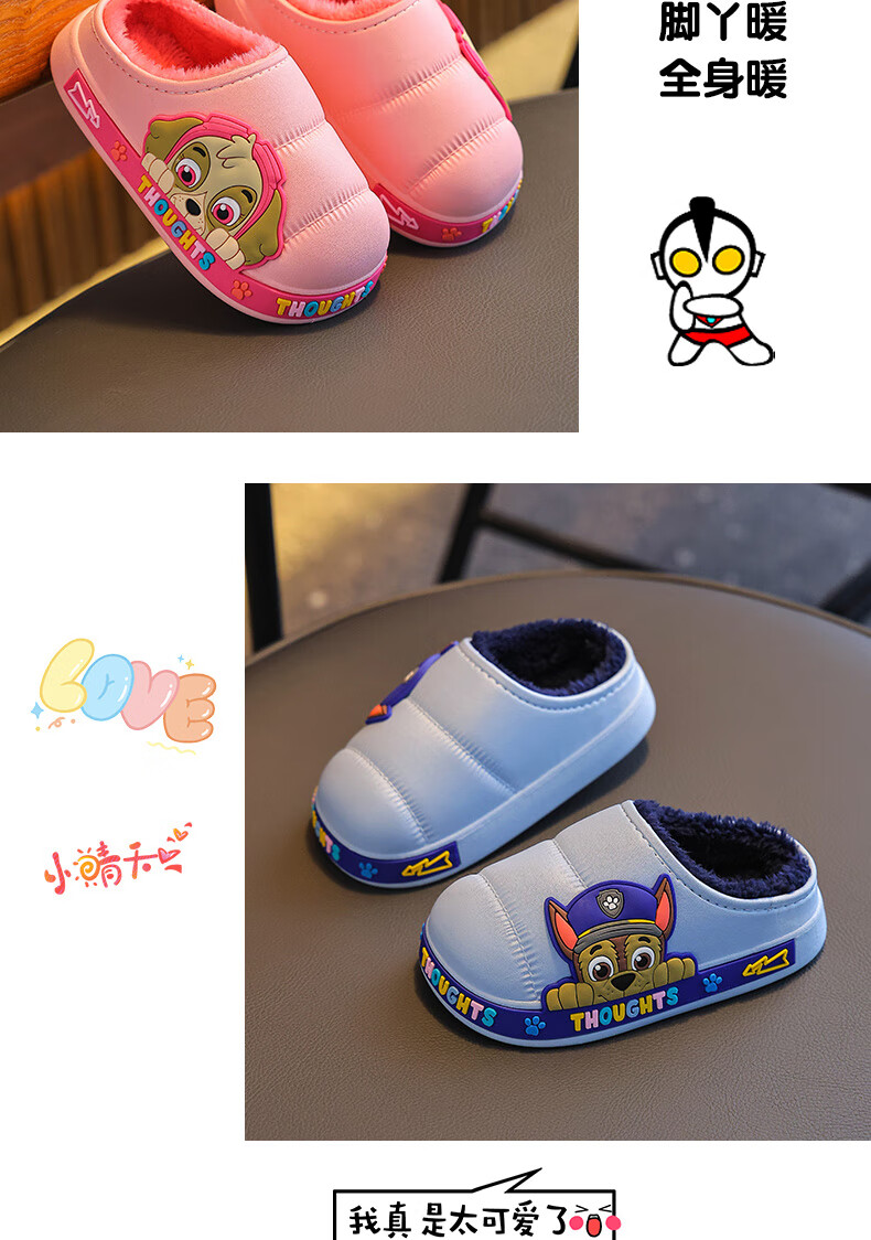 Authentic Paw Patrol winter children's cotton slippers, warm plus velvet heel, waterproof and non-slip home cotton slippers for small and medium-sized children, upgraded environmentally friendly material yellow gravel (heel included) 12 35/36 size (shoe inner length 21CM, suitable for feet 20