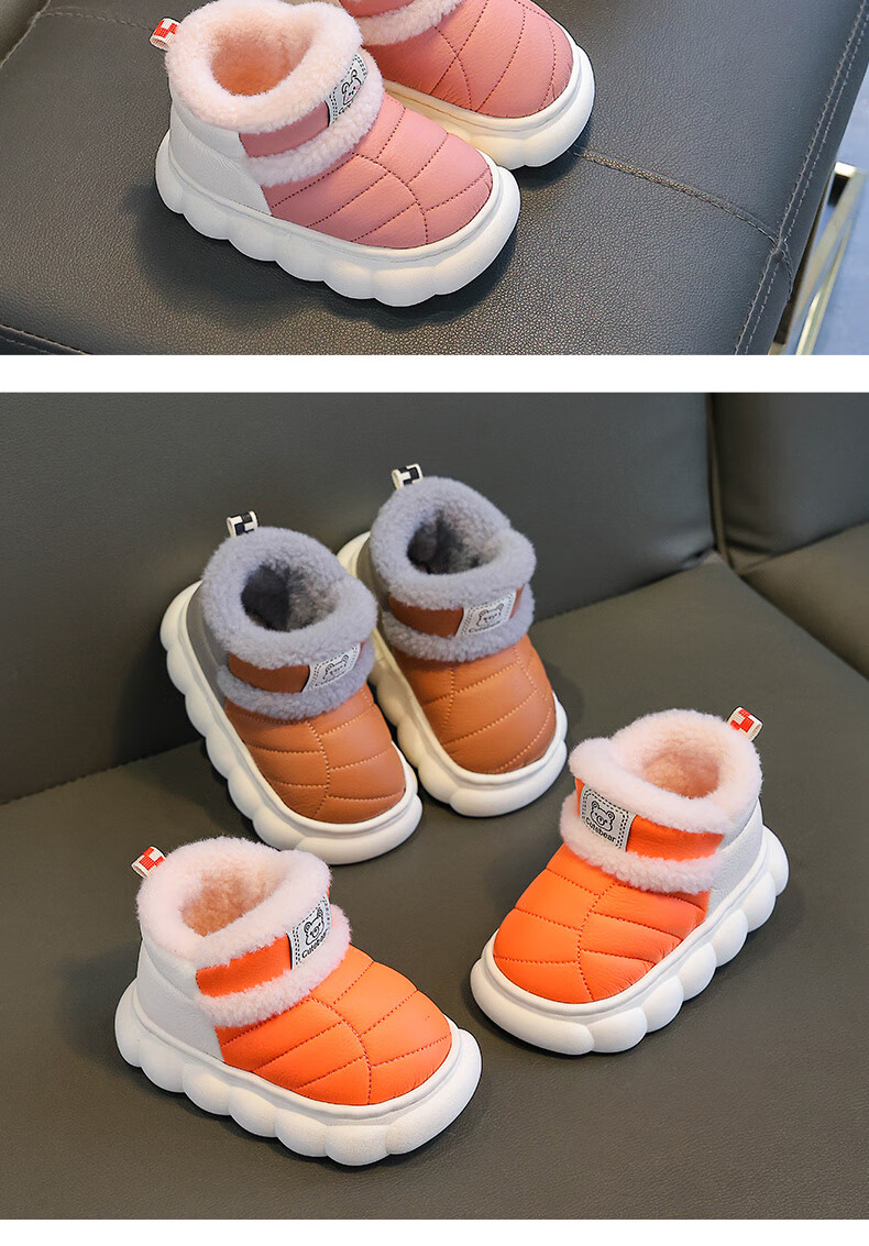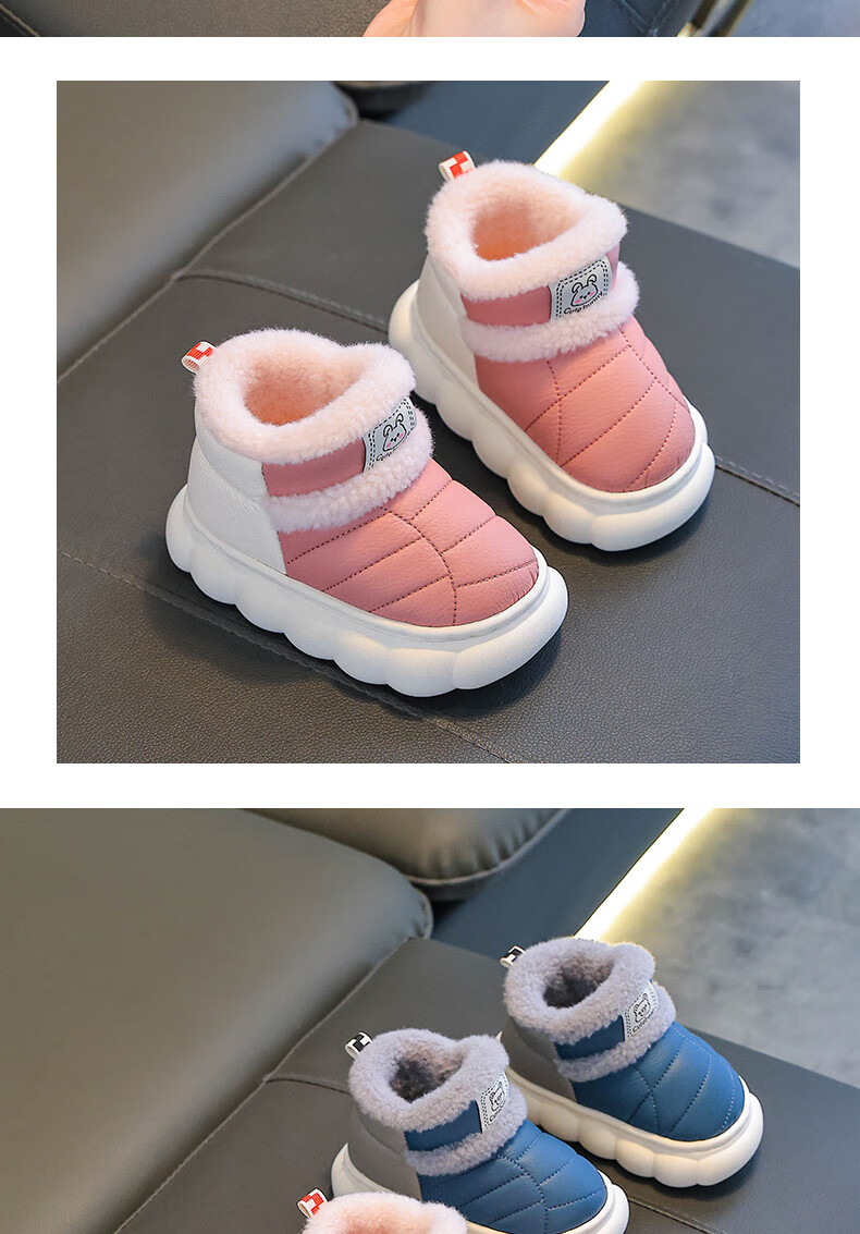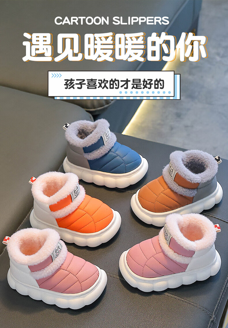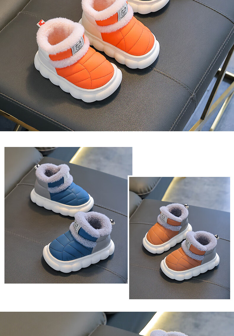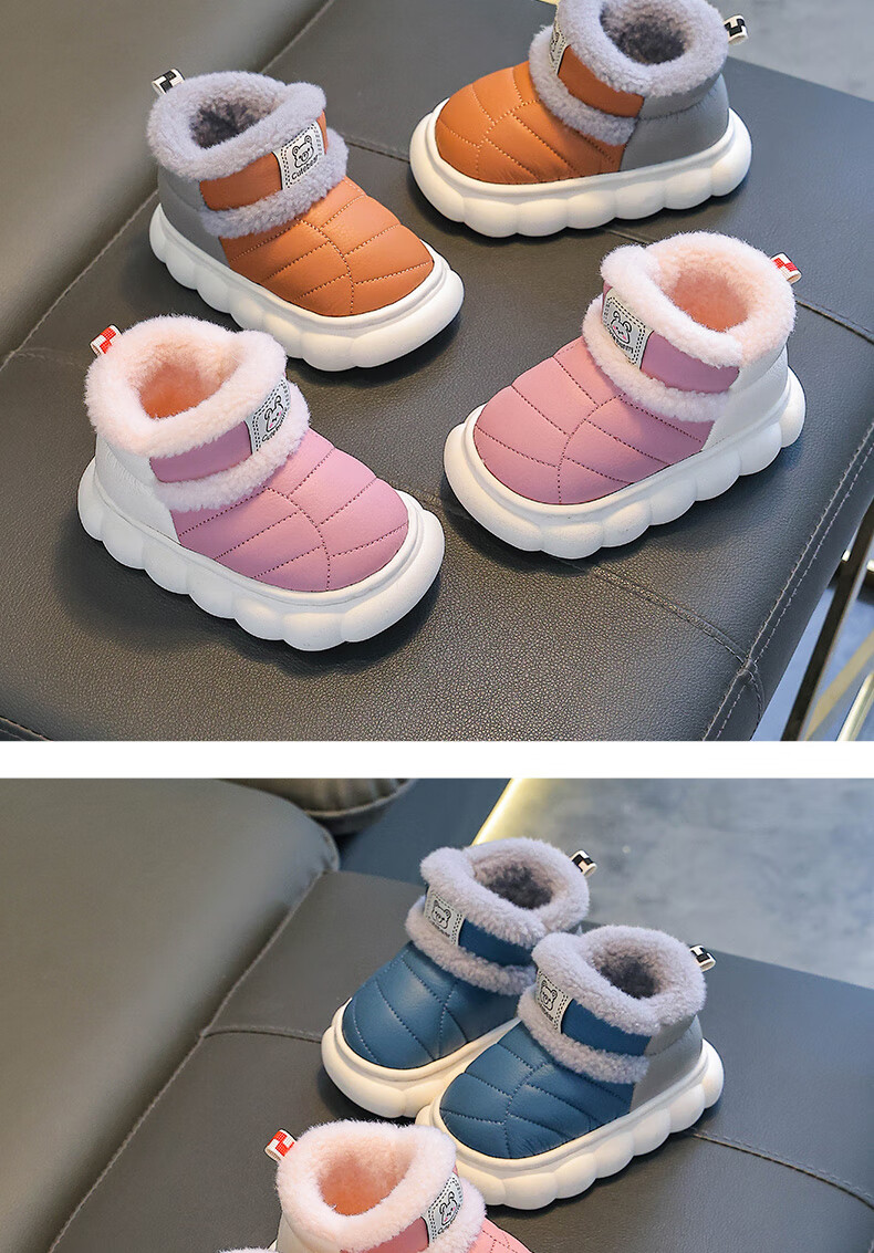 Winter children's bag-heeled cotton shoes for boys and girls, warm plus velvet PU leather waterproof thick-soled outer wear parent-child home shoes, upgraded version of environmentally friendly material blue, size 12 32/33 (shoe inner length 19CM, suitable for feet 18