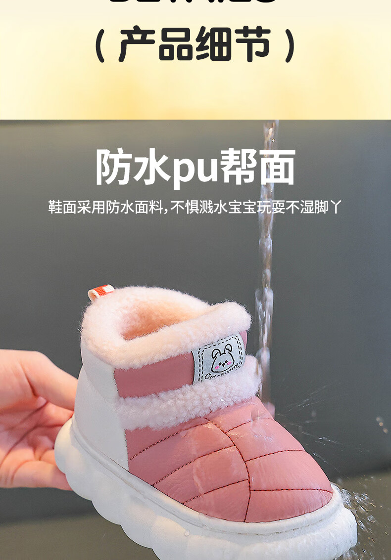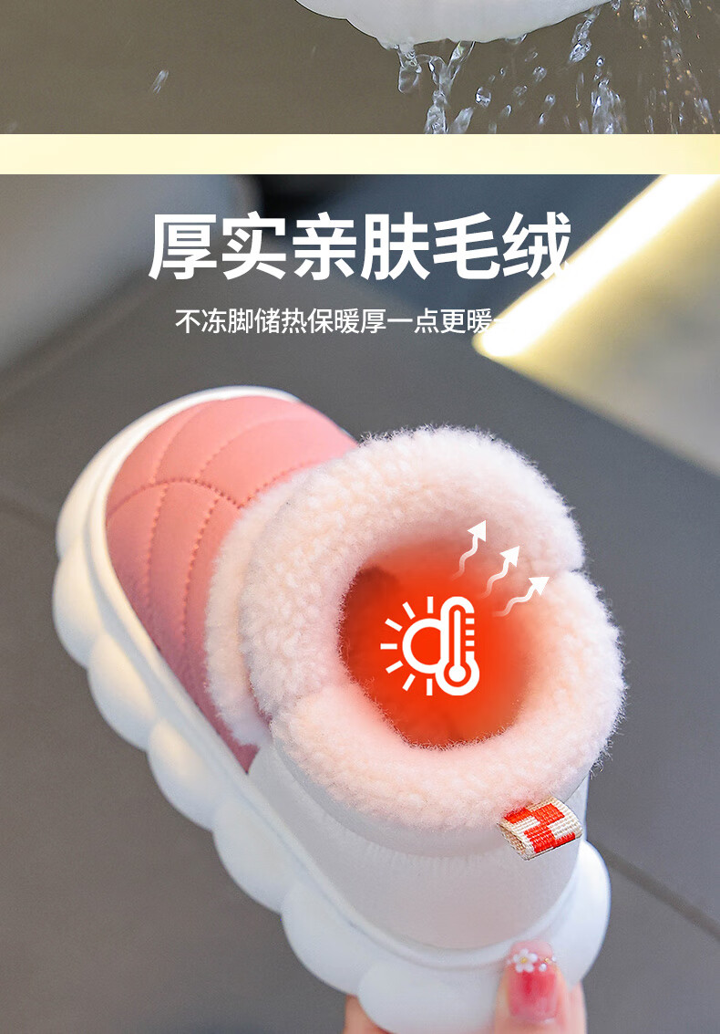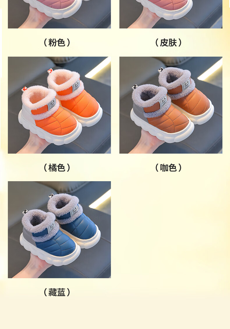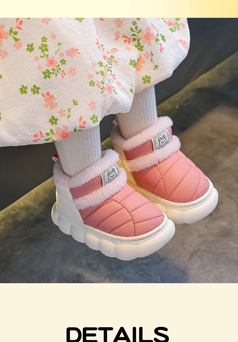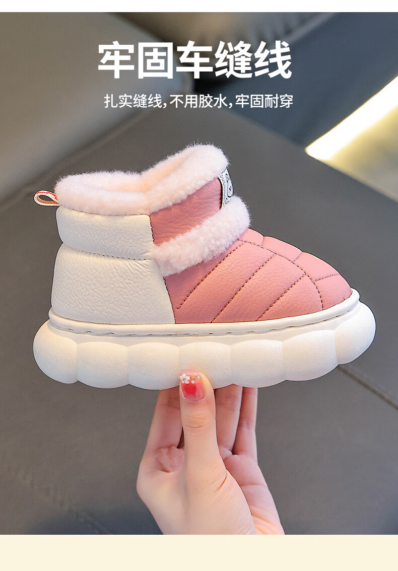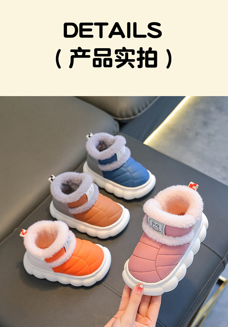 Winter children's bag-heeled cotton shoes for boys and girls, warm plus velvet PU leather waterproof thick-soled outer wear parent-child home shoes, upgraded version of environmentally friendly material blue, size 12 32/33 (shoe inner length 19CM, suitable for feet 18