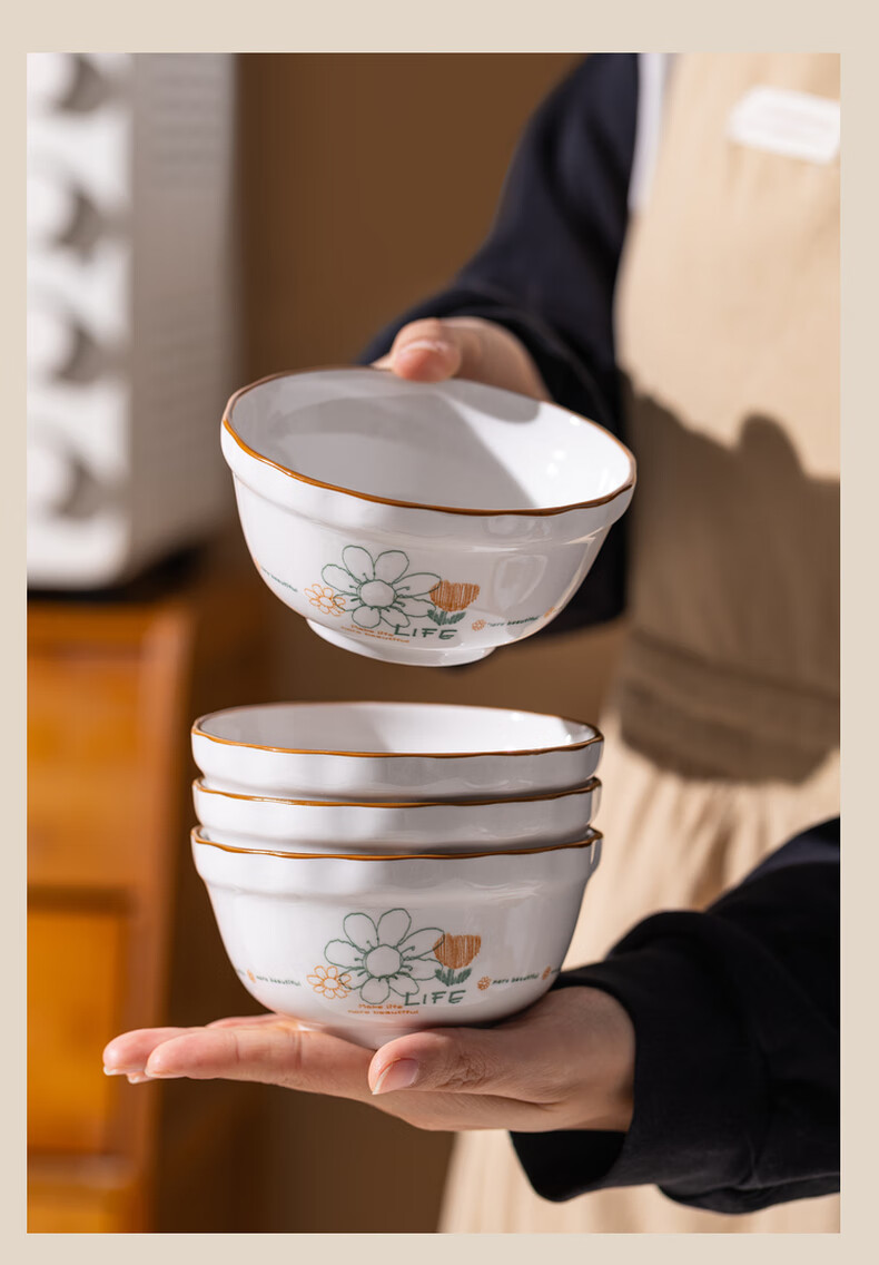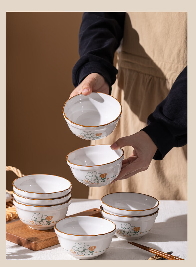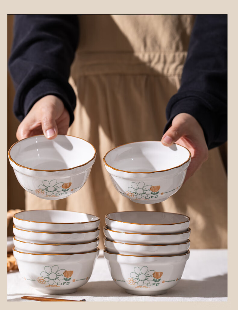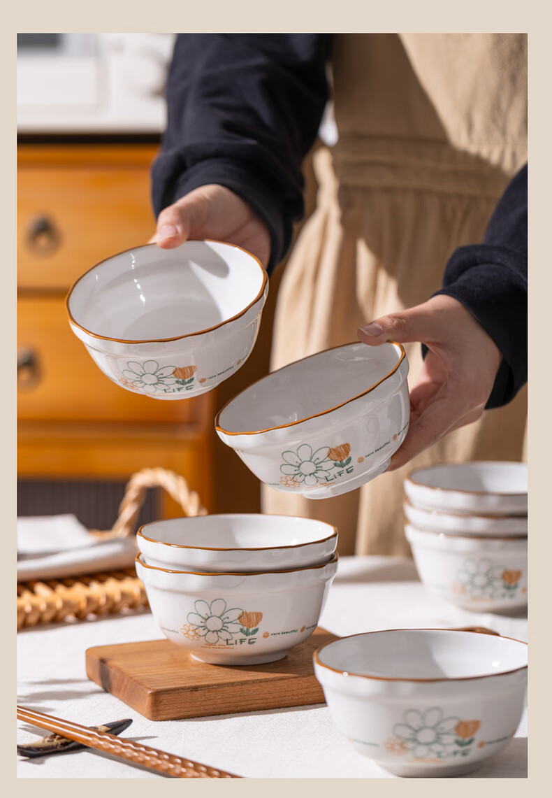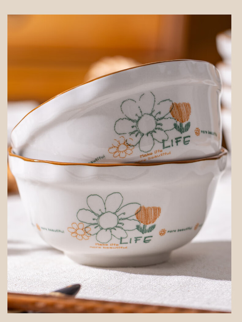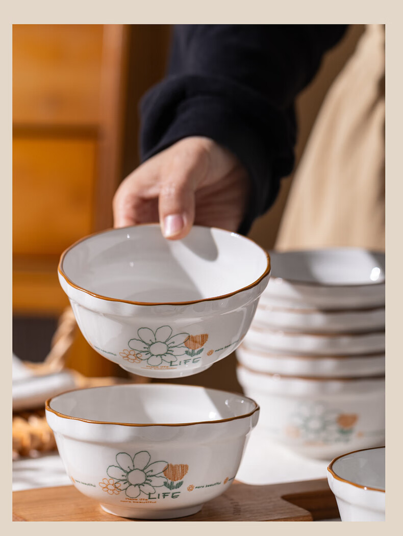 High-temperature underglaze color ceramic dish plate household sunflower high-value western style simple dish plate ceramic plate (7/8 inch random) - random color - 1 piece set
