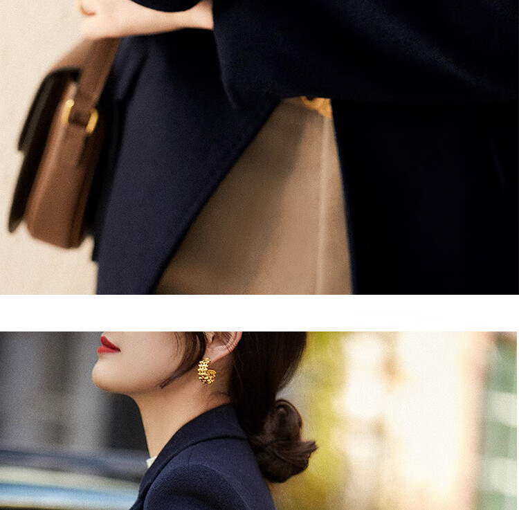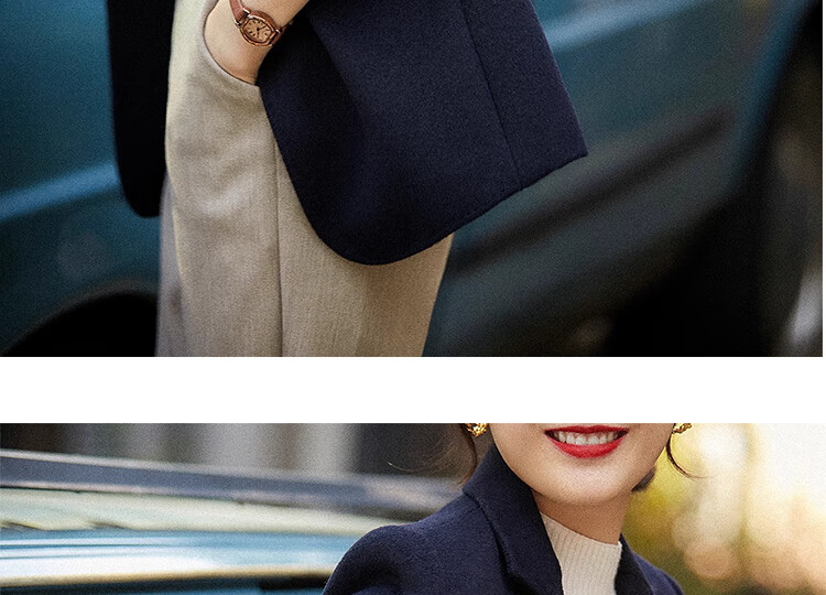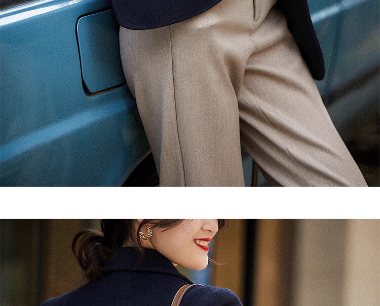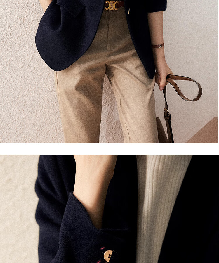 Pierre Cardin 2025 Winter New Slim Fit Wool Suit Jacket Women's Slim, Warm and Versatile Wool Suit Navy M Suitable for 100-115 Jin Jin equals 0.5 kg