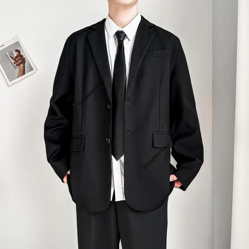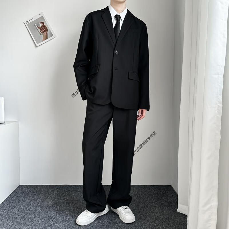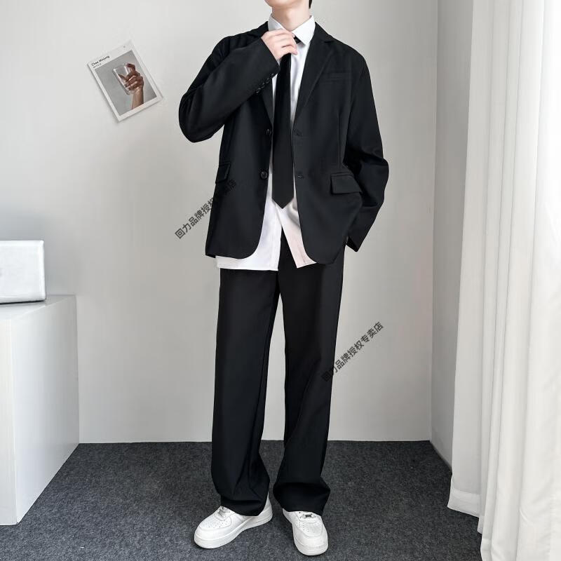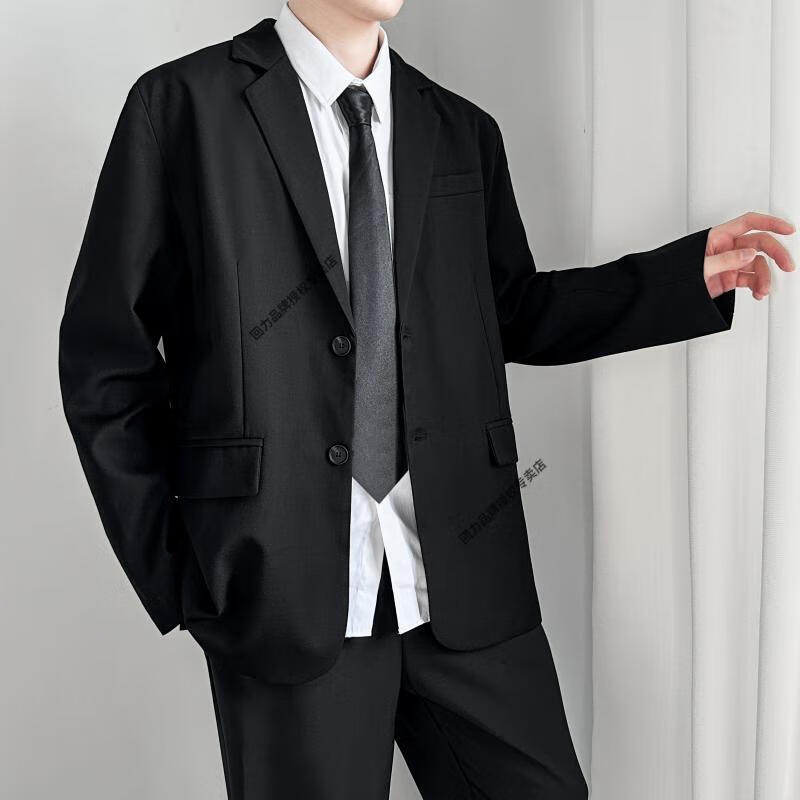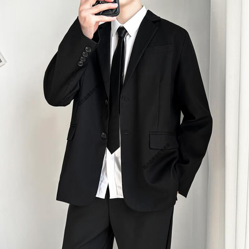 Pull back student suit suit men's loose casual black small suit handsome professional formal jacket DK black top black suit + shirt + trousers S