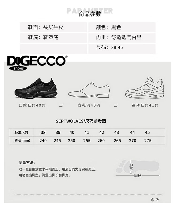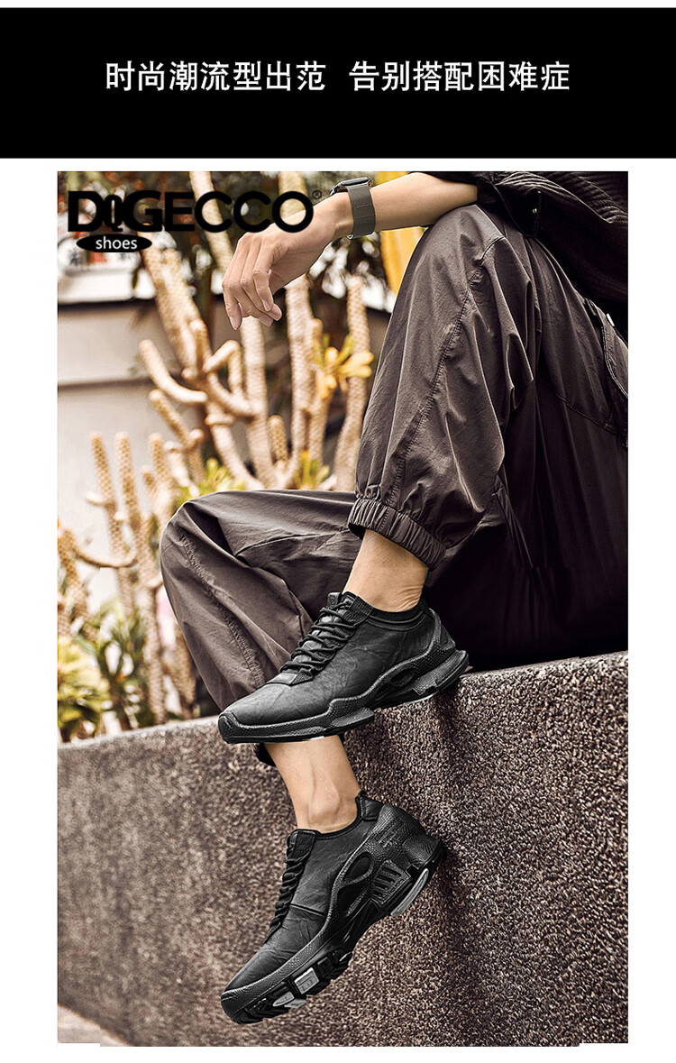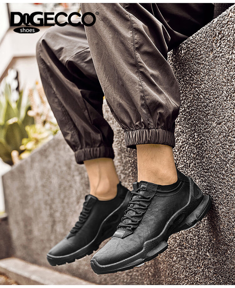 Aibotron DQG ECCO men's toe-layer cowhide spring and autumn genuine leather business casual shoes fashionable lightweight outdoor sports shoes 5515 black 42