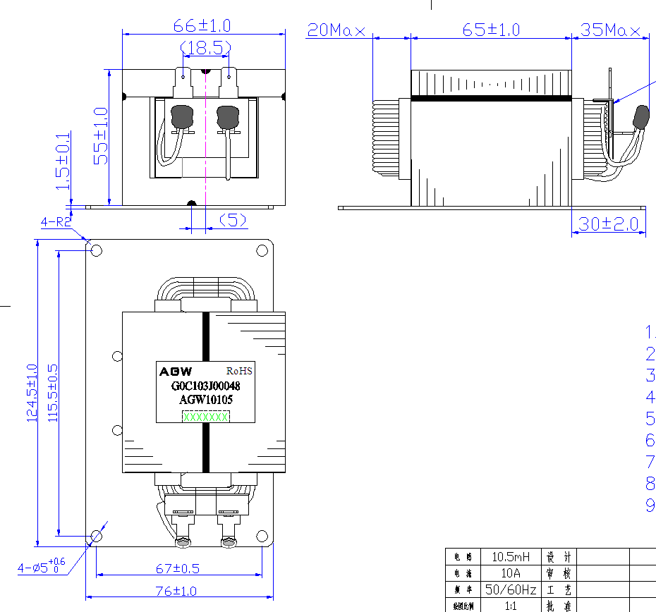 New single-phase reactor 10mH10A filter inductive load smoothing AC reactor R1010