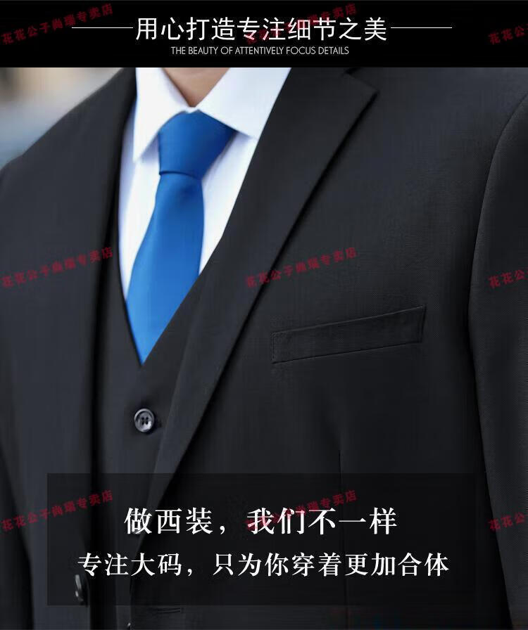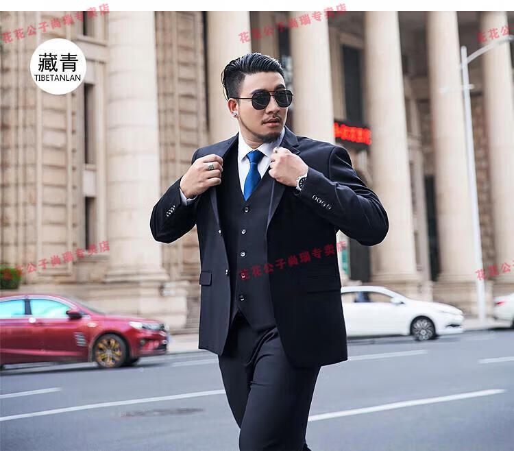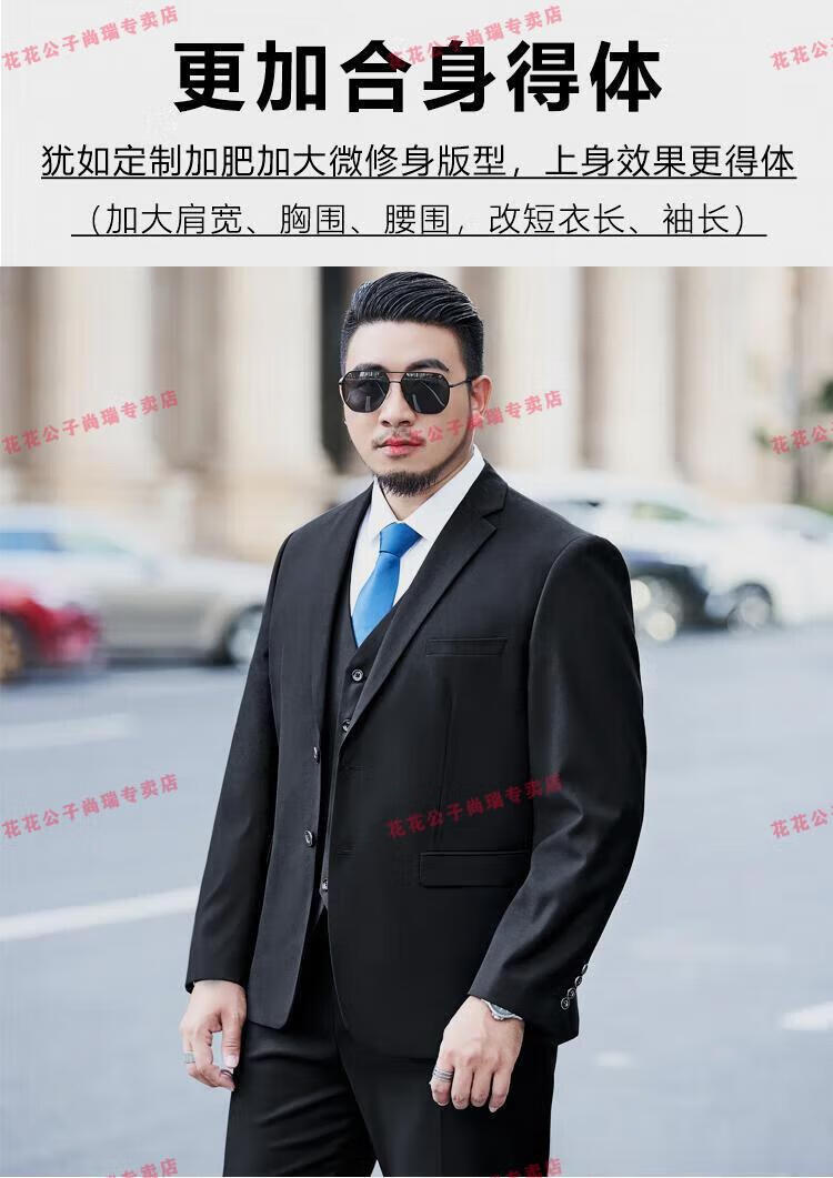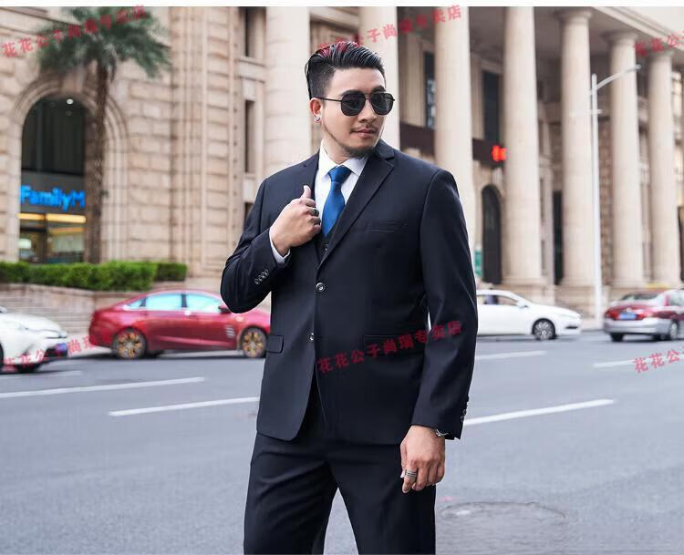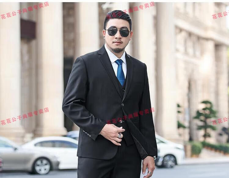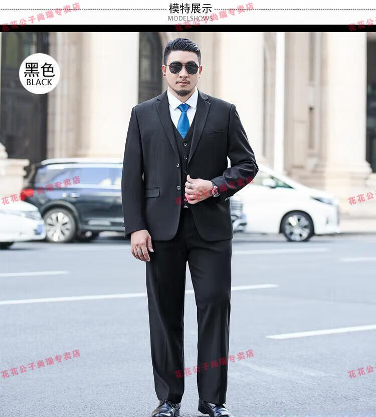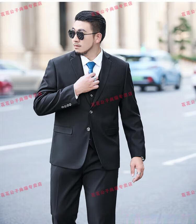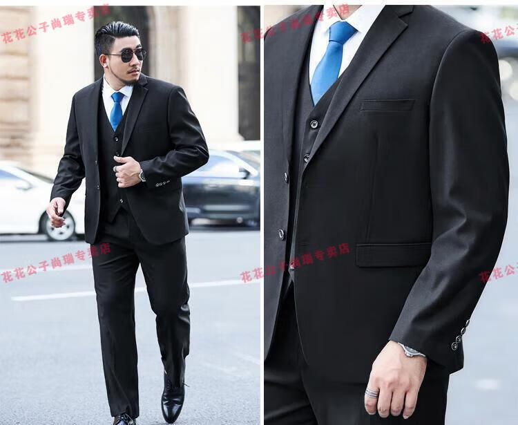 Playboy Plus Size Suit Men's Suit Plus Fat Plus Slim Fit Suit Jacket Business Formal Wear Professional Wedding Dress Black Jacket + Pants + Vest + Shirt 7XL 210/(245-260Jin Jin is equal to 0.5 kg)