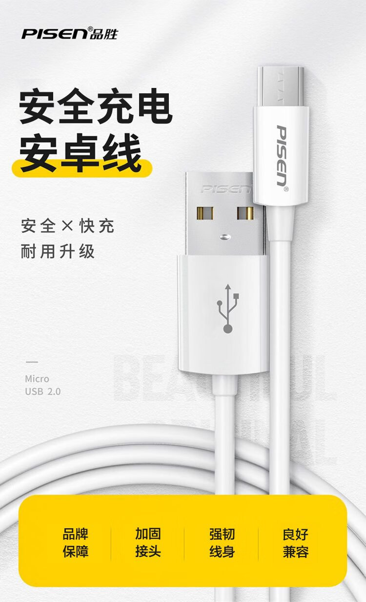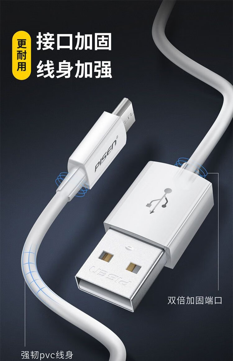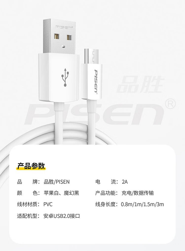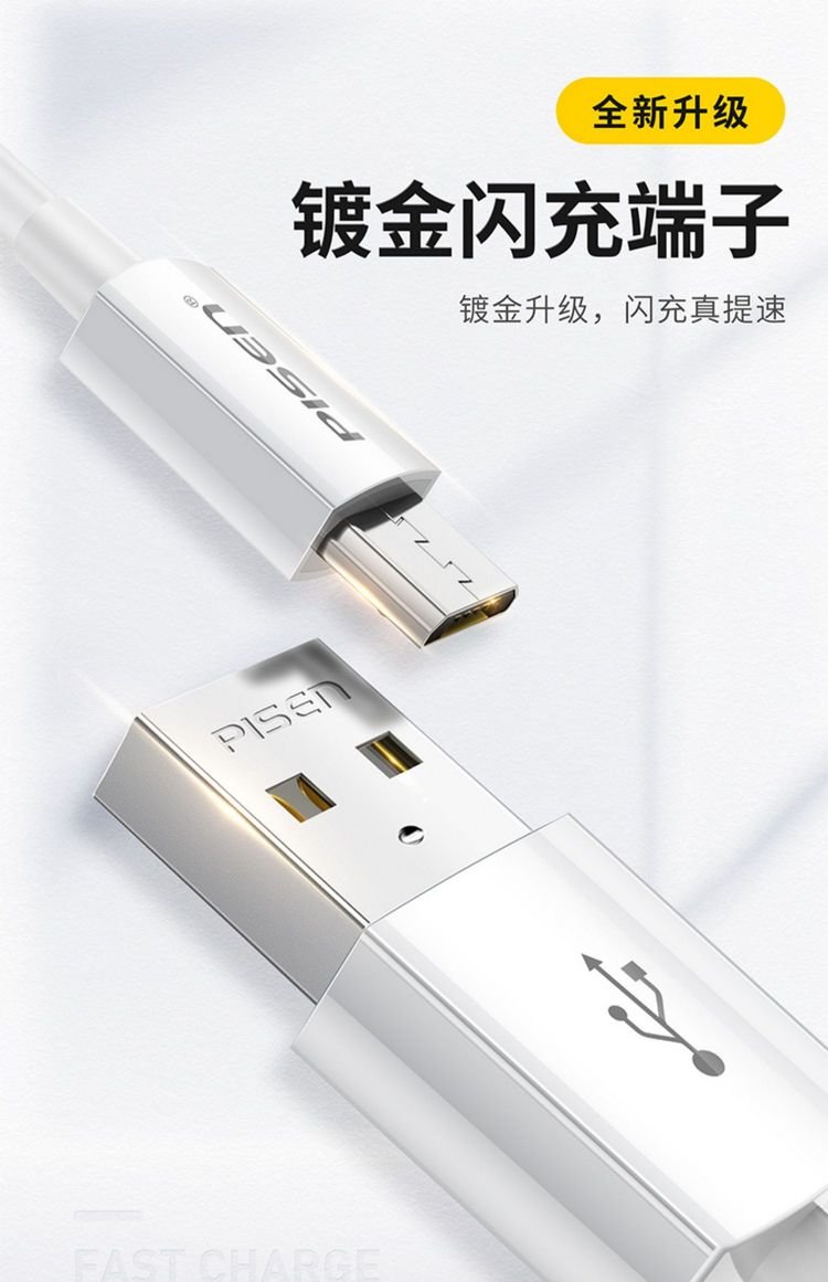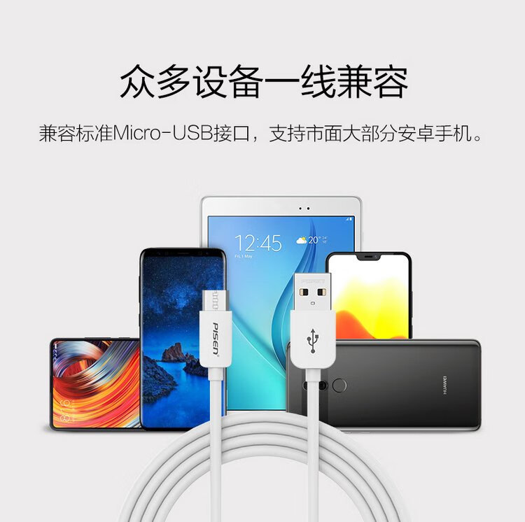 PISEN Android data cable 1 meter Micro USB mobile phone charging cable suitable for Huawei/Xiaomi/vivo//oppo/Honor/Redmi white interface extended version