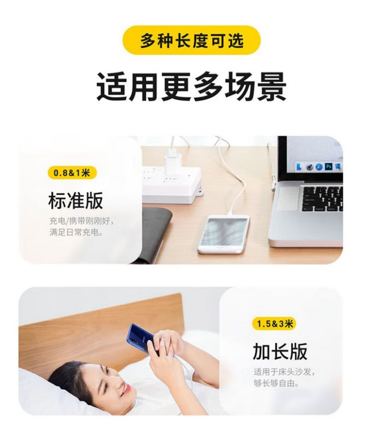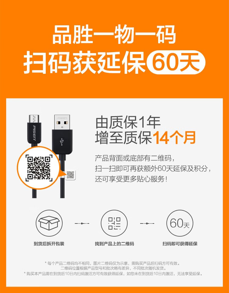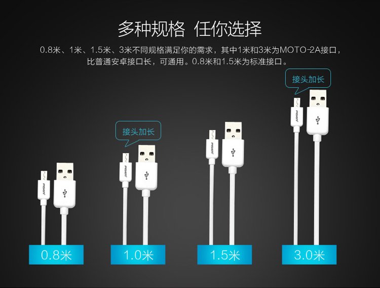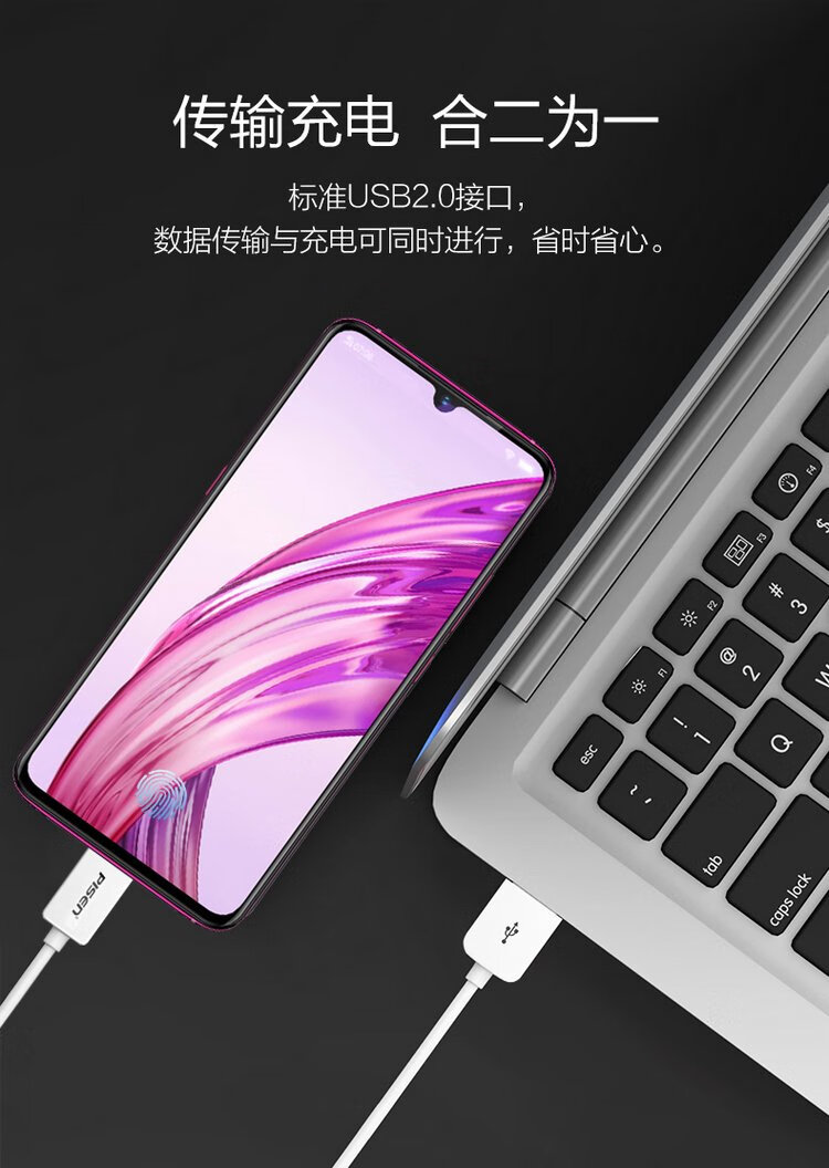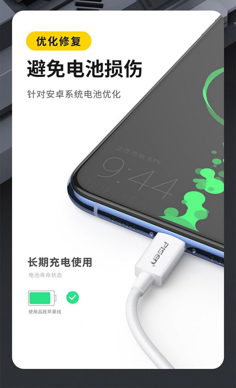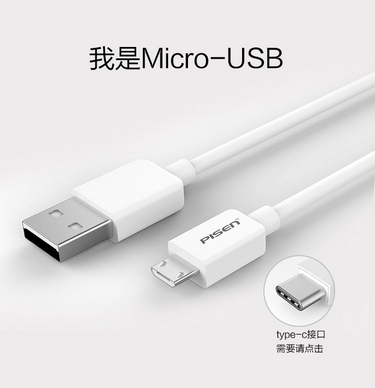 PISEN Android data cable 1 meter Micro USB mobile phone charging cable suitable for Huawei/Xiaomi/vivo//oppo/Honor/Redmi white interface extended version