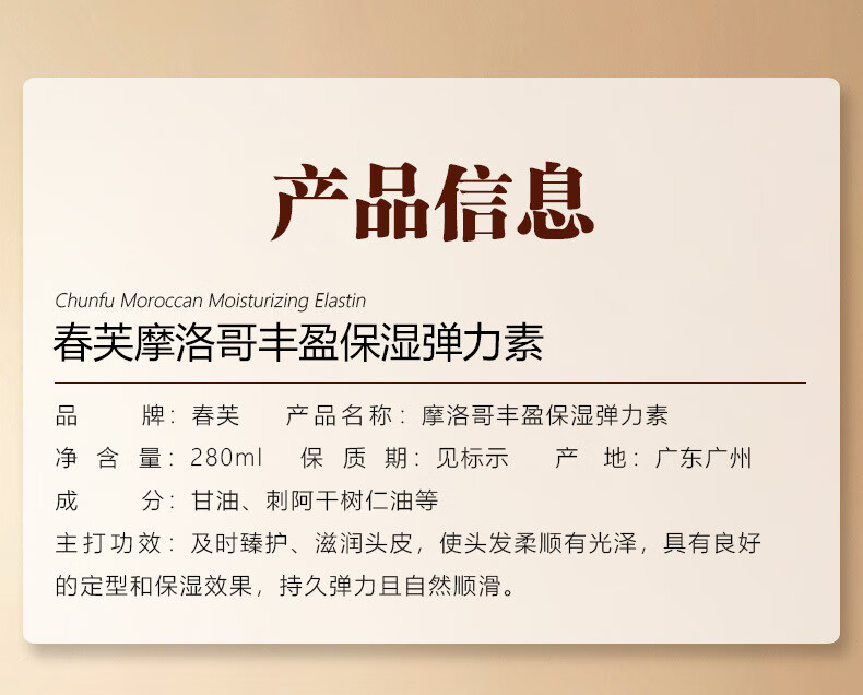 CHUNFU Moroccan plump and moisturizing elastin for straight hair, curly hair and perm to protect curly hair and prevent frizz Moroccan elastin 280ml