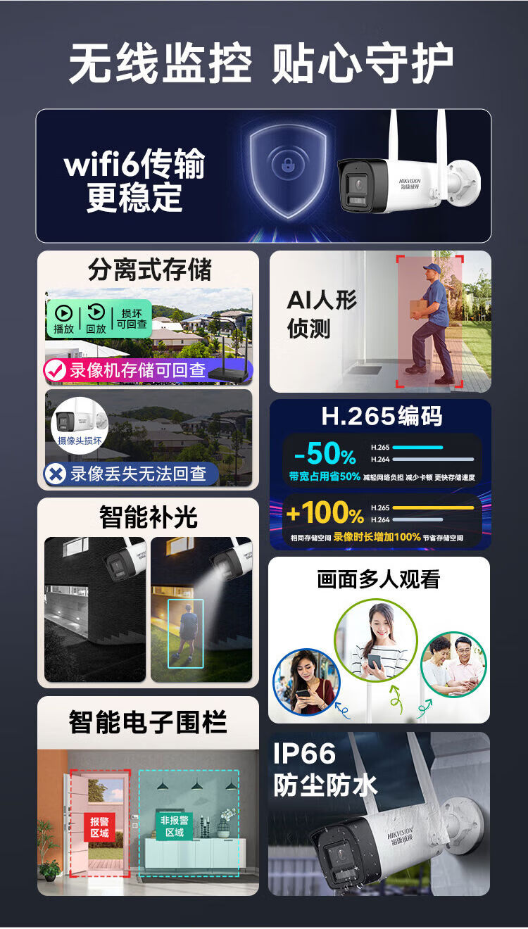 Hikvision (HIKVISION) Hikvision surveillance camera wireless wifi indoor and outdoor monitor complete equipment set HD waterproof customized solution no memory 4MP