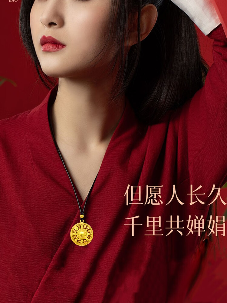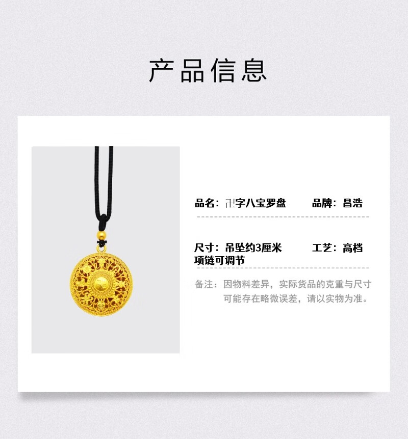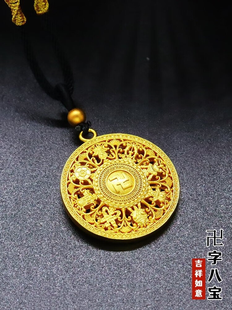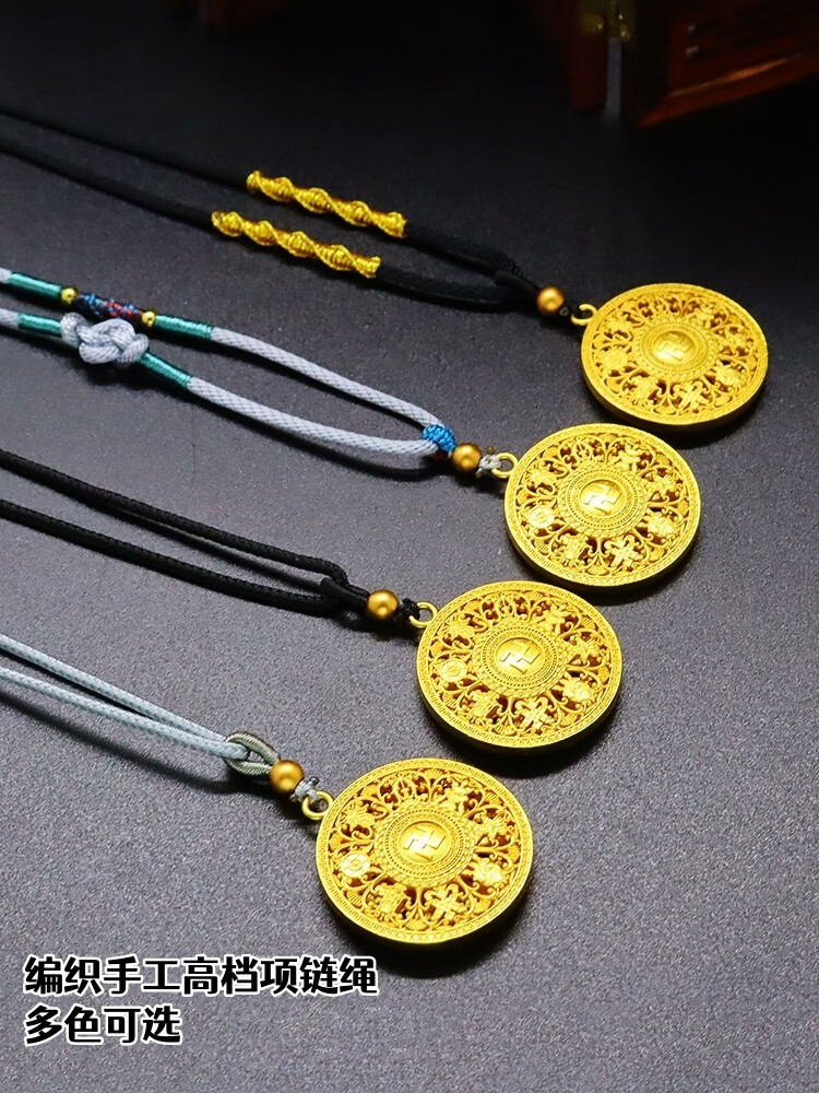 Vietnamese sand gold eight treasures compass pendant for men and women, simulated gold necklace, braided rope, long sweater chain, national style, five blessings, perfect knot, brown rope