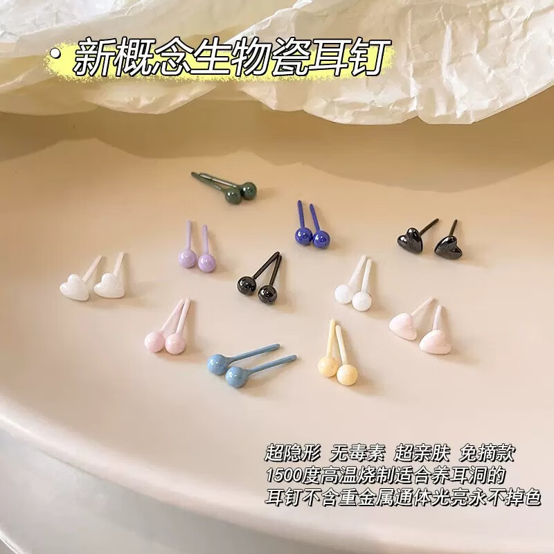 Bioceramic ear piercing women's earrings, hypoallergenic ear sticks, no need to take off ceramic earrings for sleeping, six pairs, free PE gift box, round earrings - full body ceramic