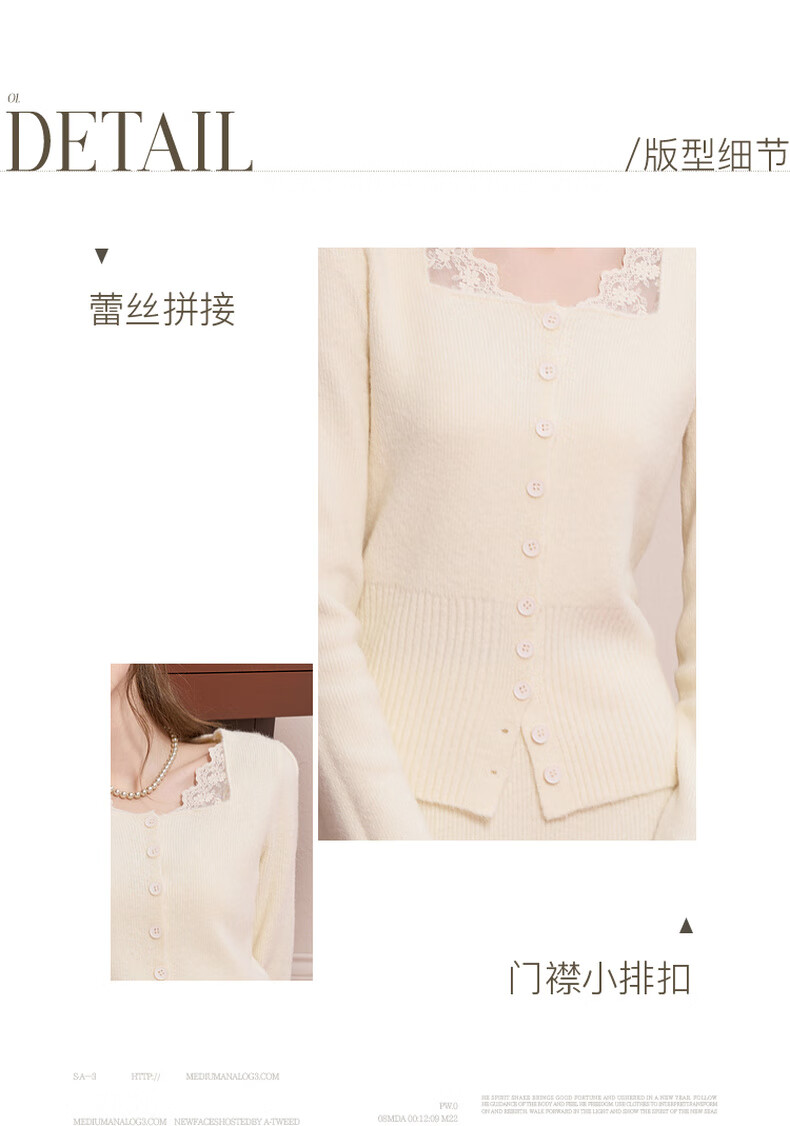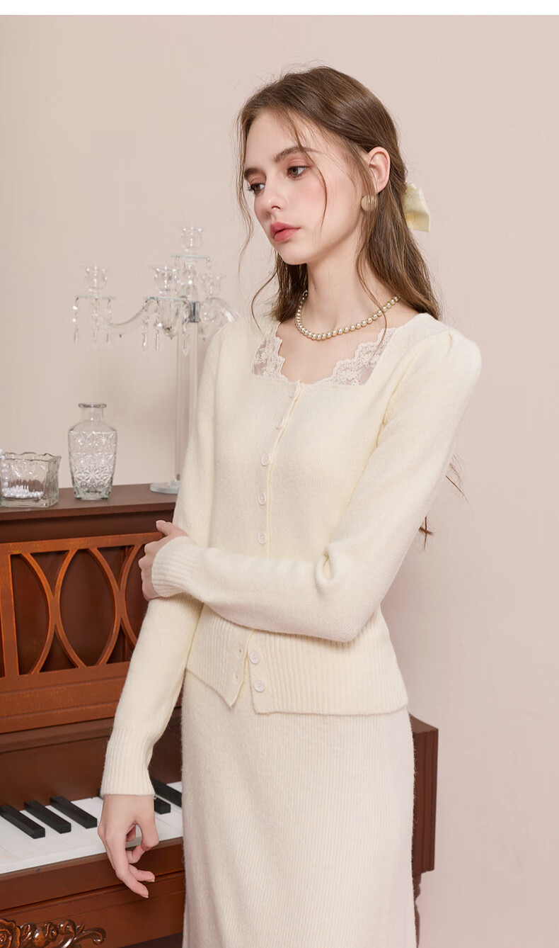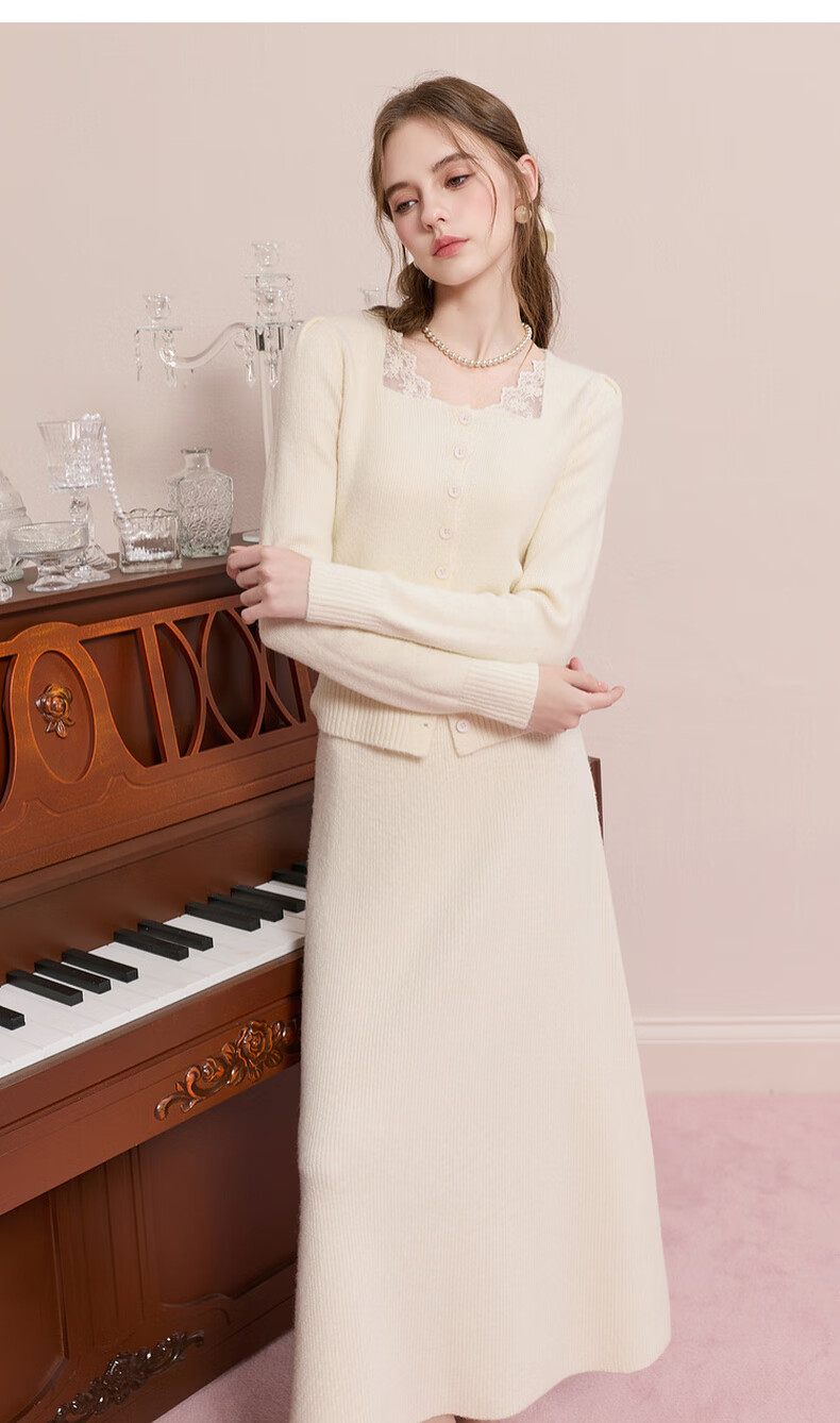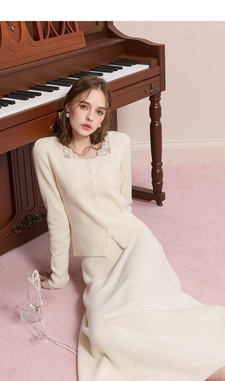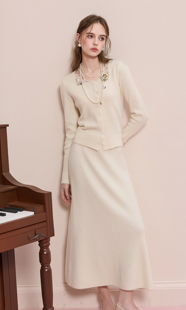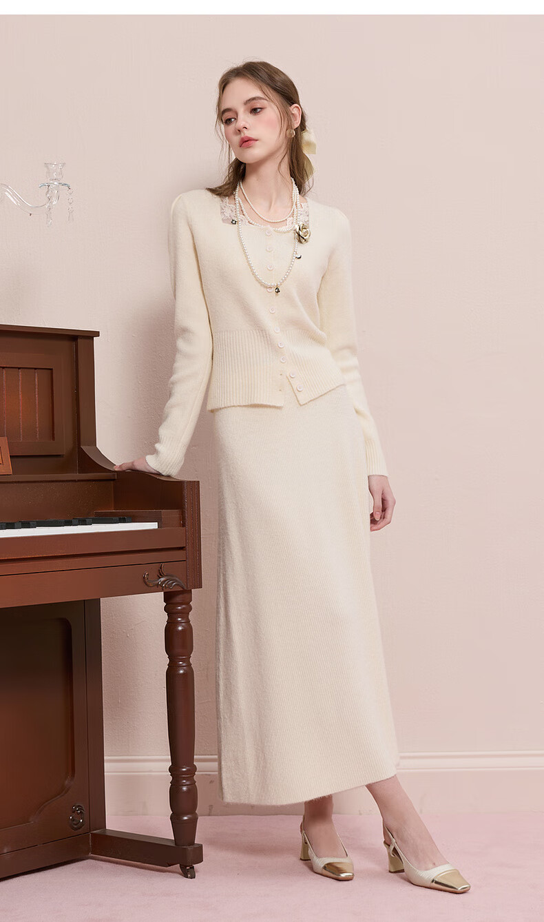 Sancai 2025 new winter knitted suit spliced sweater top skirt two-piece set M milk white L 165/88A