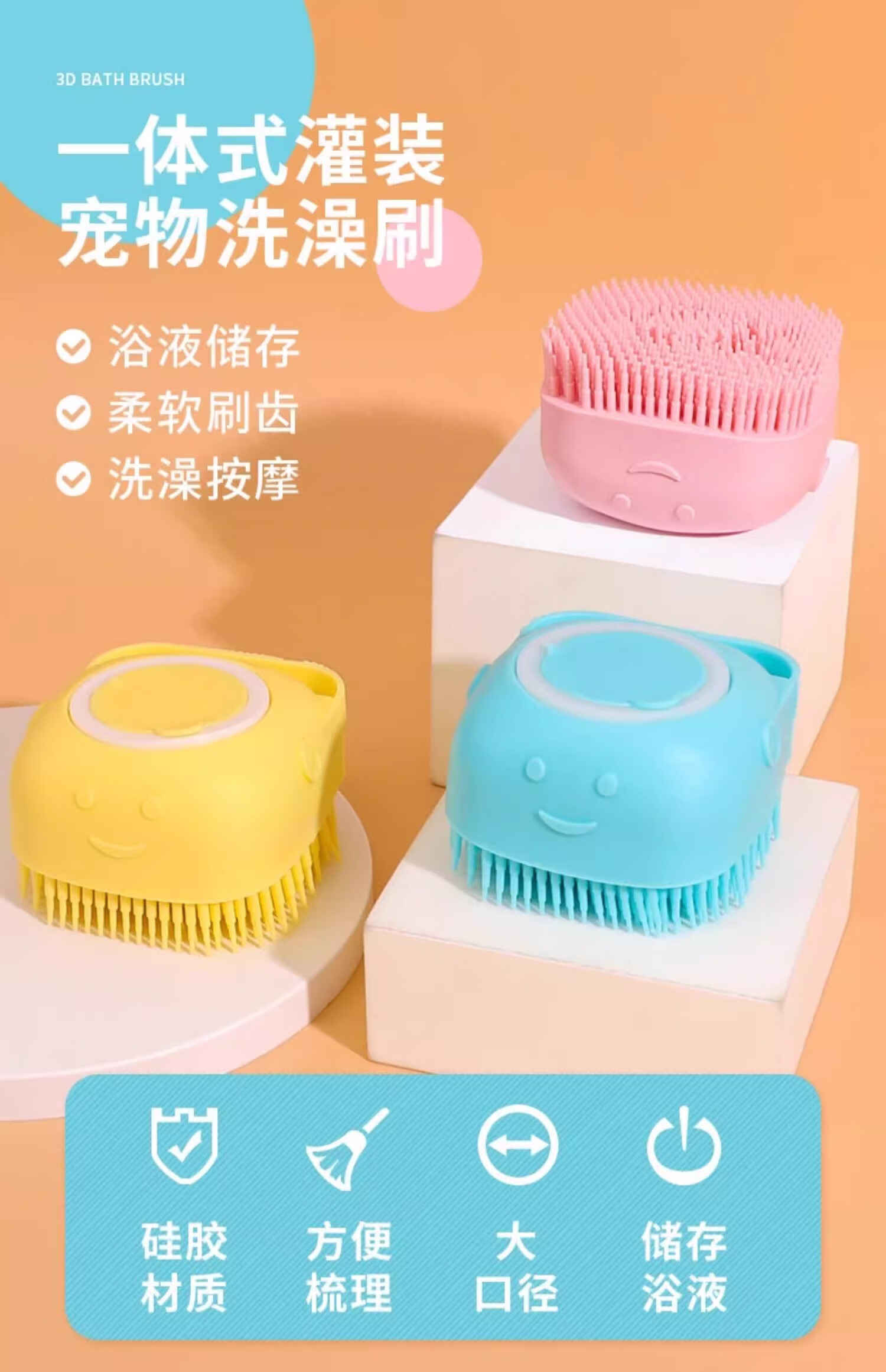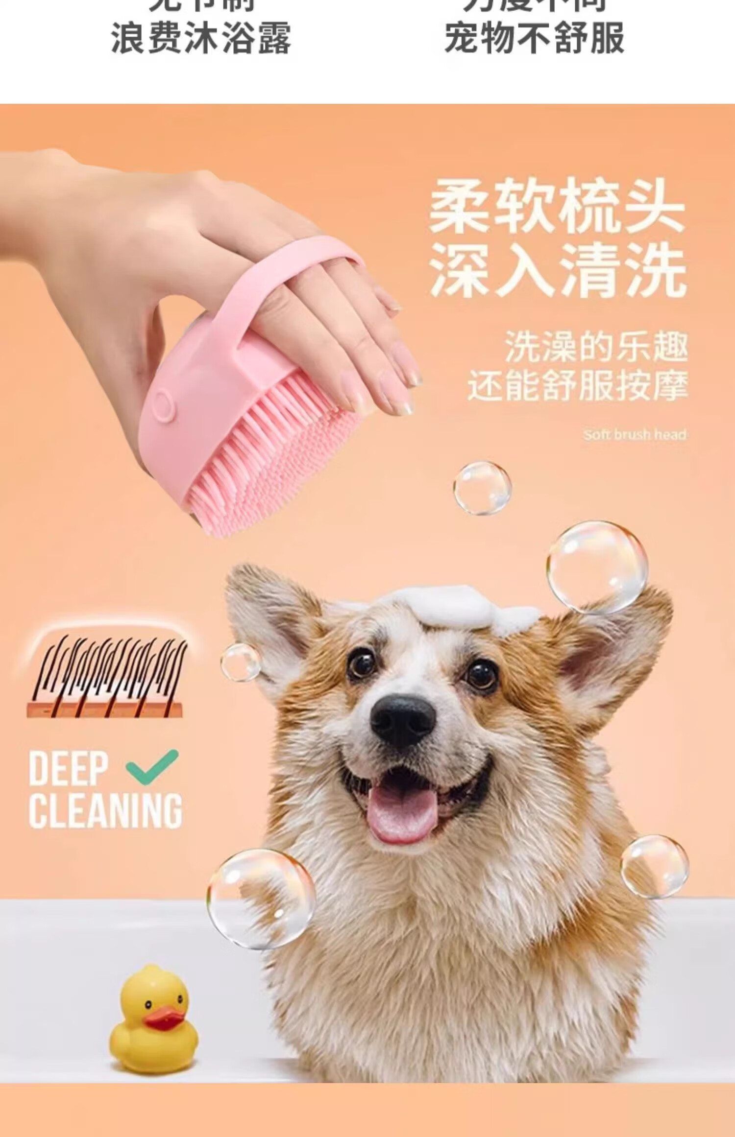 Pet bath artifact, dog bath brush, pet cat bath, silicone bath massage brush, puppy bath, pet comb - pink bath style - 1 piece