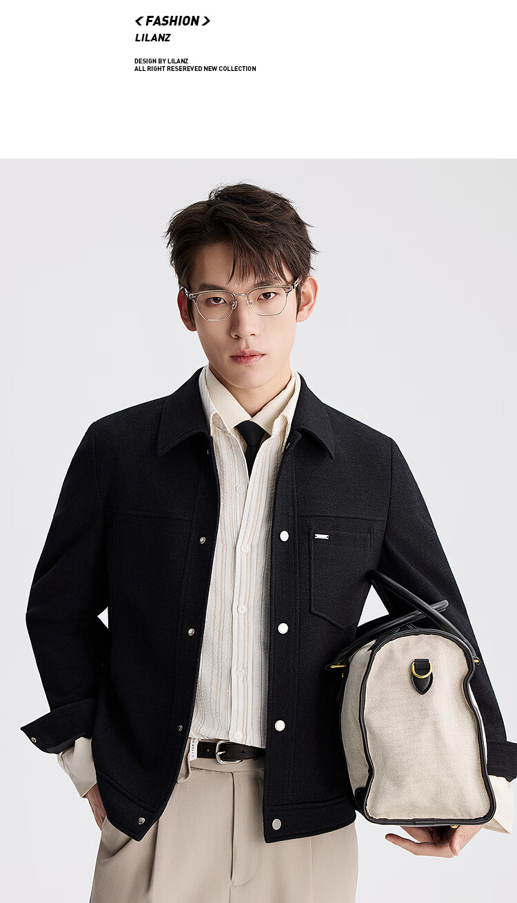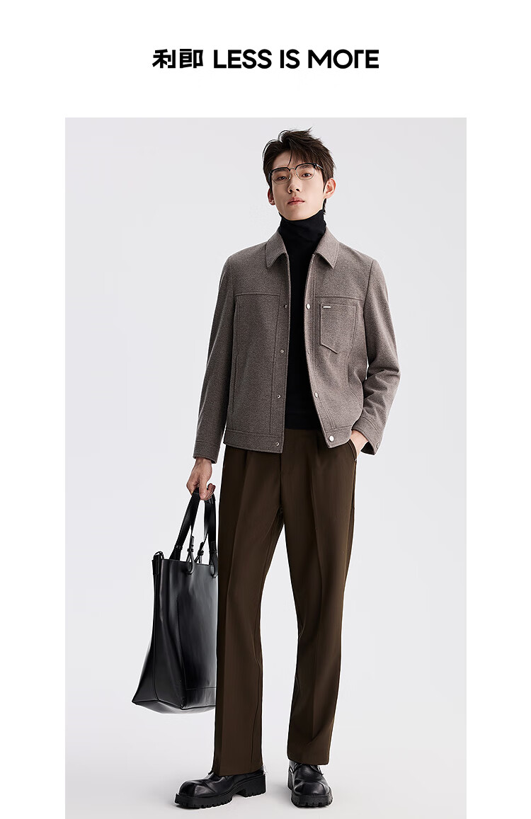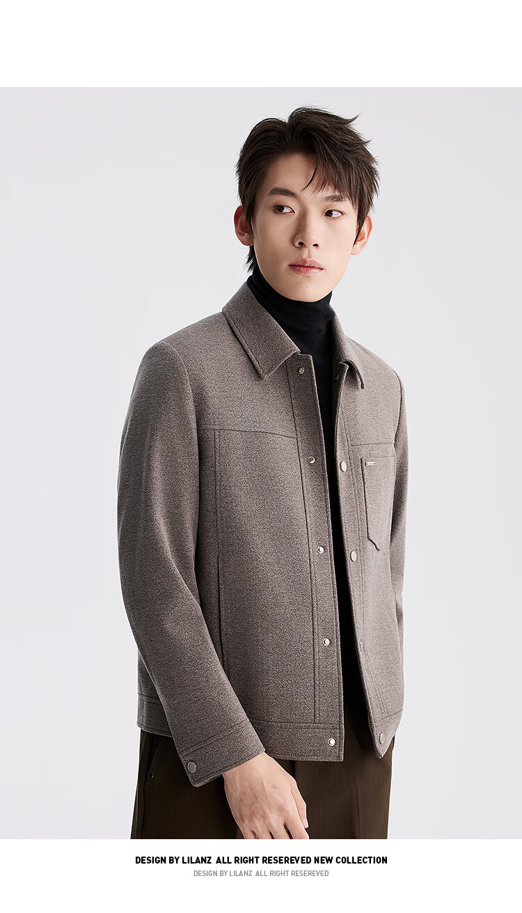 Lilang Light Fashion Men's Clothing, Down-filled Woolen Coat, Men's Lapel, Youth Commuting Warm Down Wool Jacket, Warm Brown Coffee (3Y) XL (175)