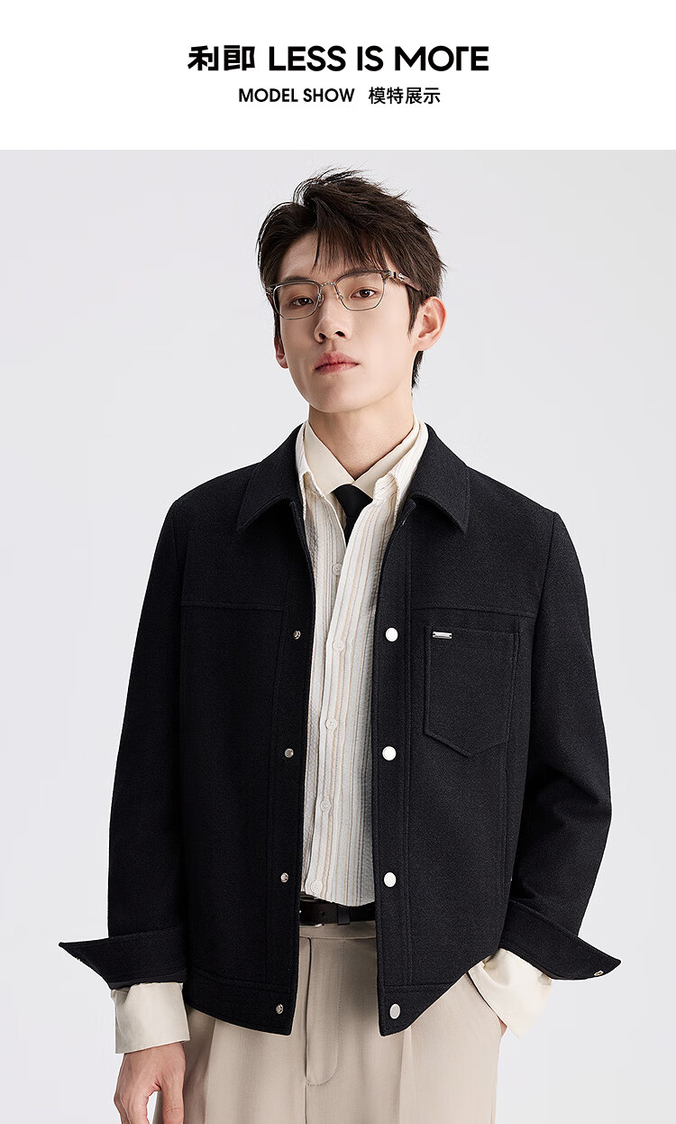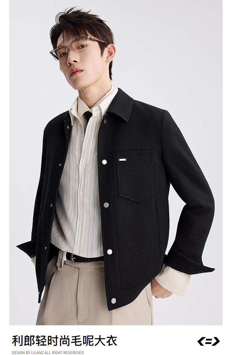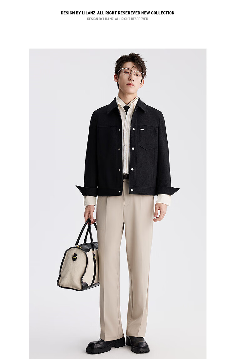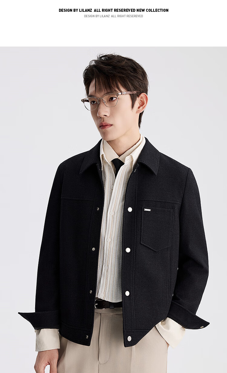 Lilang Light Fashion Men's Clothing, Down-filled Woolen Coat, Men's Lapel, Youth Commuting Warm Down Wool Jacket, Warm Brown Coffee (3Y) XL (175)