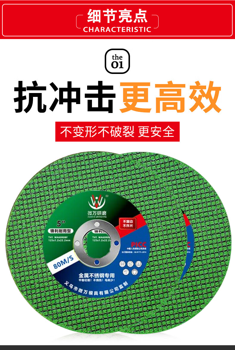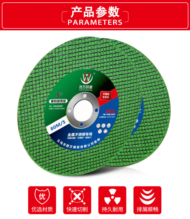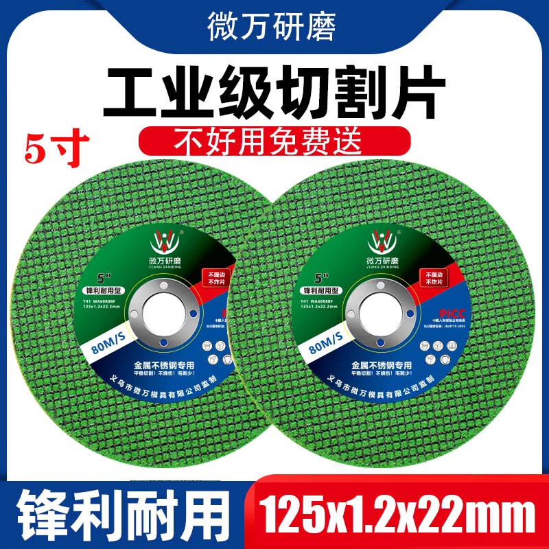 Ultra-thin cutting blade 125 type angle grinder high-speed saw blade metal stainless steel special grinding wheel resin grinding wheel micro-A grade green 125 cutting blade 5 pieces with reducing gasket