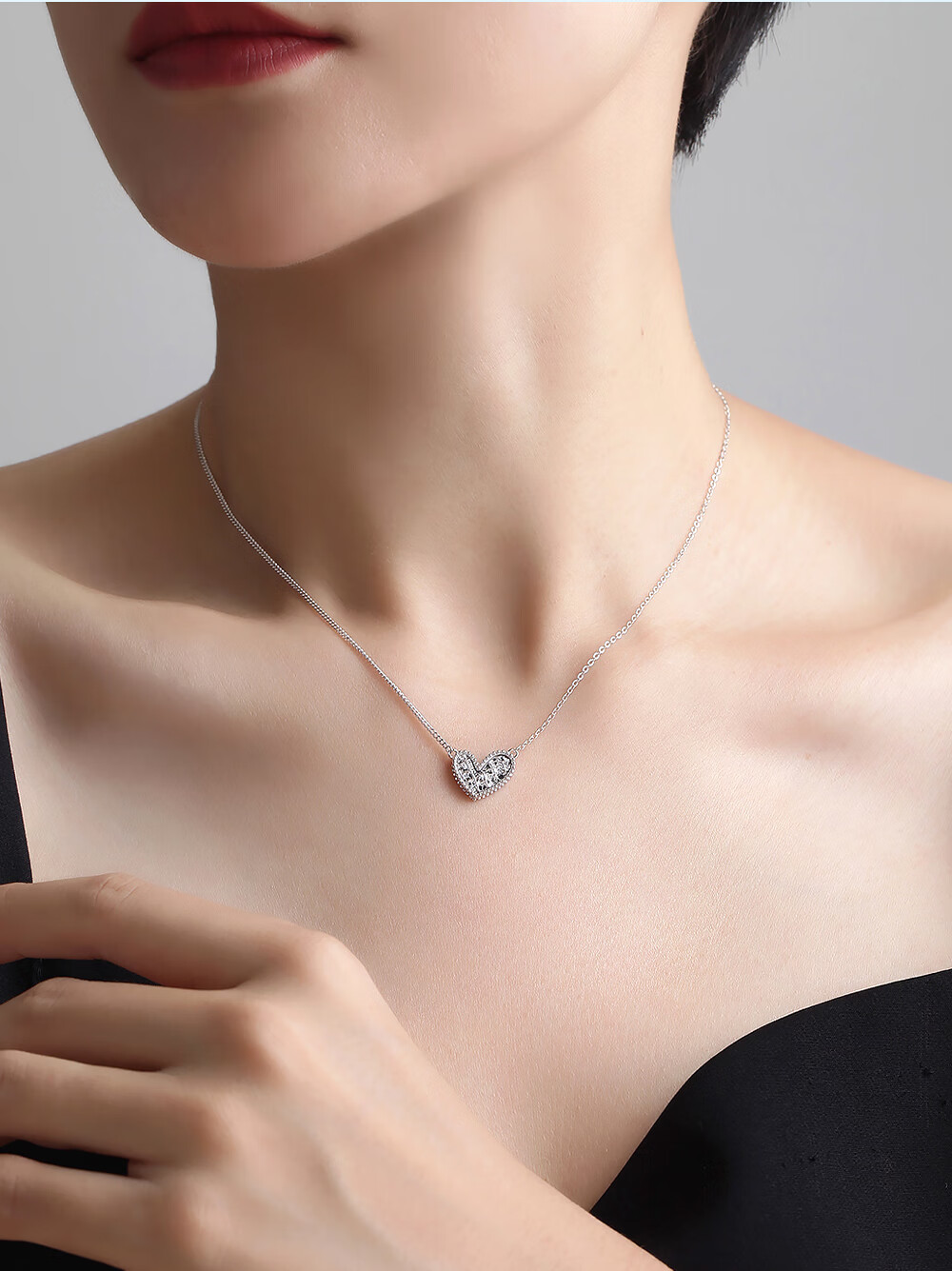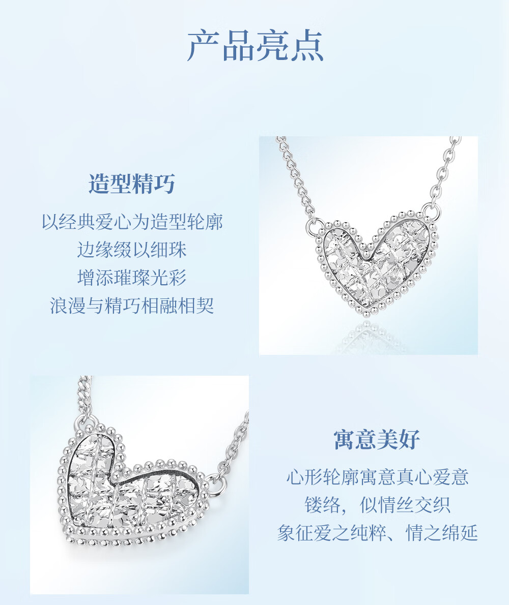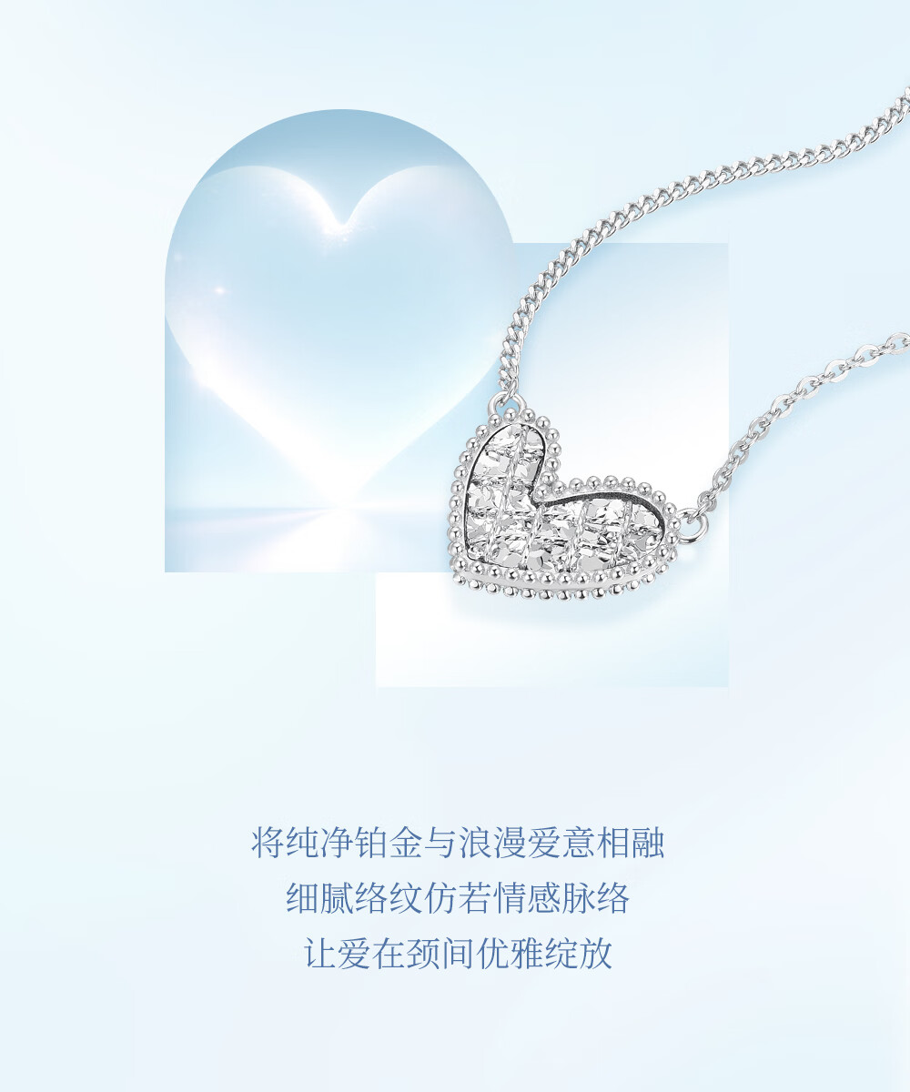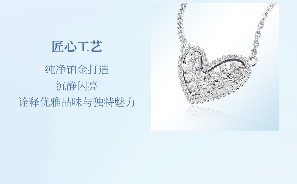 Ming brand jewelry platinum necklace Pt950 white gold heart pattern engraved set chain BFR0169 platinum necklace about 42+3 cm about 4.41 grams