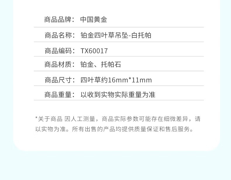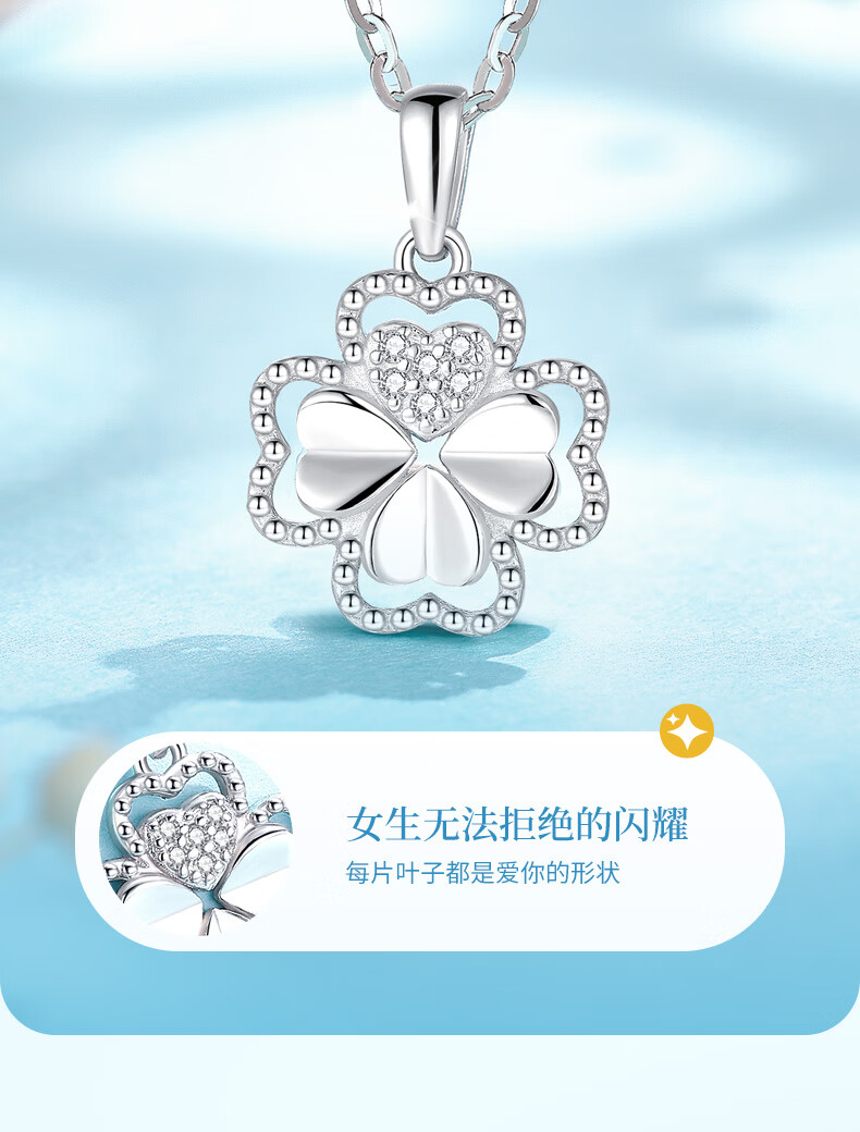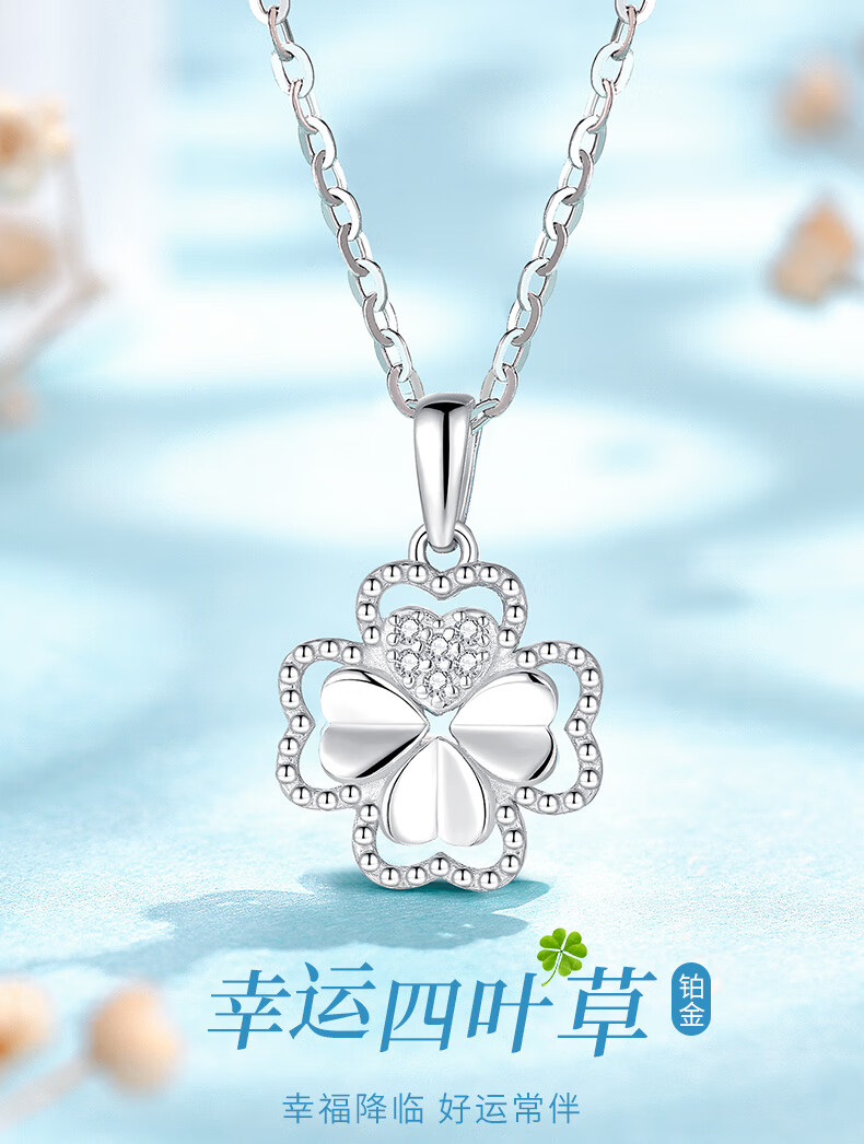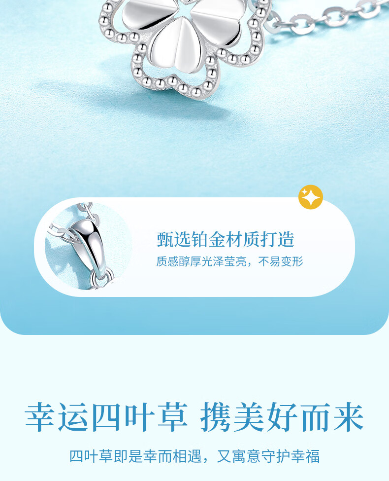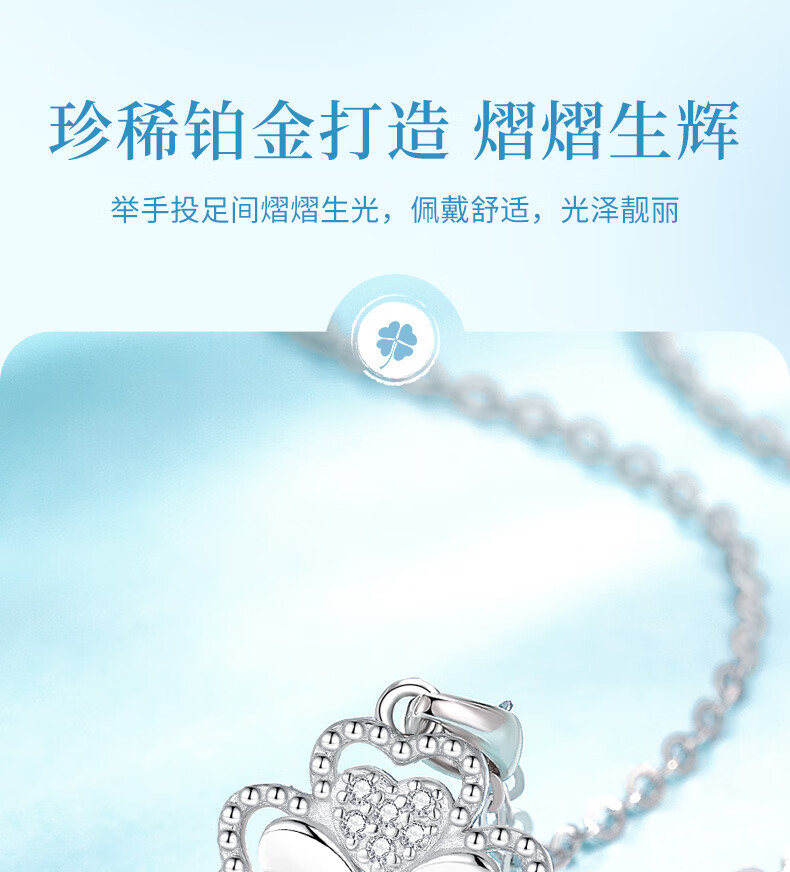 China Gold (CHINA GOLD) platinum necklace women's four-leaf clover light luxury platinum pendant birthday gift for girlfriend and wife wedding anniversary practical lucky four-leaf clover platinum pendant + platinum flash O chain