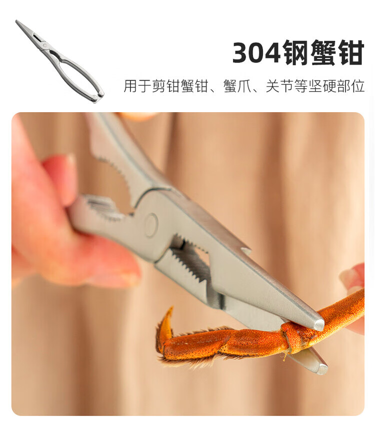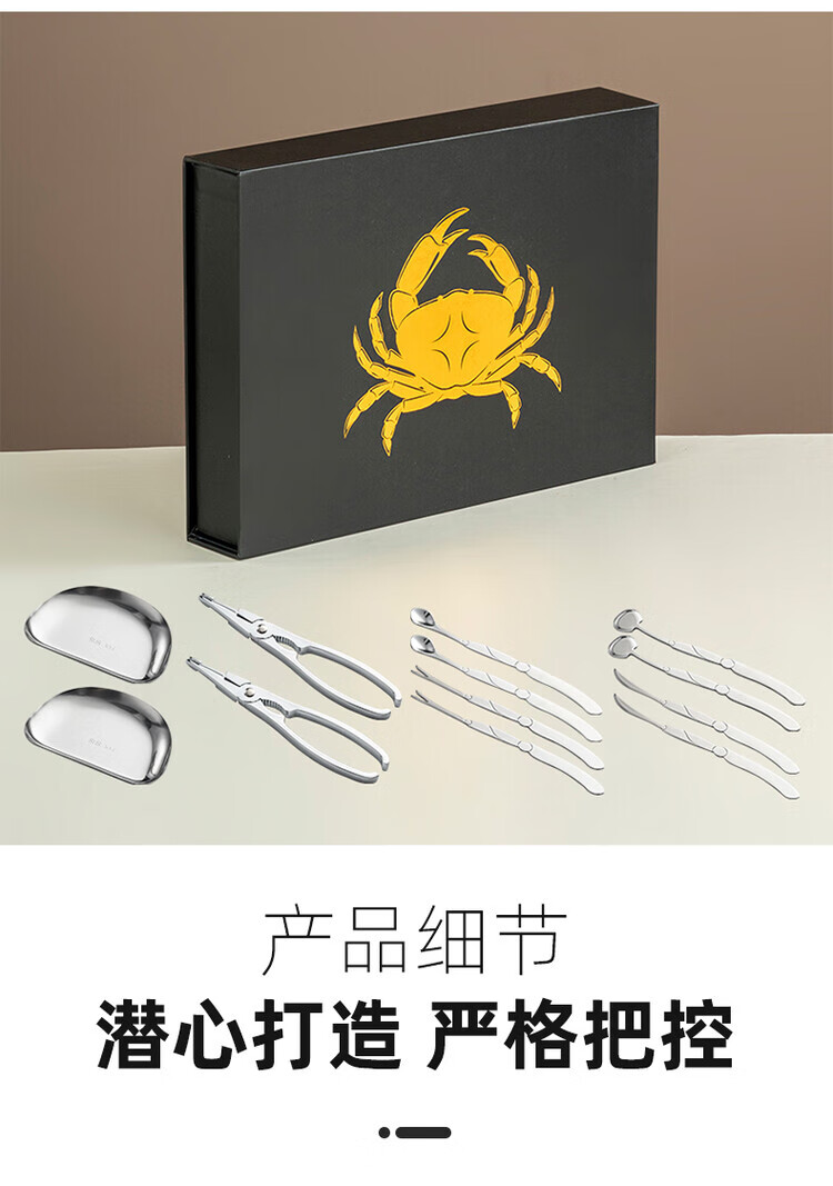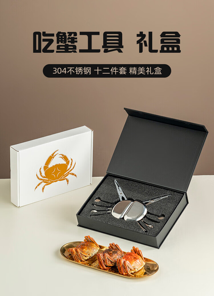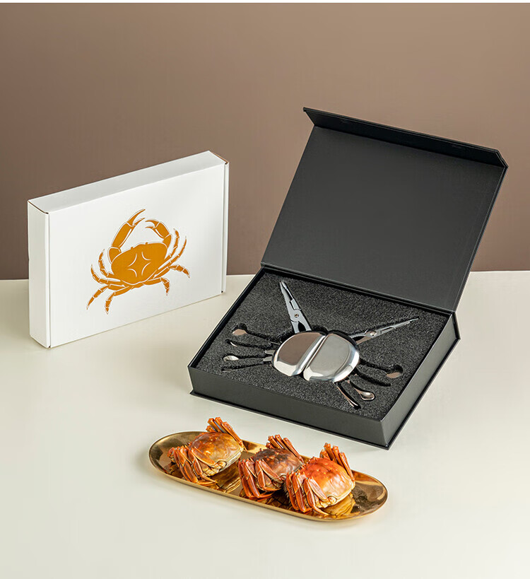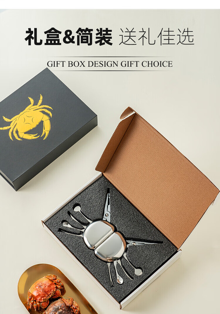 Man Gong high-end quality crab eight-piece 304 stainless steel crab-eating tool set in a gift box, eight-piece crab claws and crab-eating tools 304 steel & 304 steel pliers-gift box